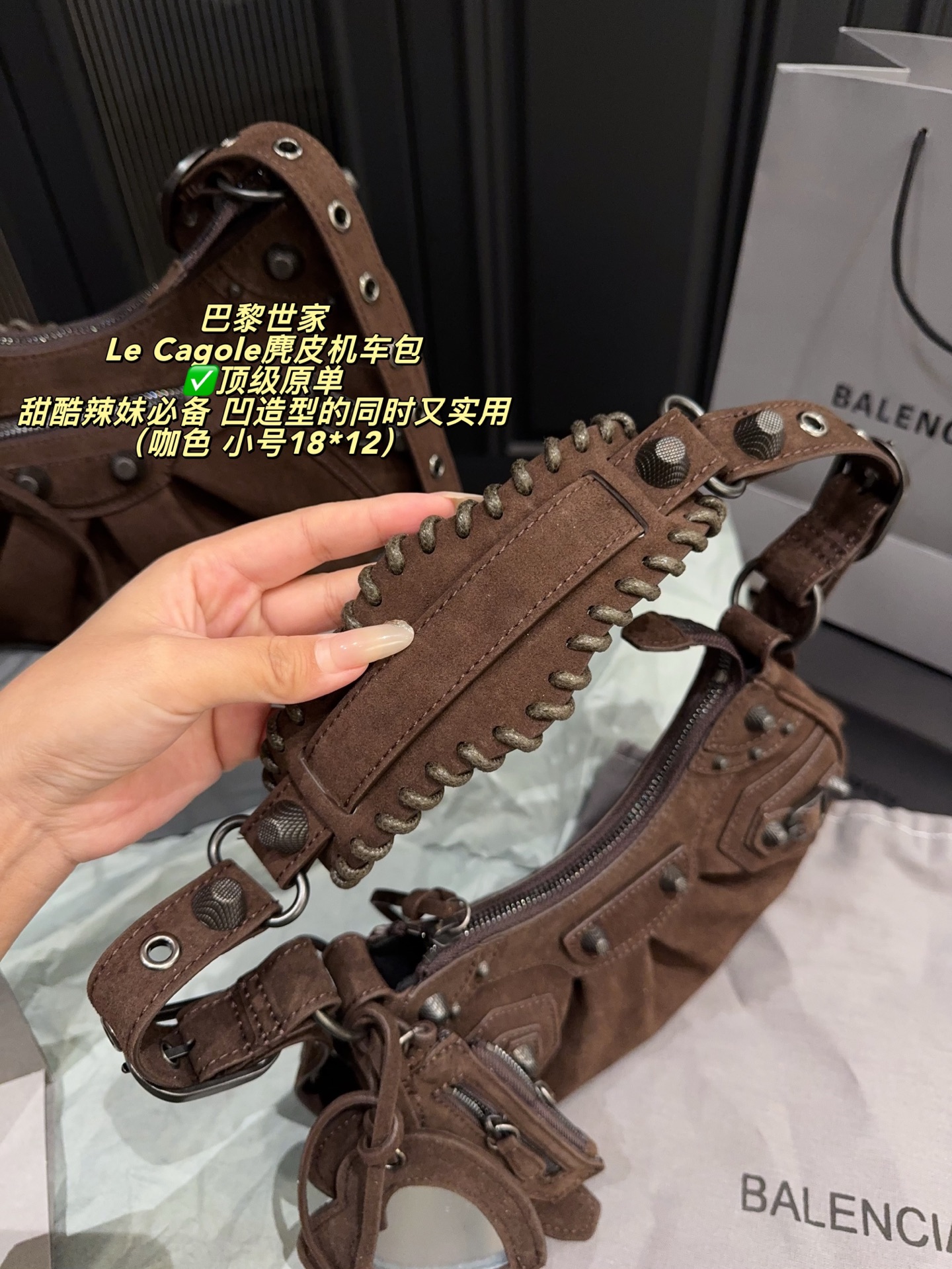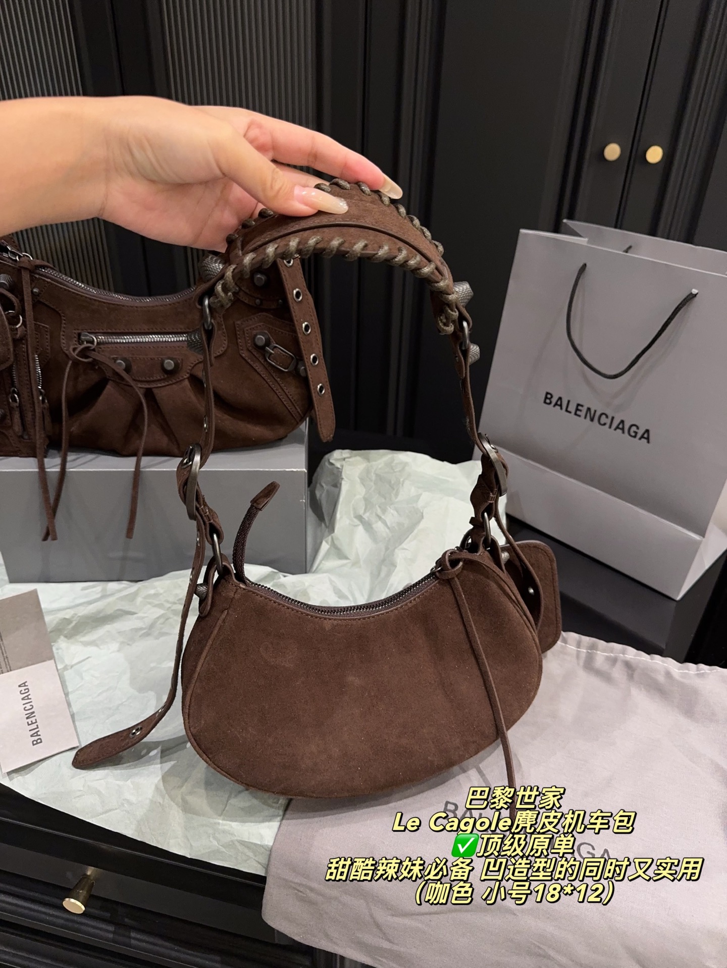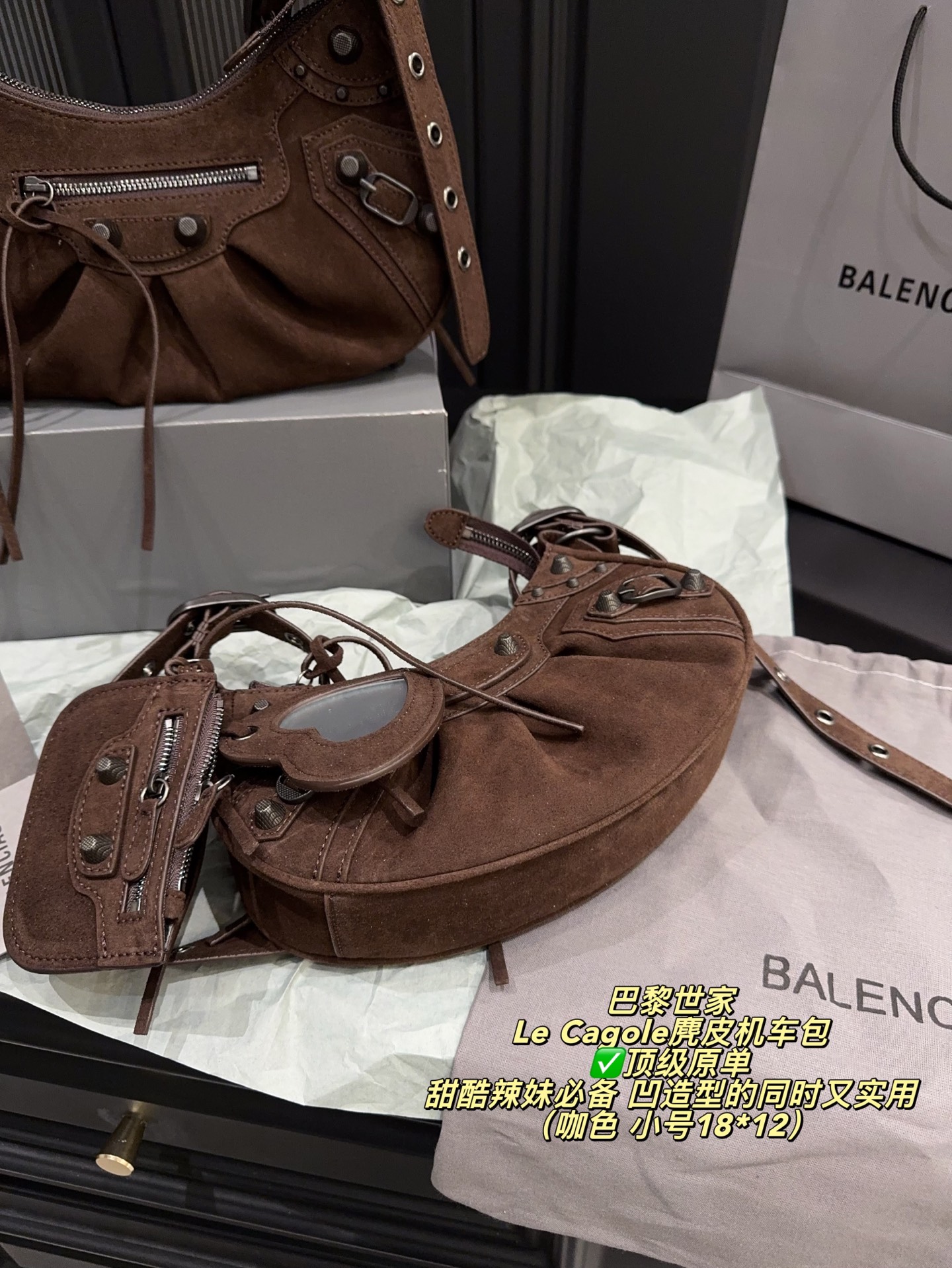 Balenciaga Le Cagole Suede Motorcycle Bag
