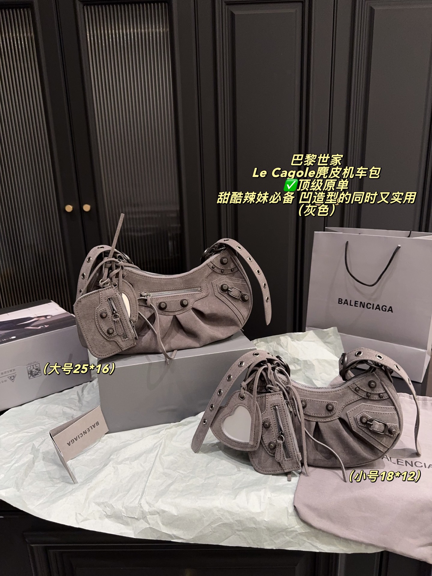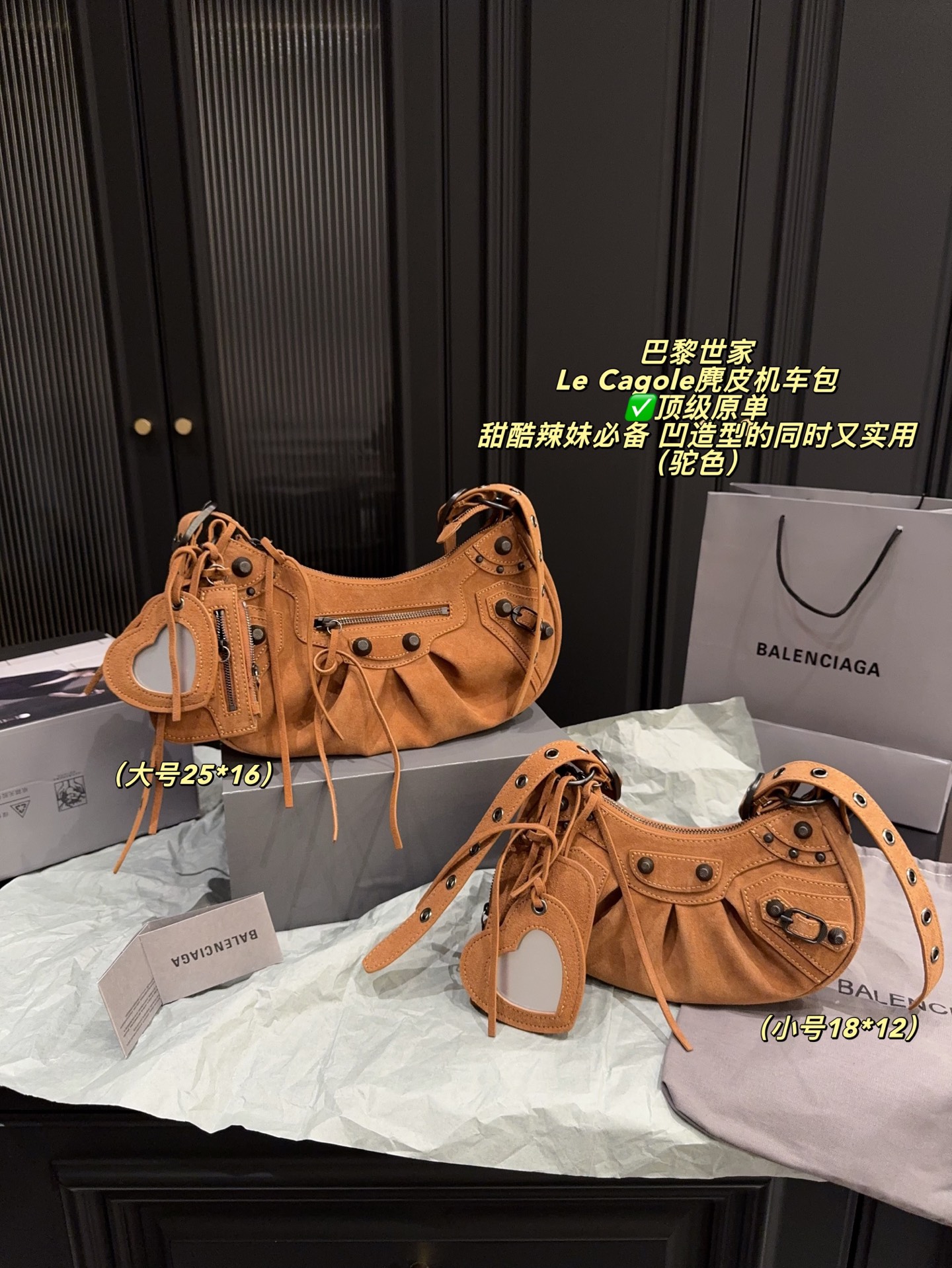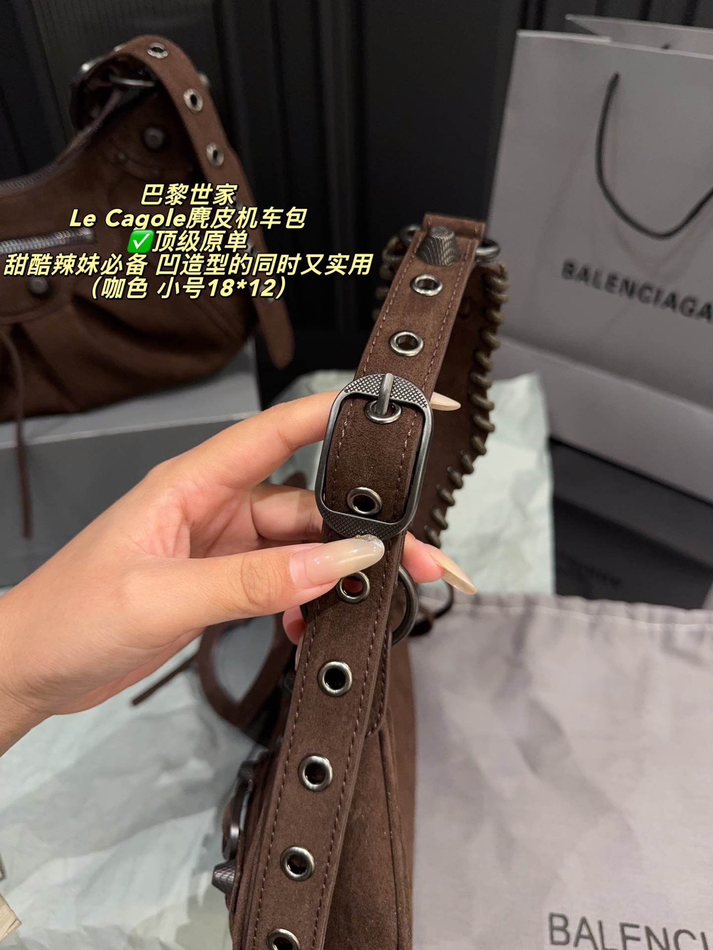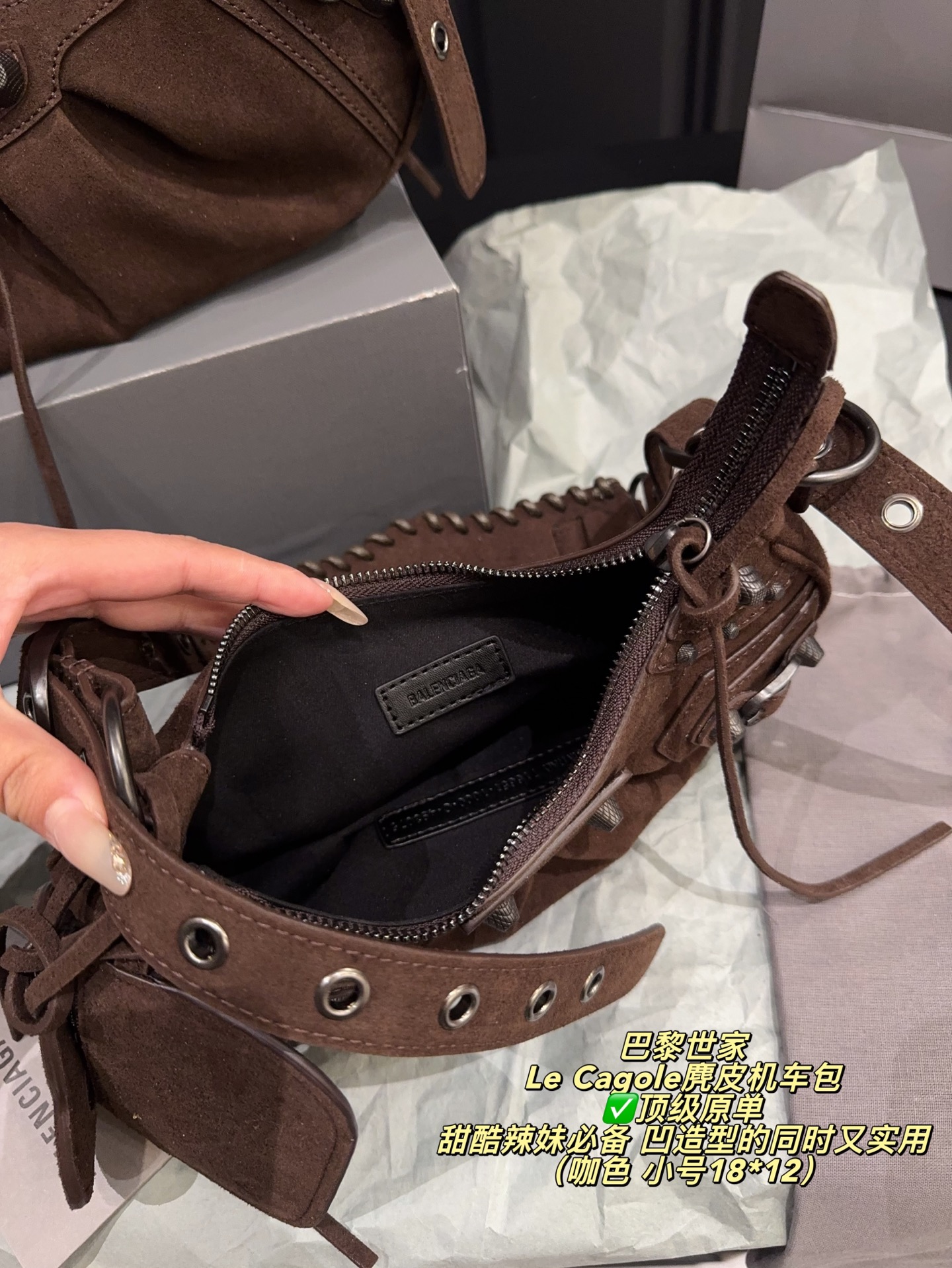 Balenciaga Le Cagole Suede Motorcycle Bag