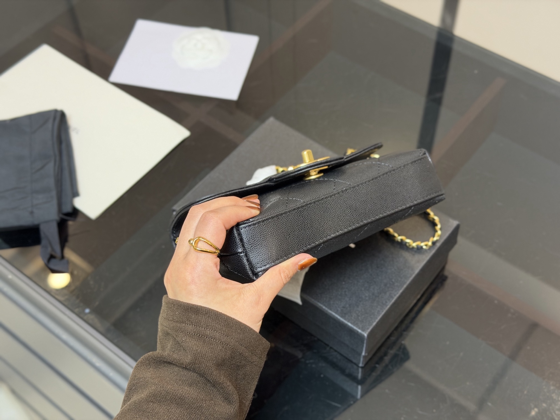 Black with gold hardware is Chanel's most classic color. It exudes a luxurious and elegant feel, creating a sophisticated atmosphere. Vintage, luxurious, and high-end.