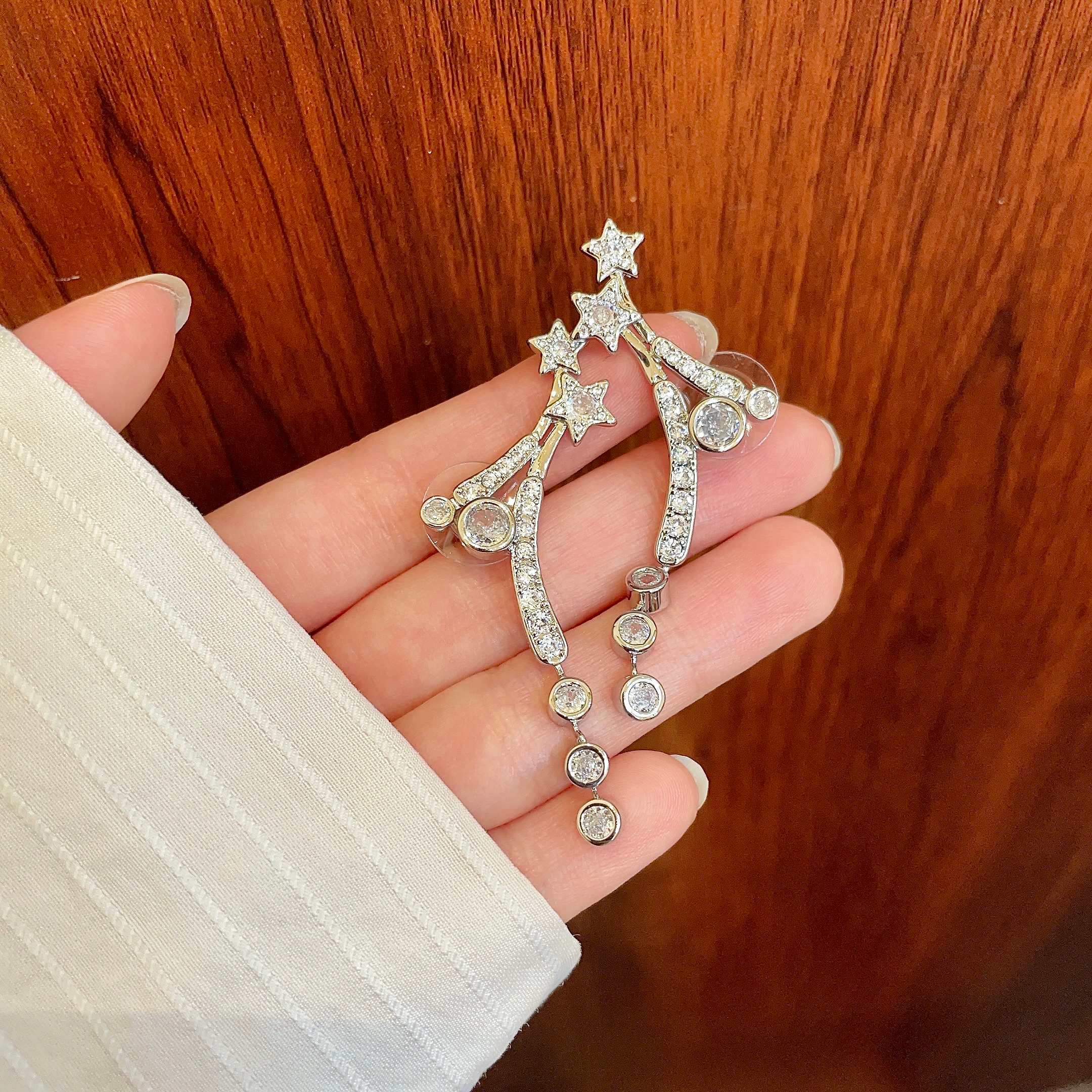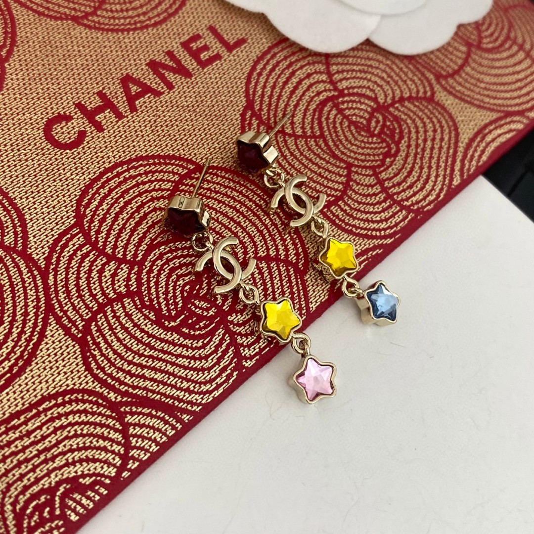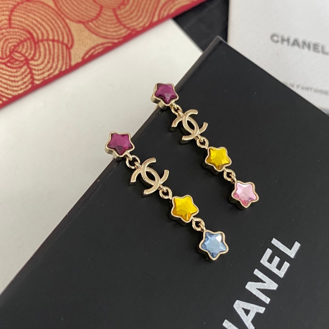 Chanel Colored Diamond Star Double C Tassel Earrings