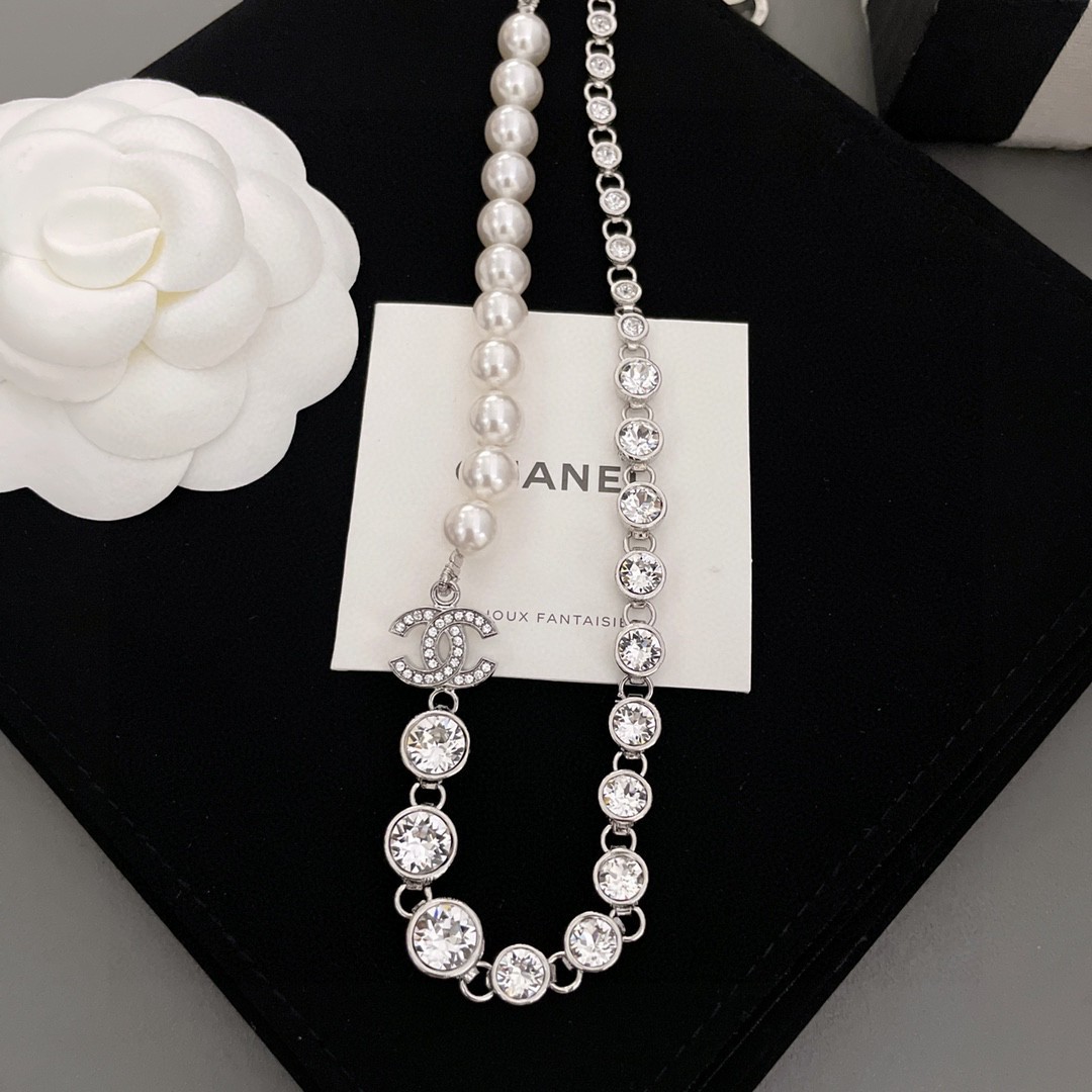 Chanel half diamond half bead choker necklace