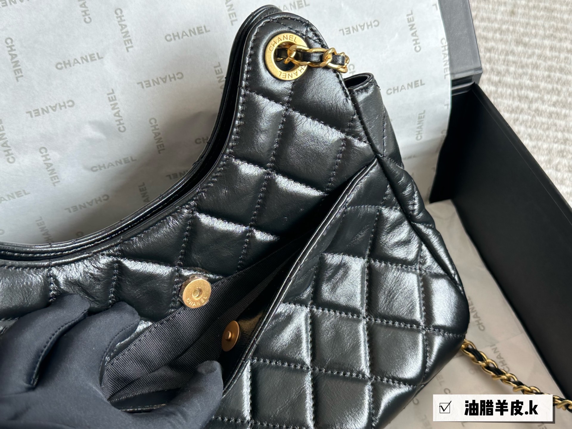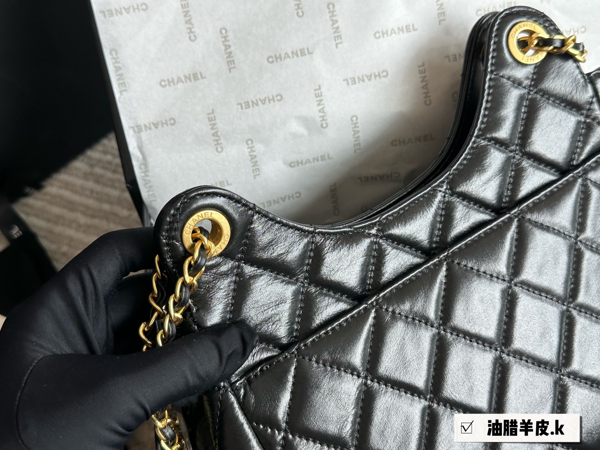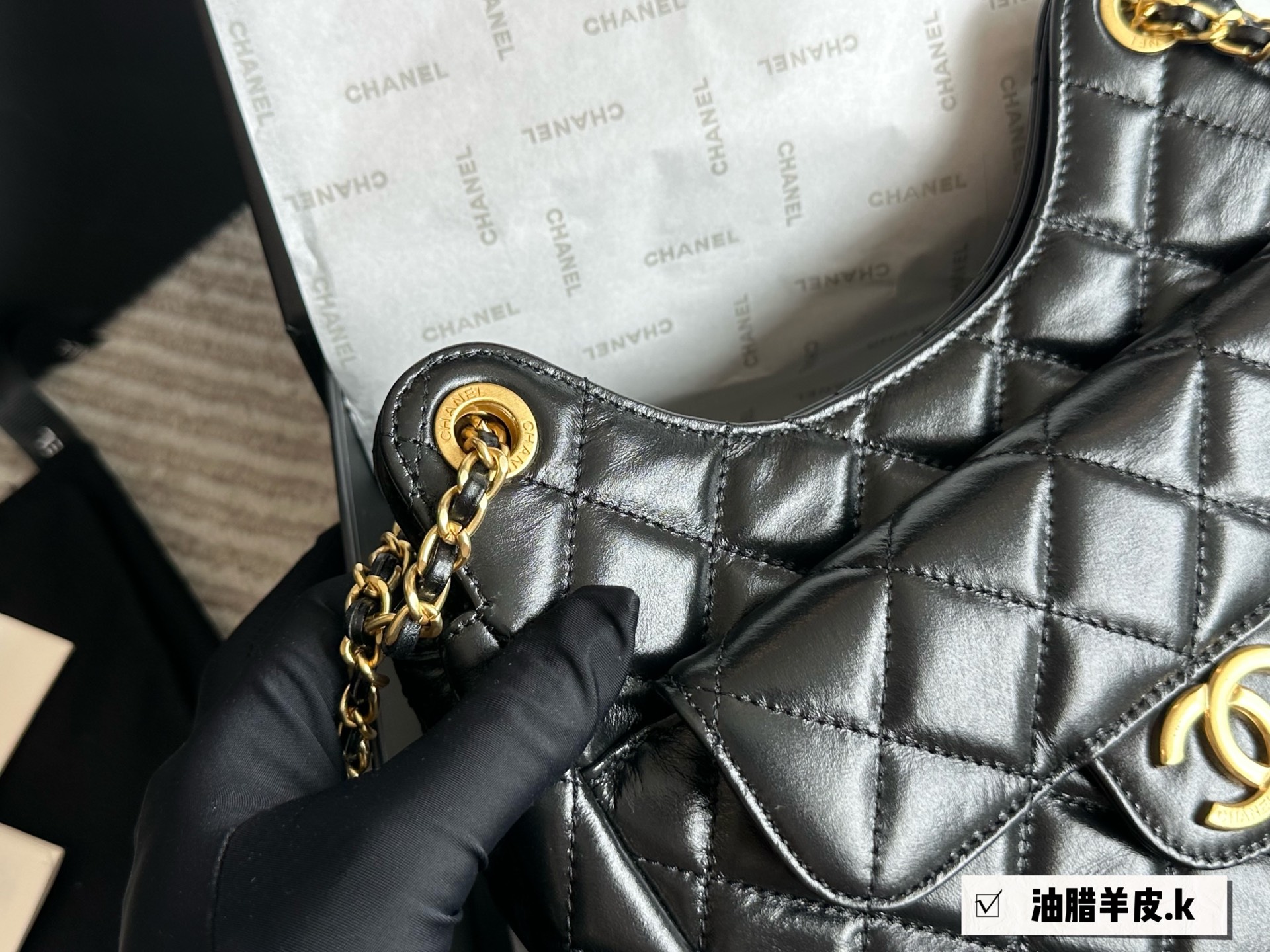 Chanel waxed leather shoulder bag