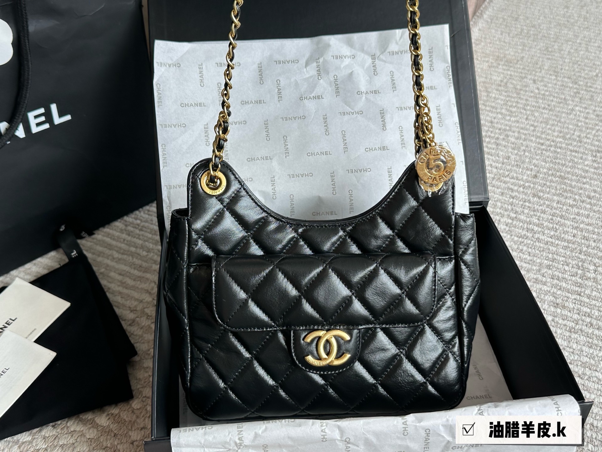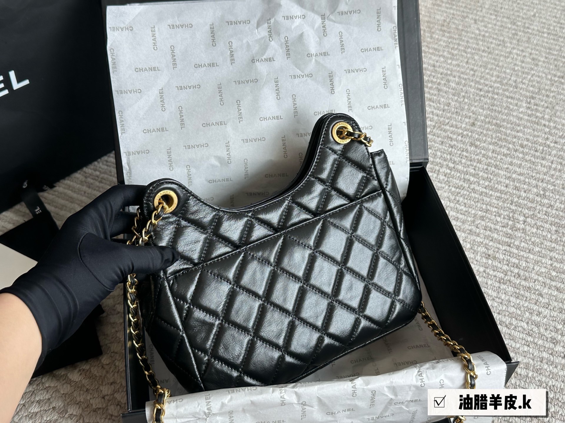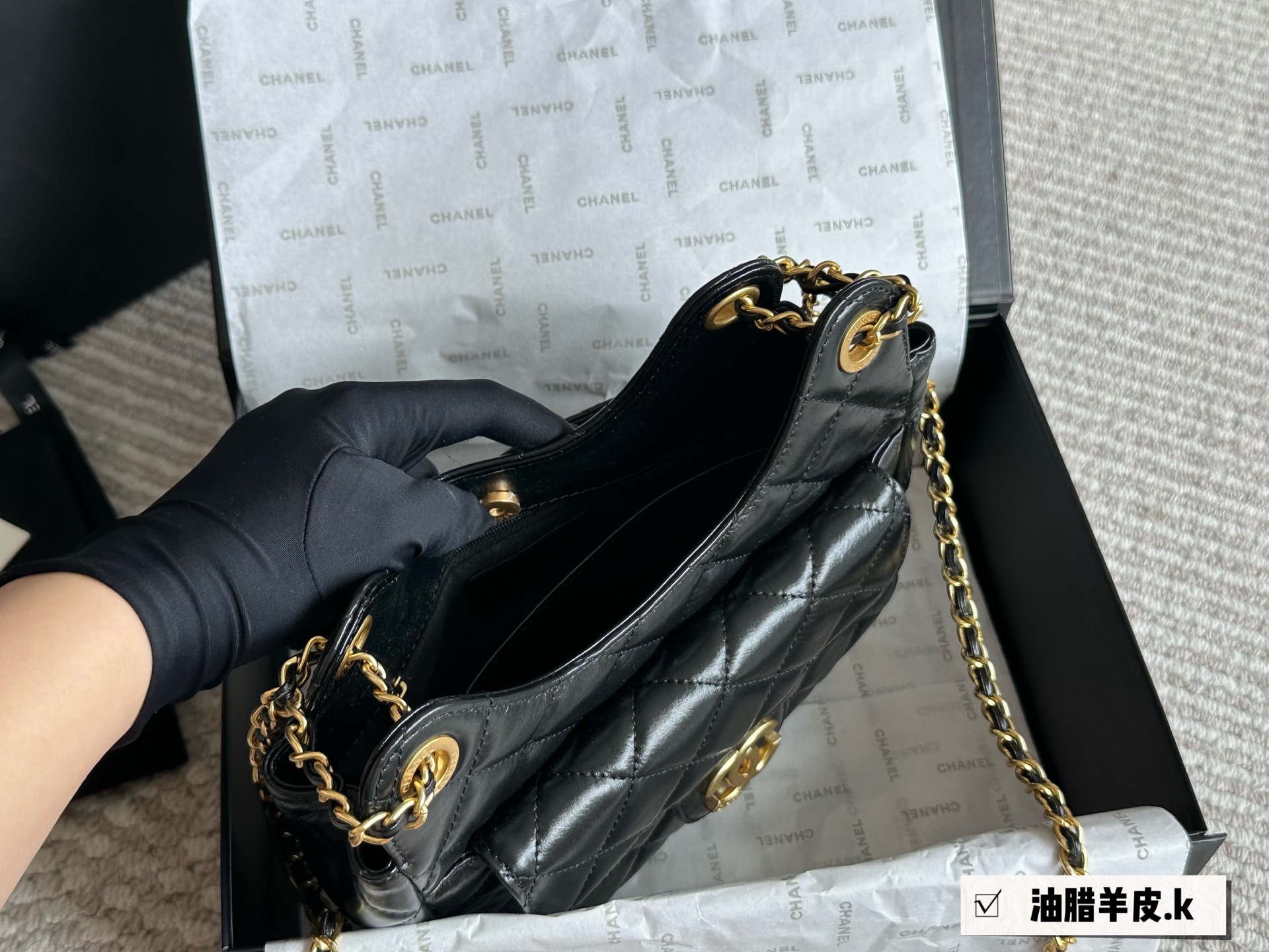 Chanel waxed leather shoulder bag
