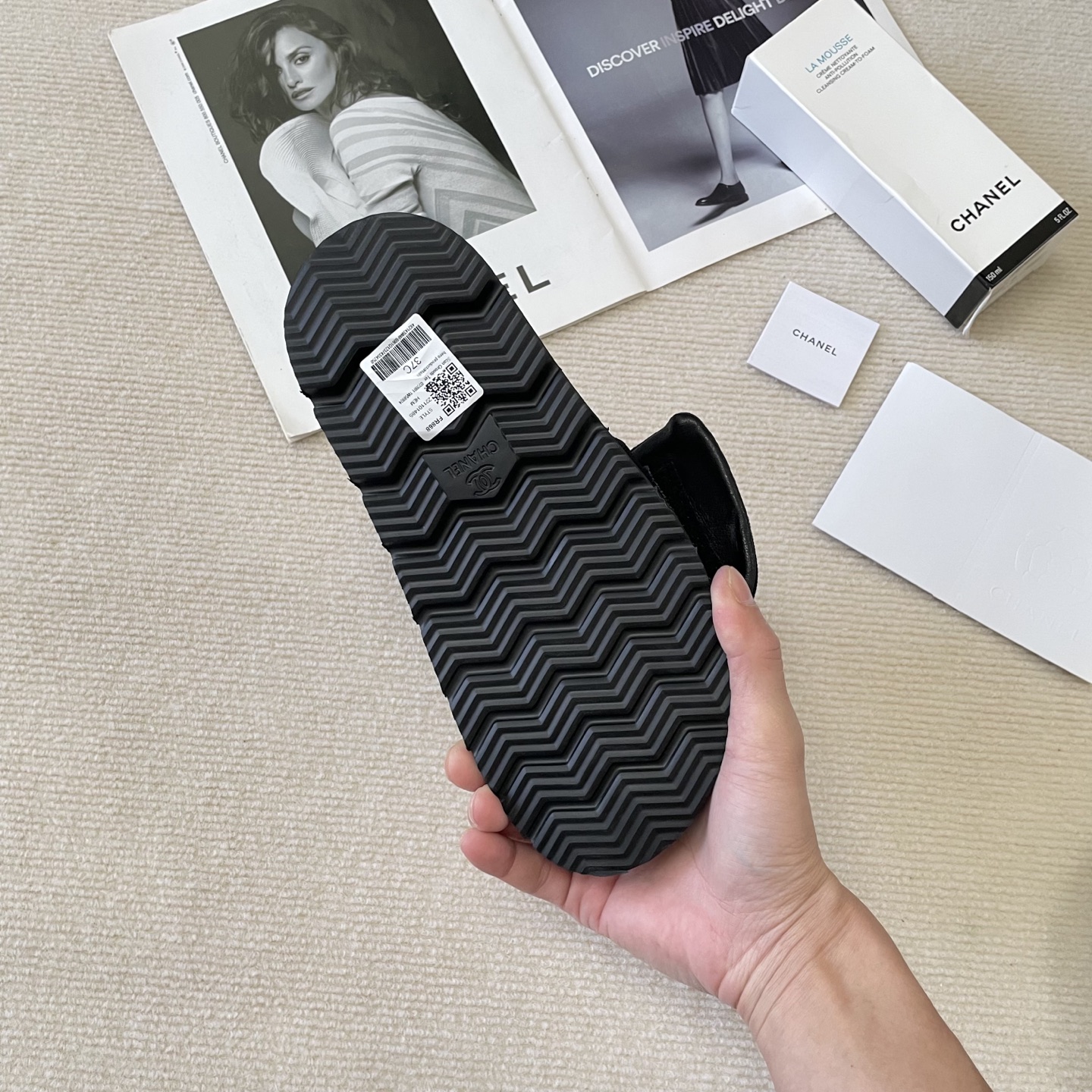 Chanel small backpack slippers couple same style