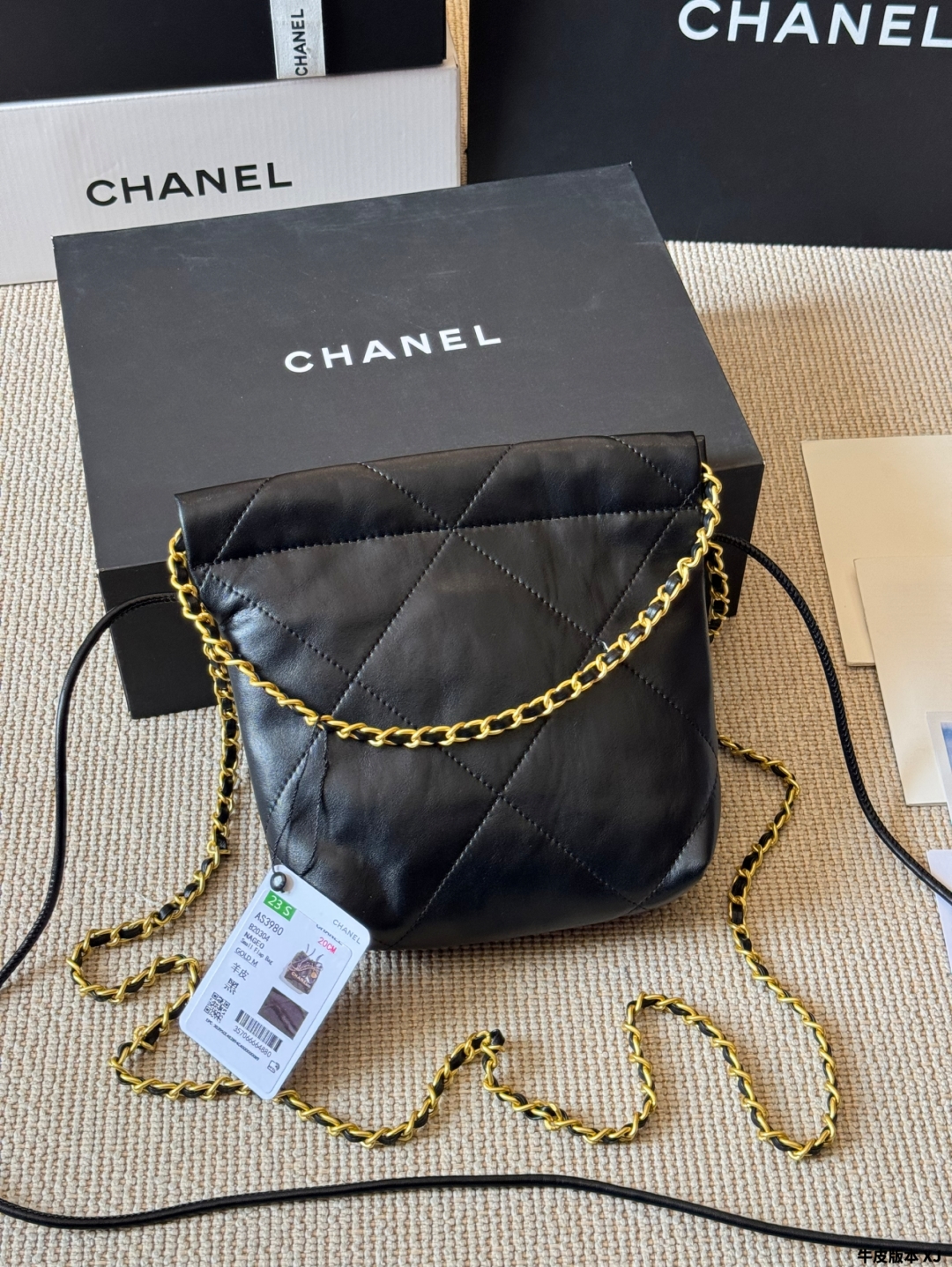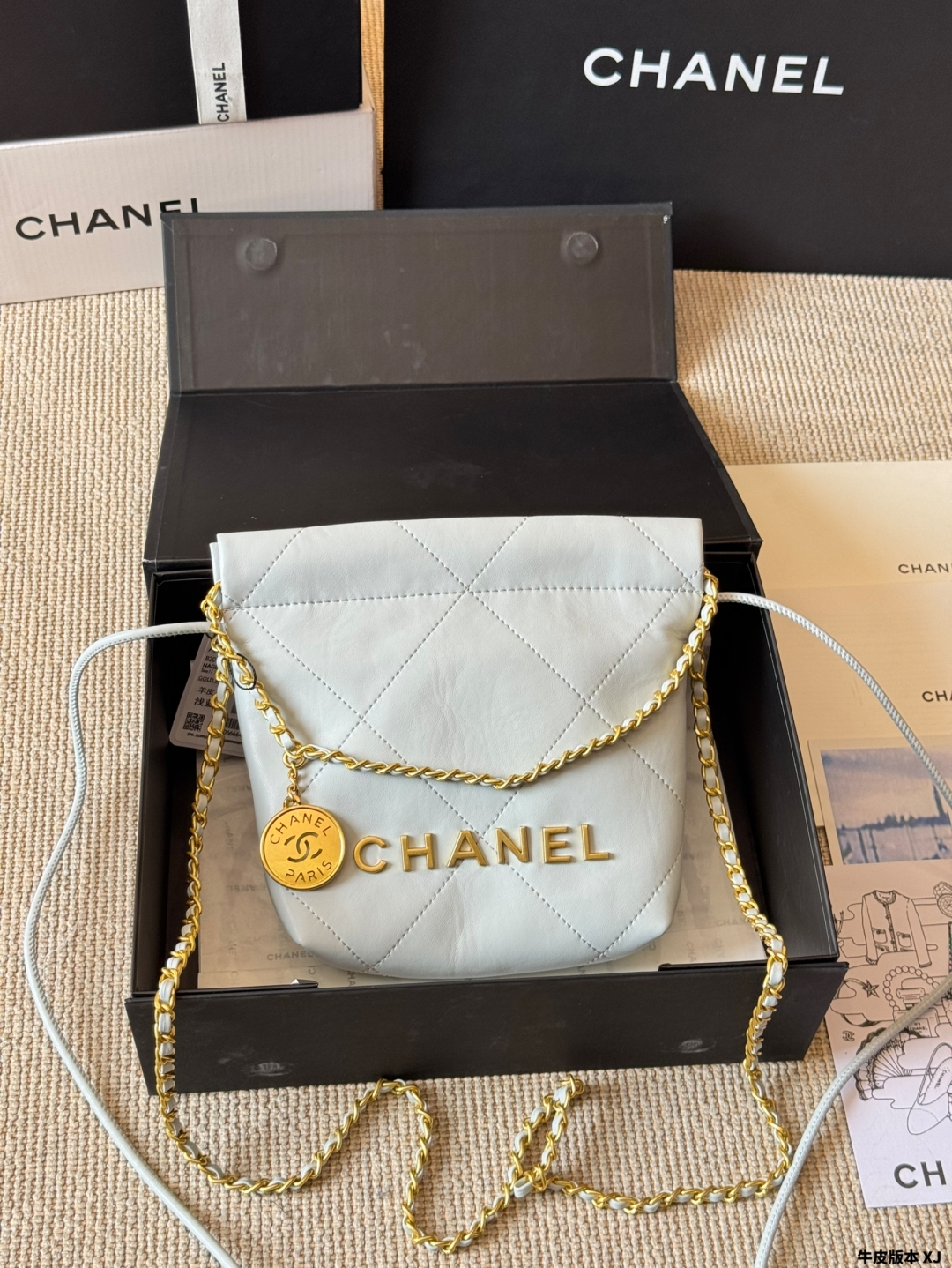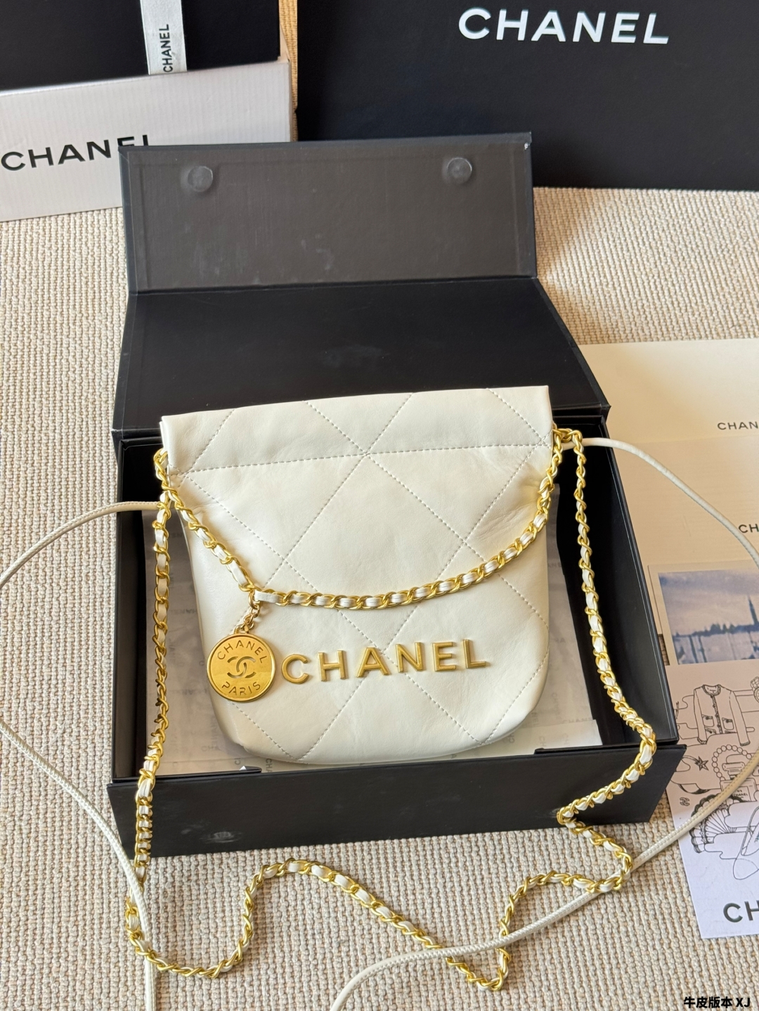 Chanel gold coin trash bag
