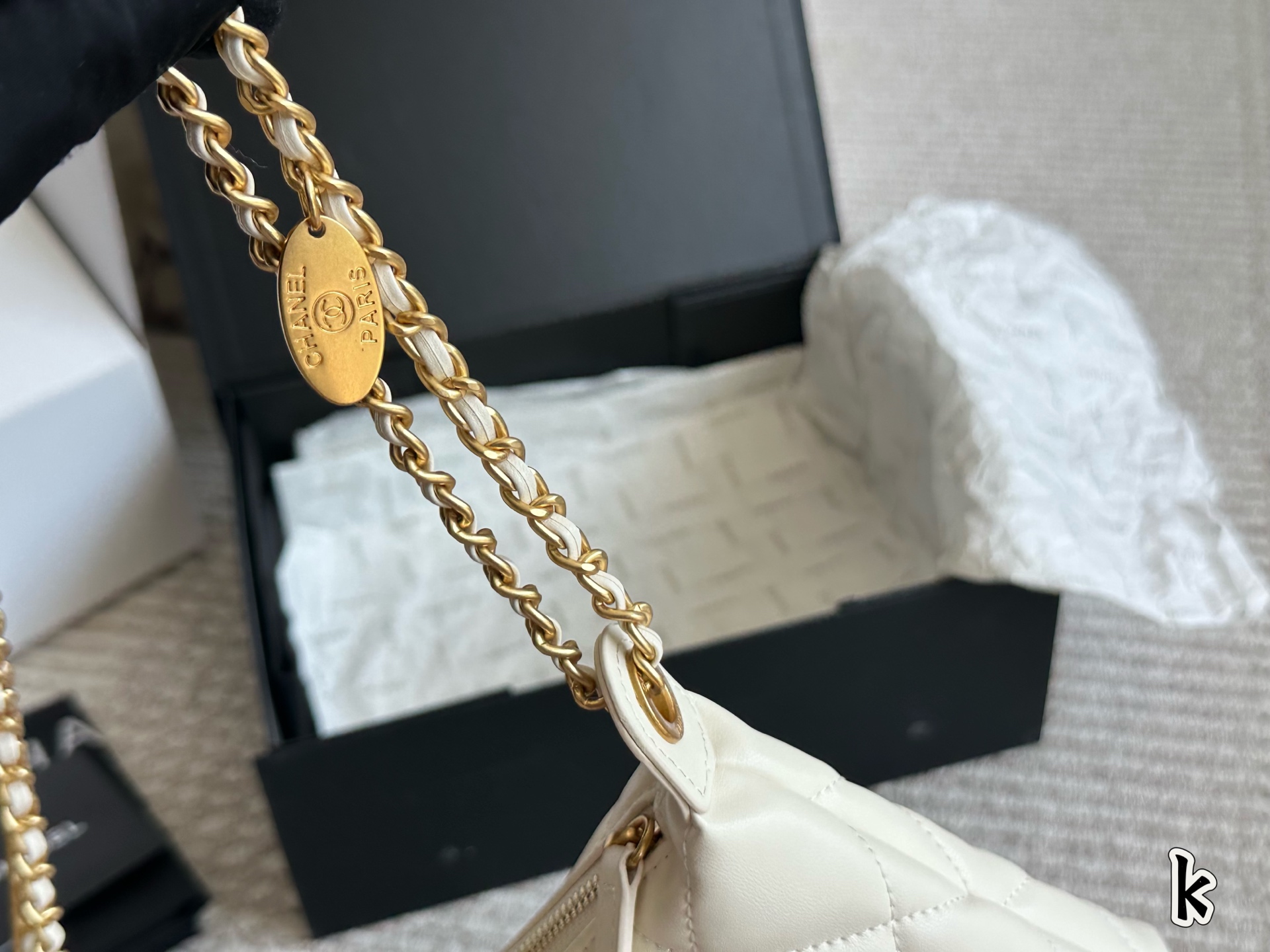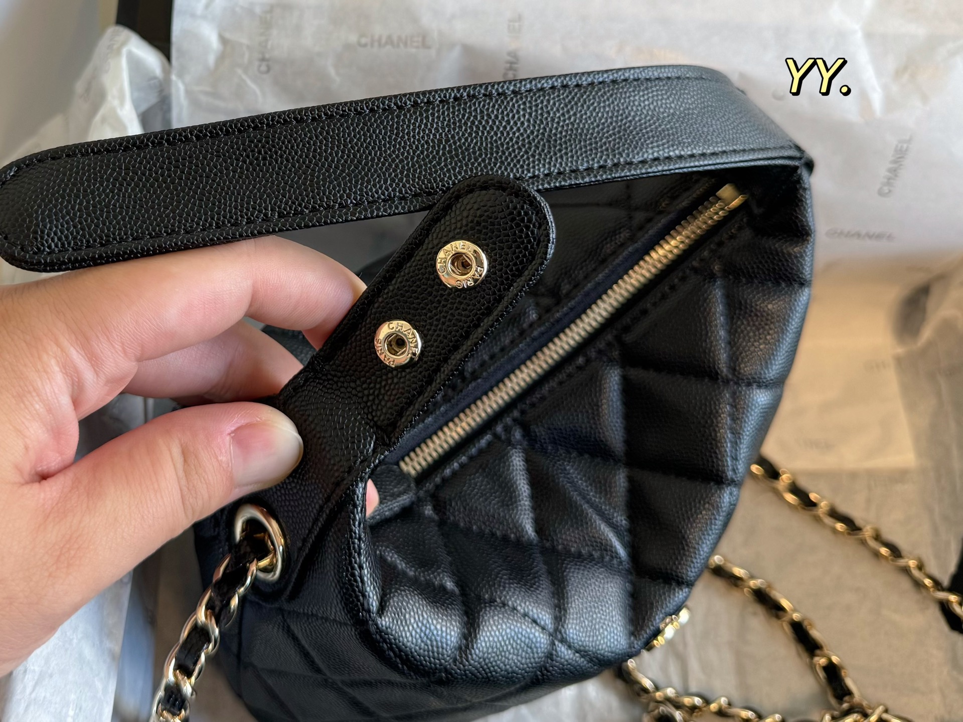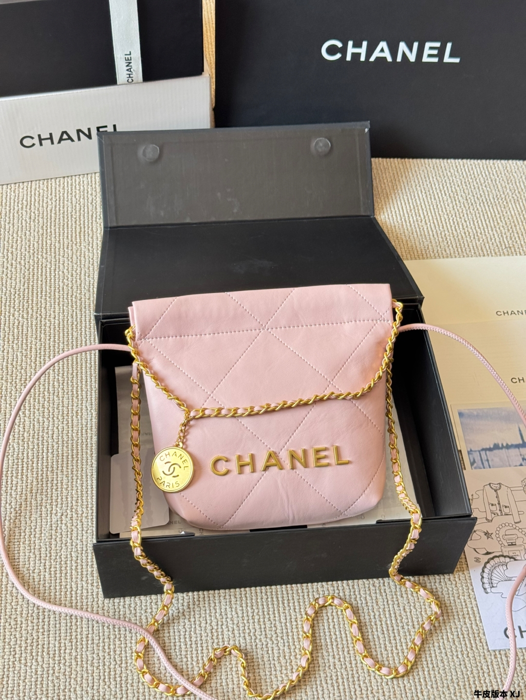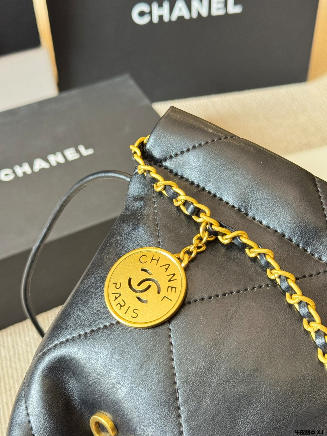 Chanel gold coin trash bag