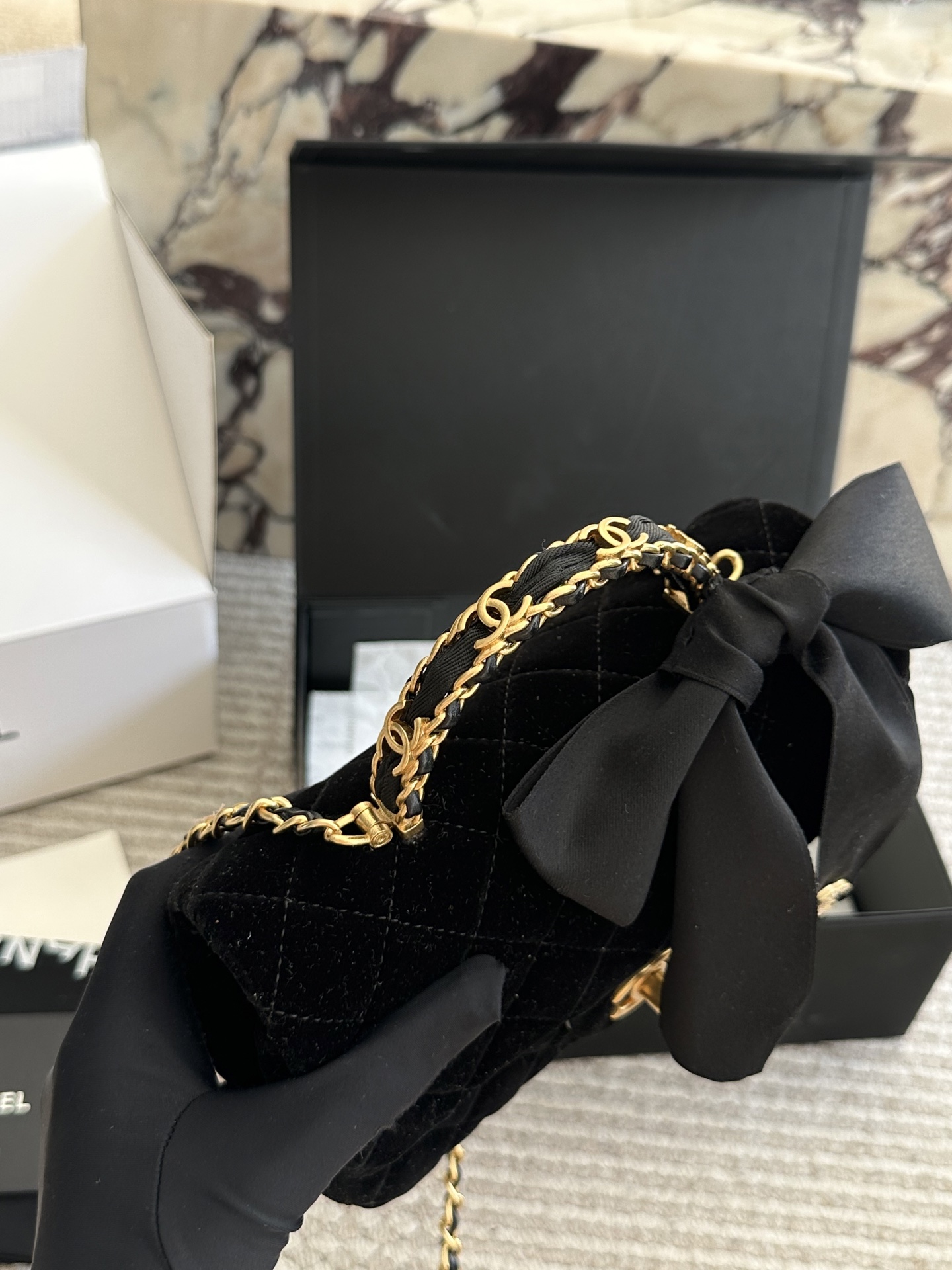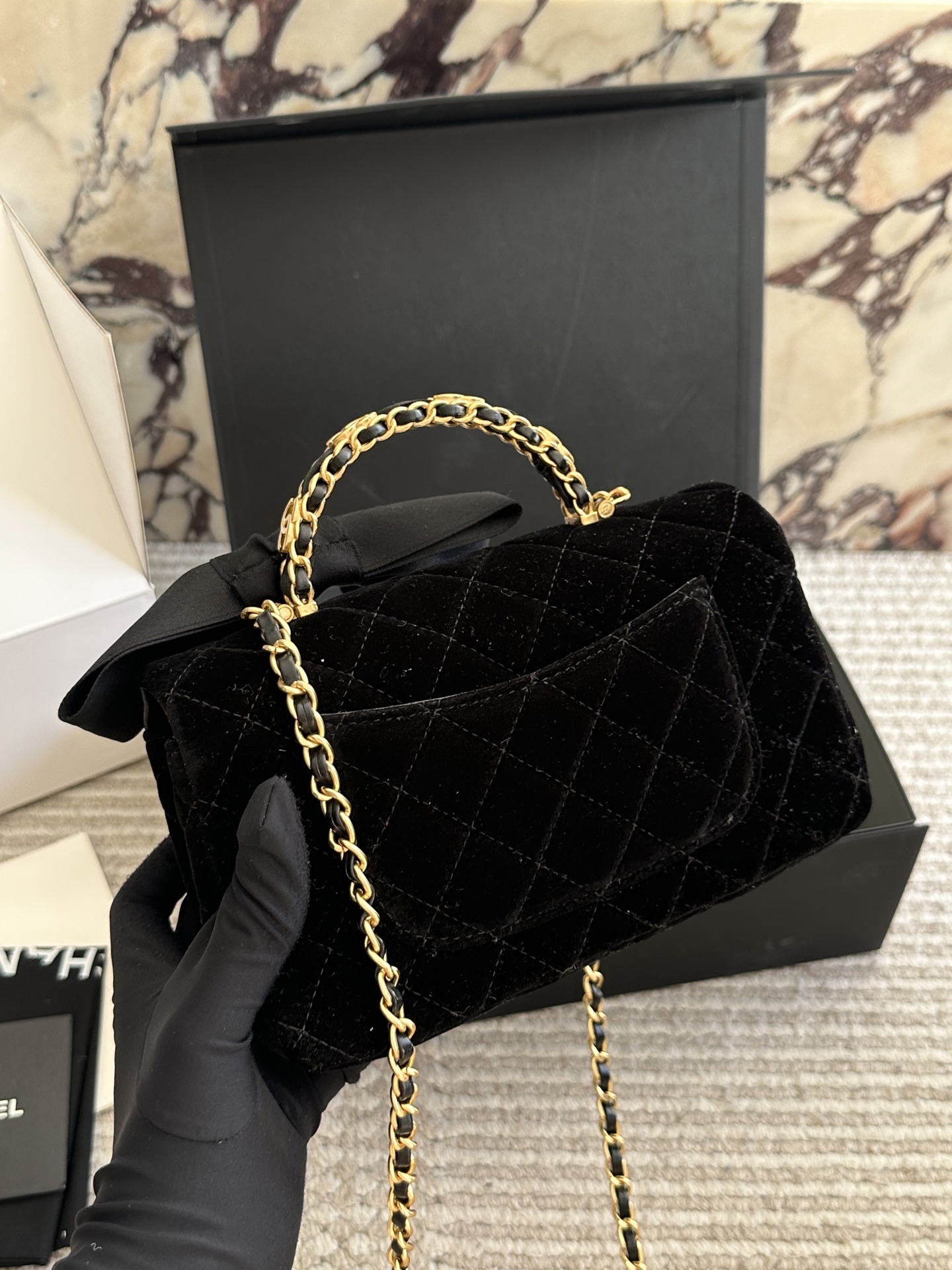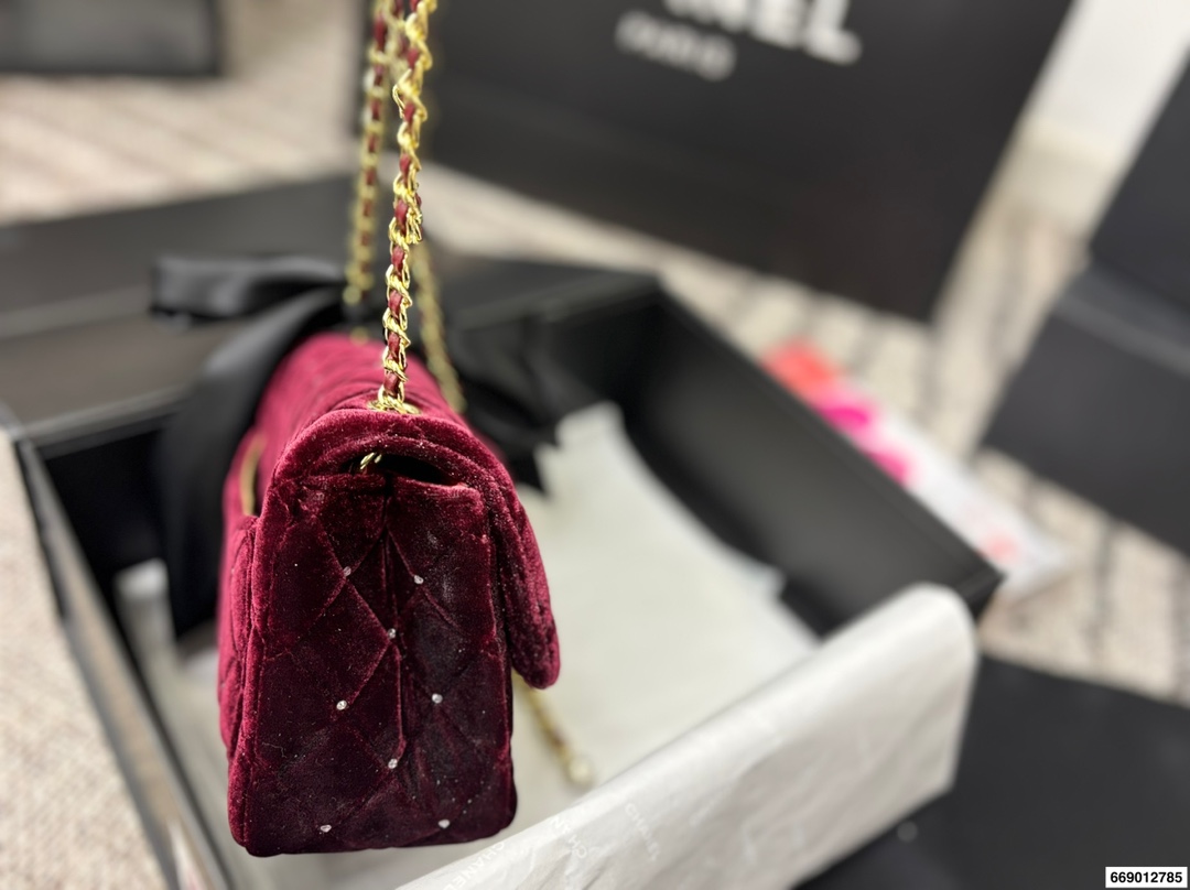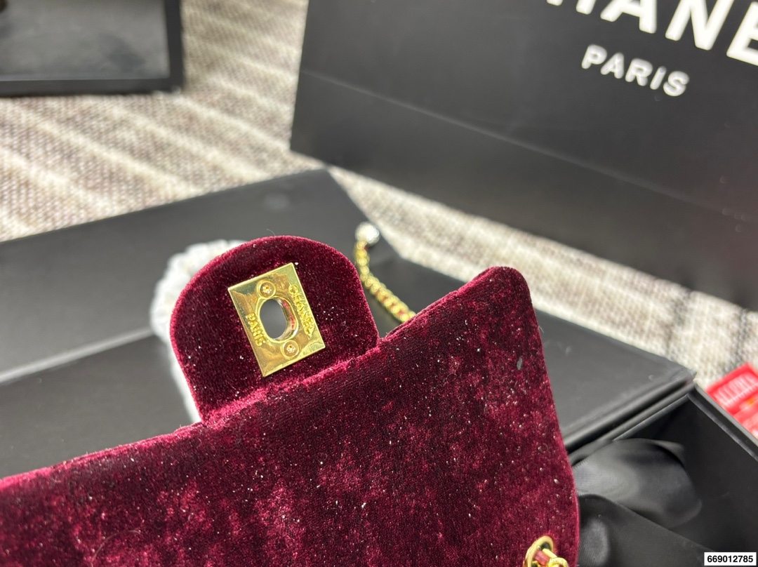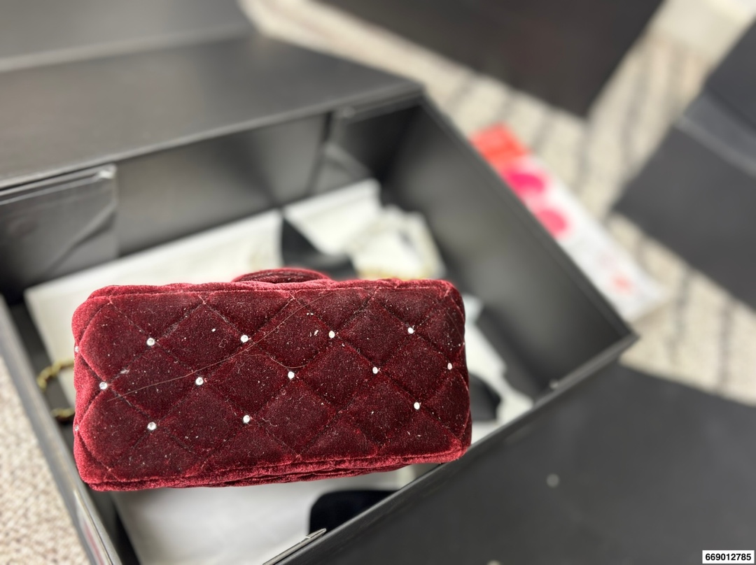 Chanel Velvet Diamond Ball Chain Square Fat Bag