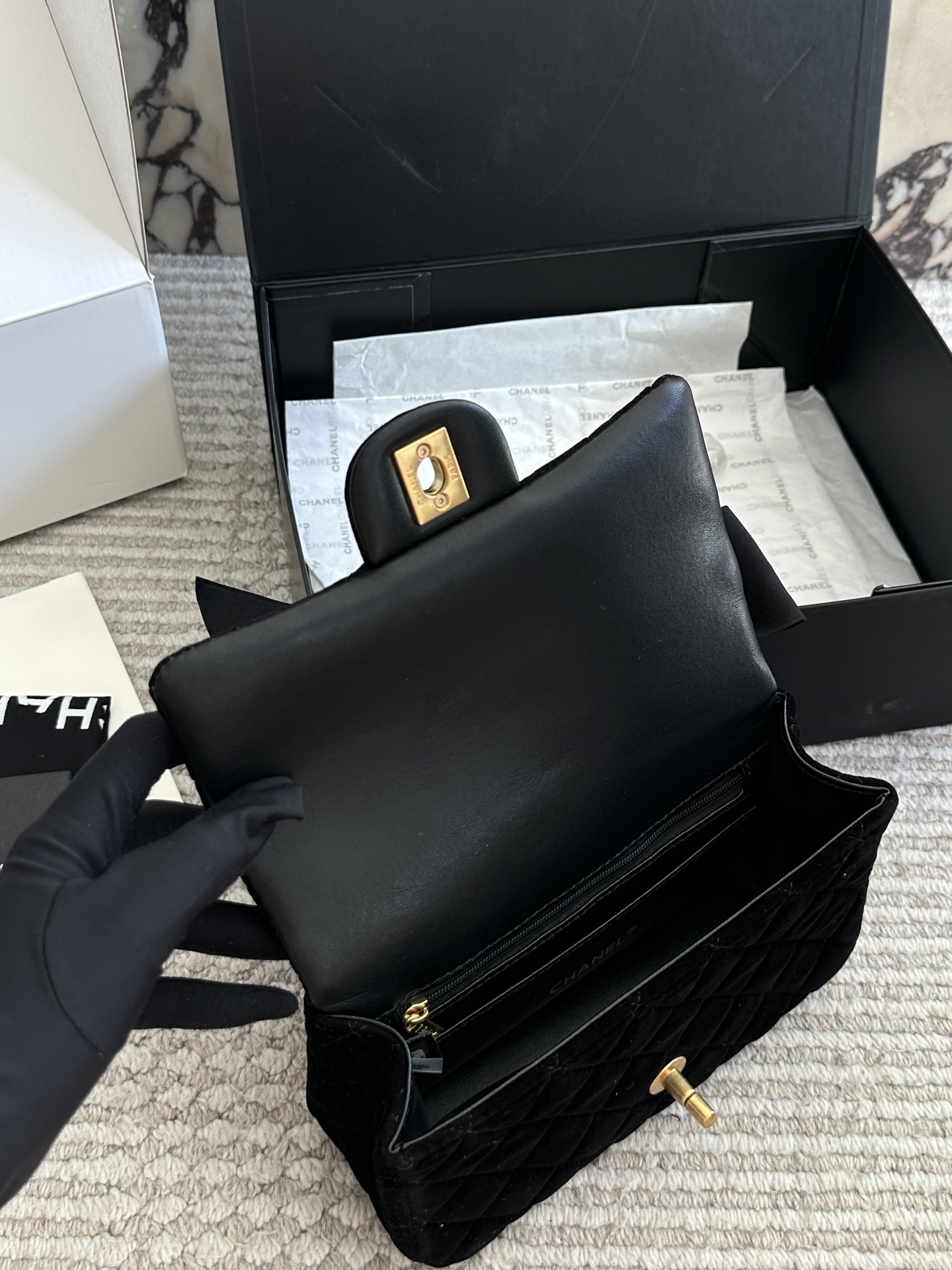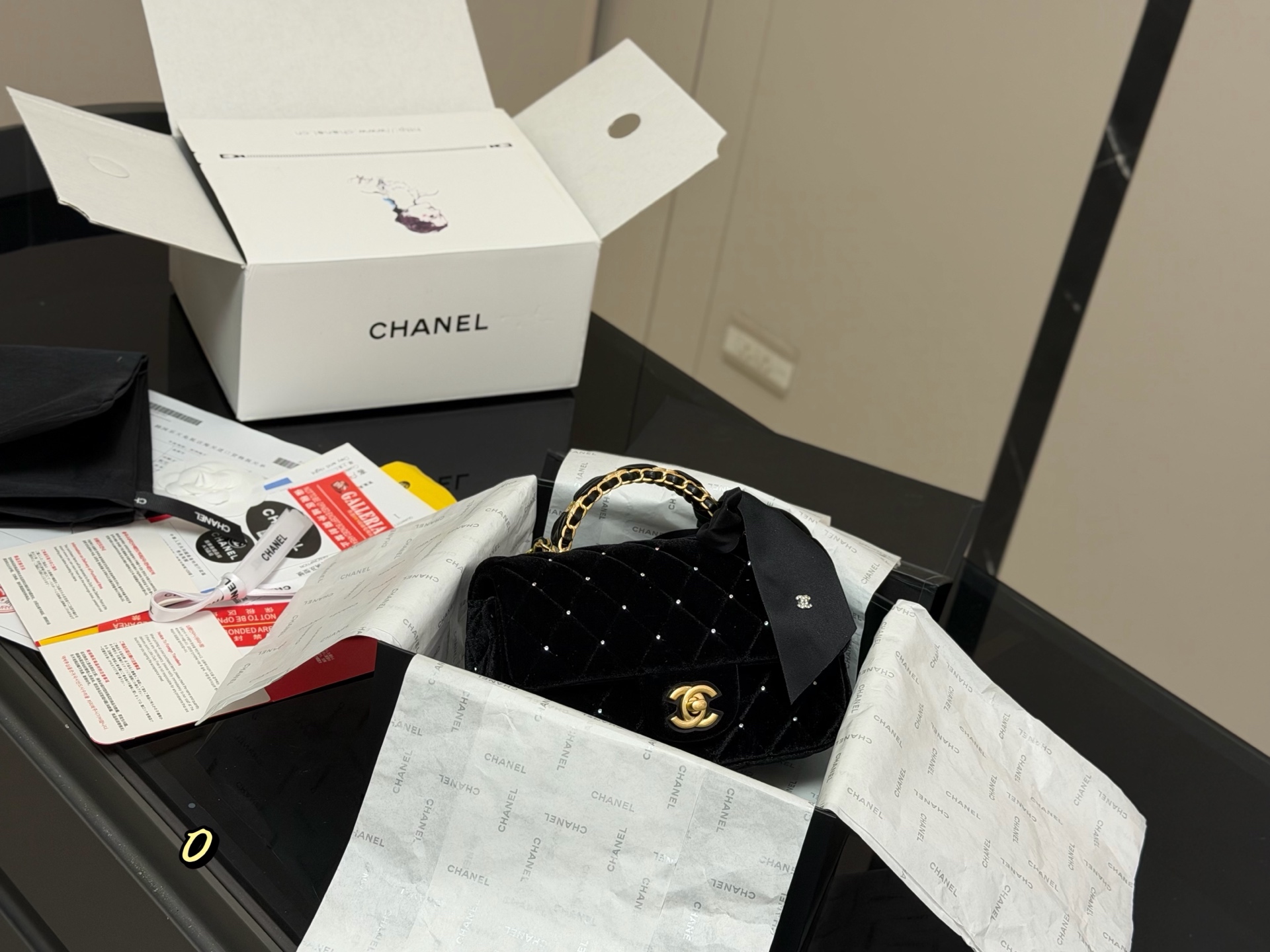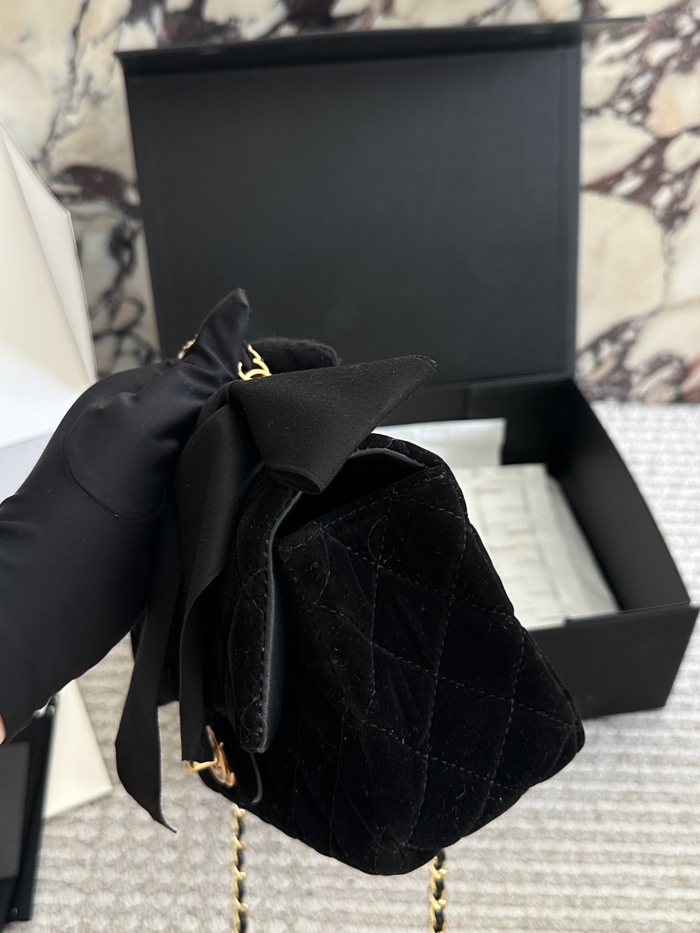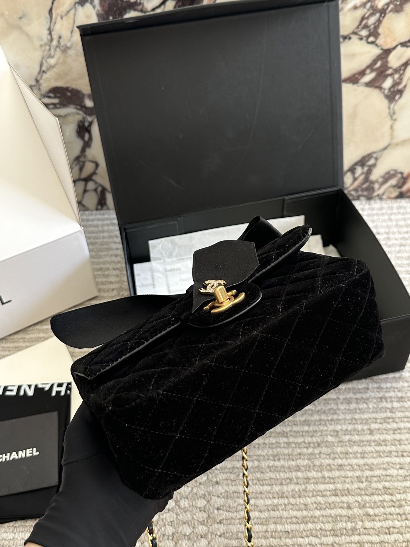 Chanel Velvet Diamond Ball Chain Square Fat Bag