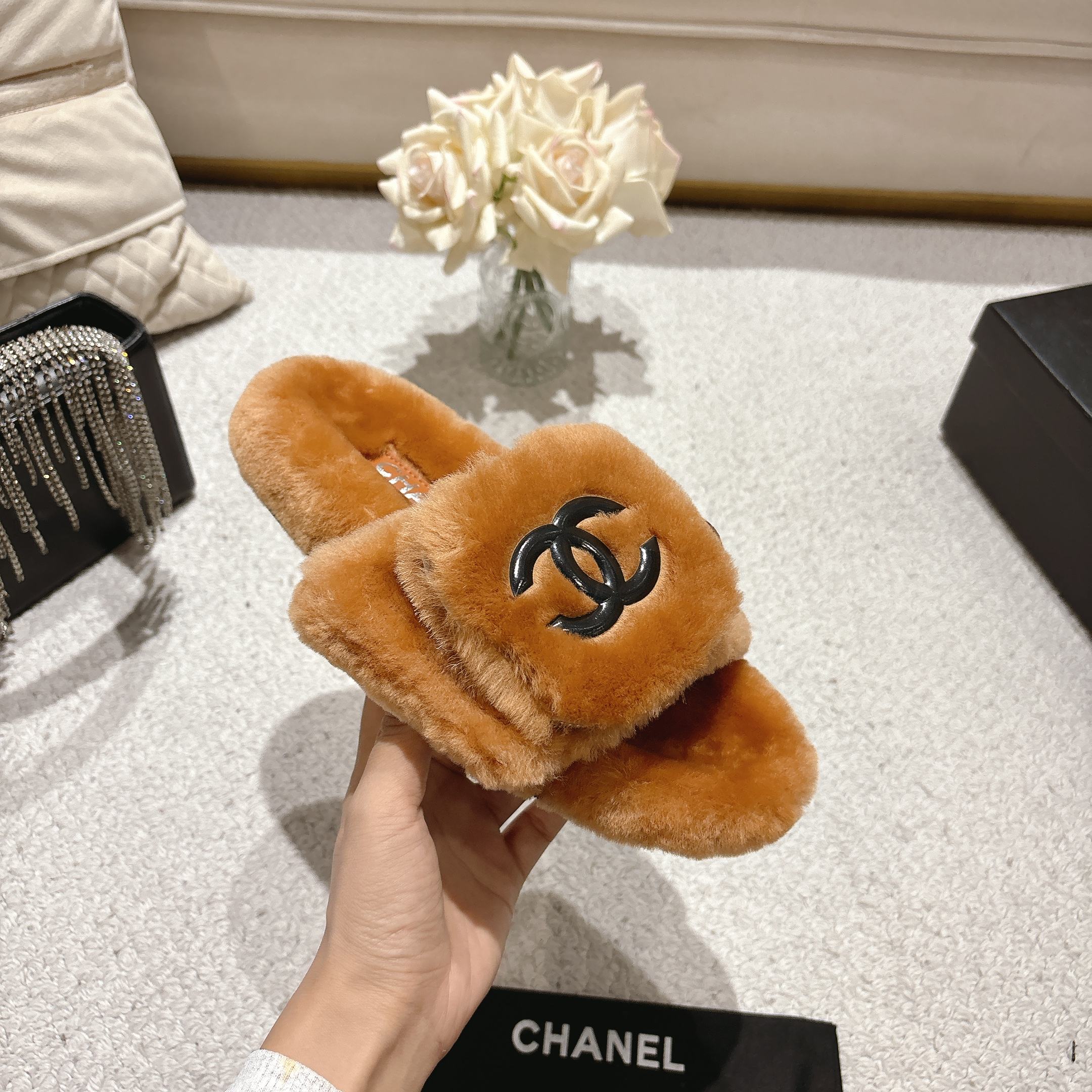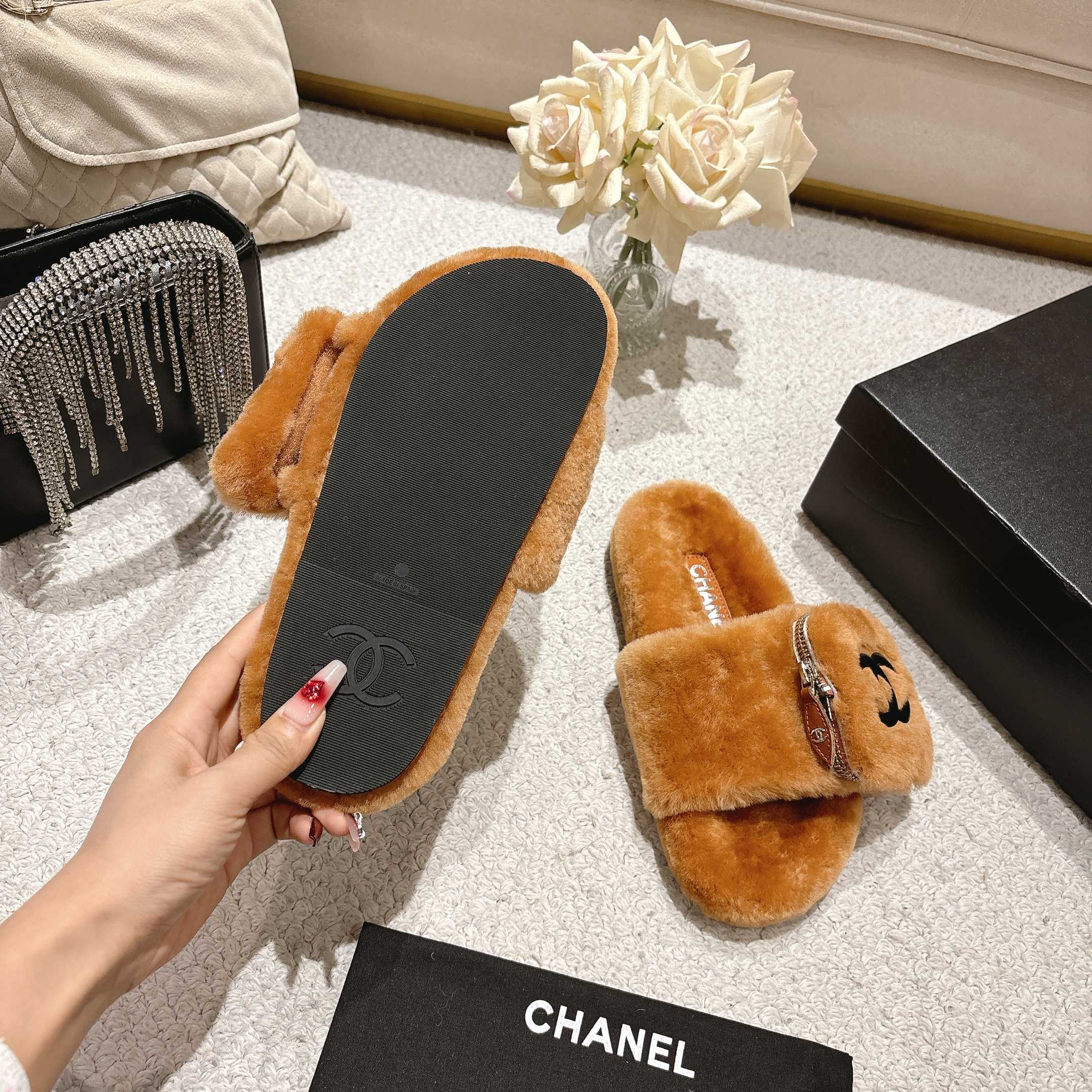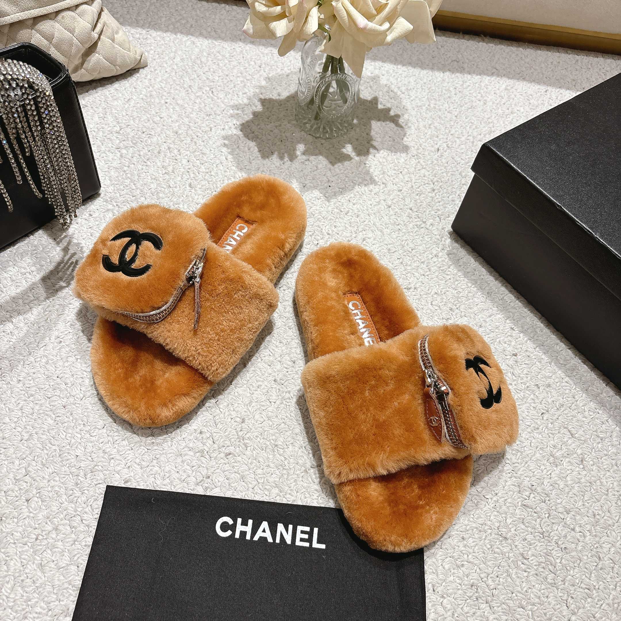 Chanel Wool Slip-on Slippers
