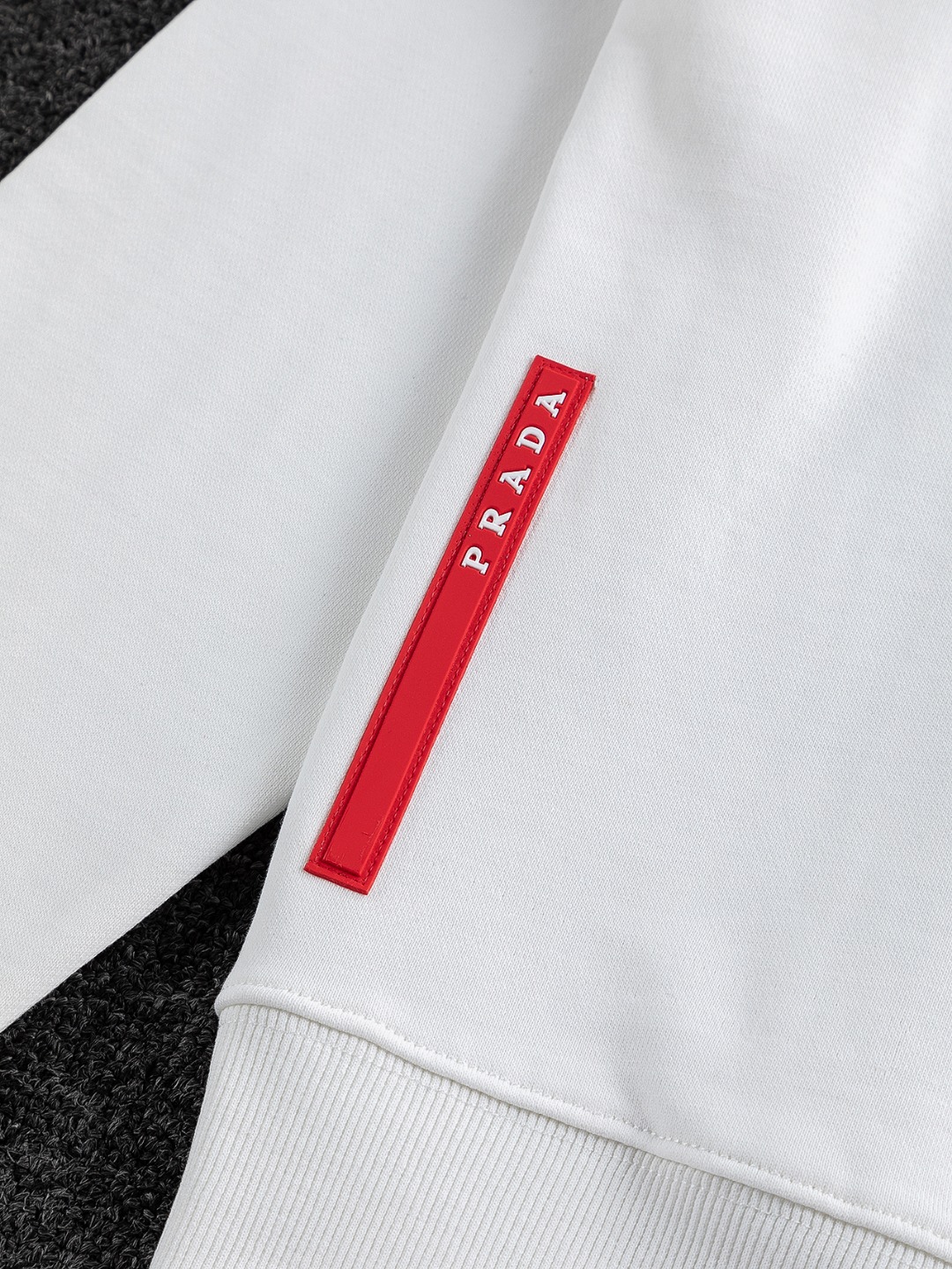 Prada 25SS Autumn/Winter Classic Sweatshirt: This classic sweatshirt features a metal triangle logo on the chest and a red leather stripe embroidered on the right side of the hem. It blends sporty minimalism with exquisite details. Made with imported exclusive fabric, the Prada enamel triangle metal logo on the chest exudes historical significance, further enhancing the brand's prestige. The minimalist design showcases unparalleled elegance. The simple and versatile black and white color scheme, along with the unisex metal triangle logo, makes it suitable for all body types and meets all your styling needs. Made from imported materials, it offers a smooth and lightweight feel, like silky cotton, making it incredibly comfortable against the skin. This versatile, casual sweatshirt features a relaxed fit, a basic knitted ribbed crew neck design, and a simple, stylish, and durable look for both men and women.