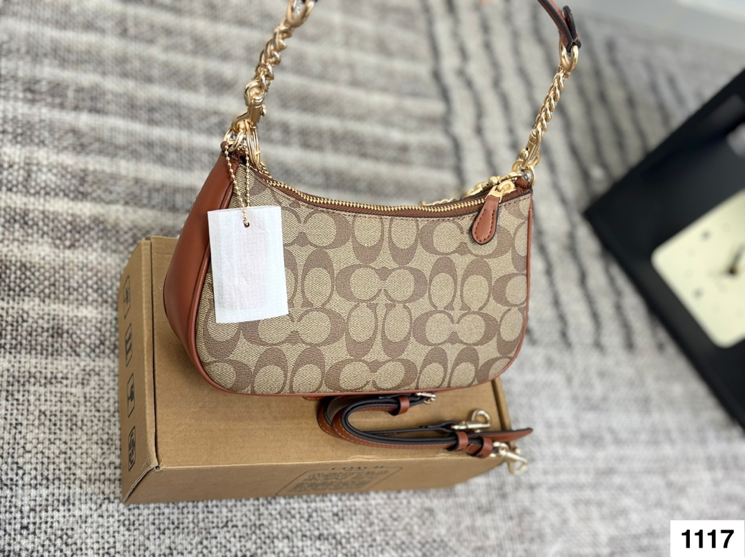 Coach Hobo bag Mahjong bag with two shoulder straps, can be carried by hand or crossbody, a versatile artifact, original single leather, high-end hardware logo.