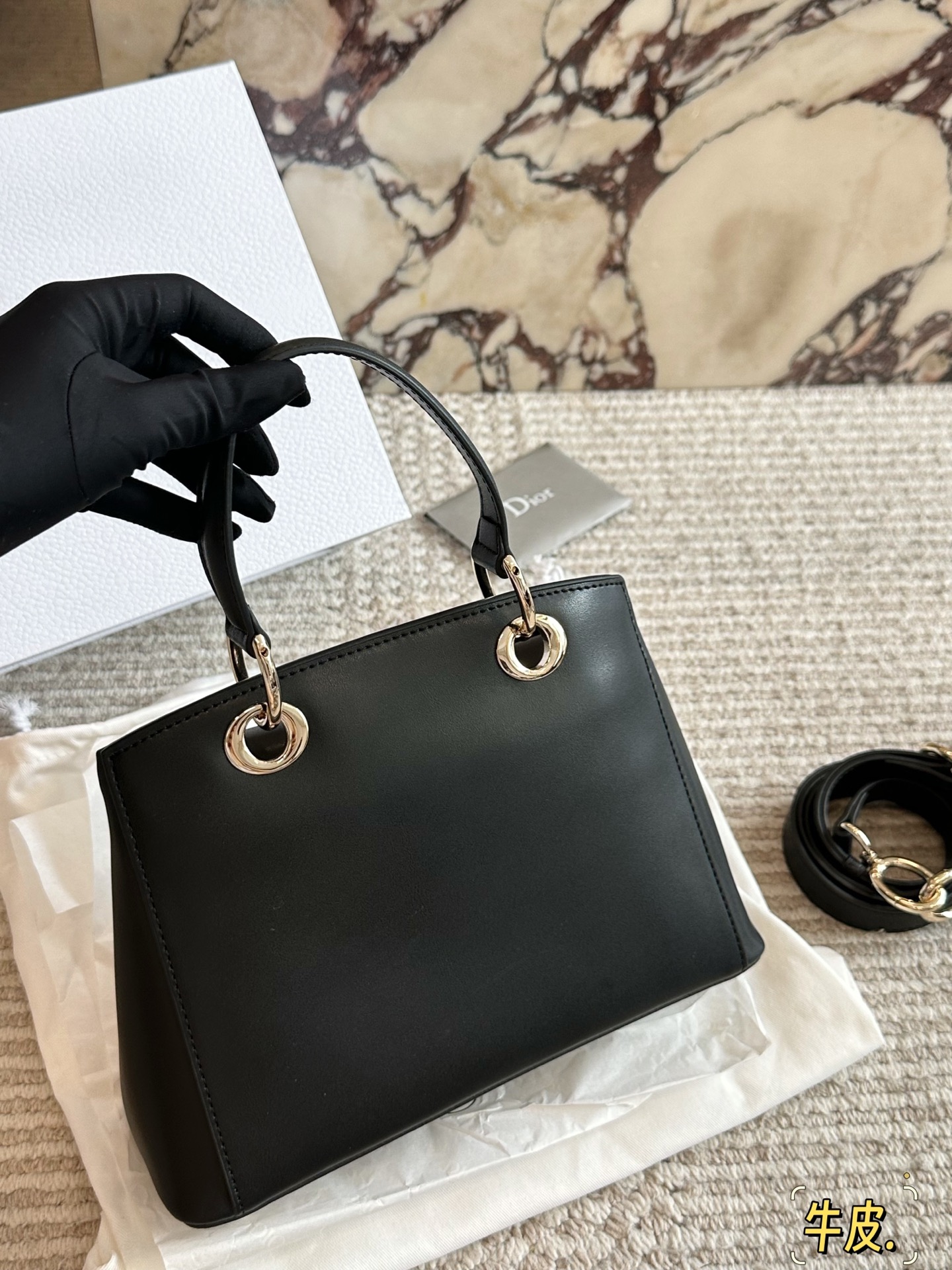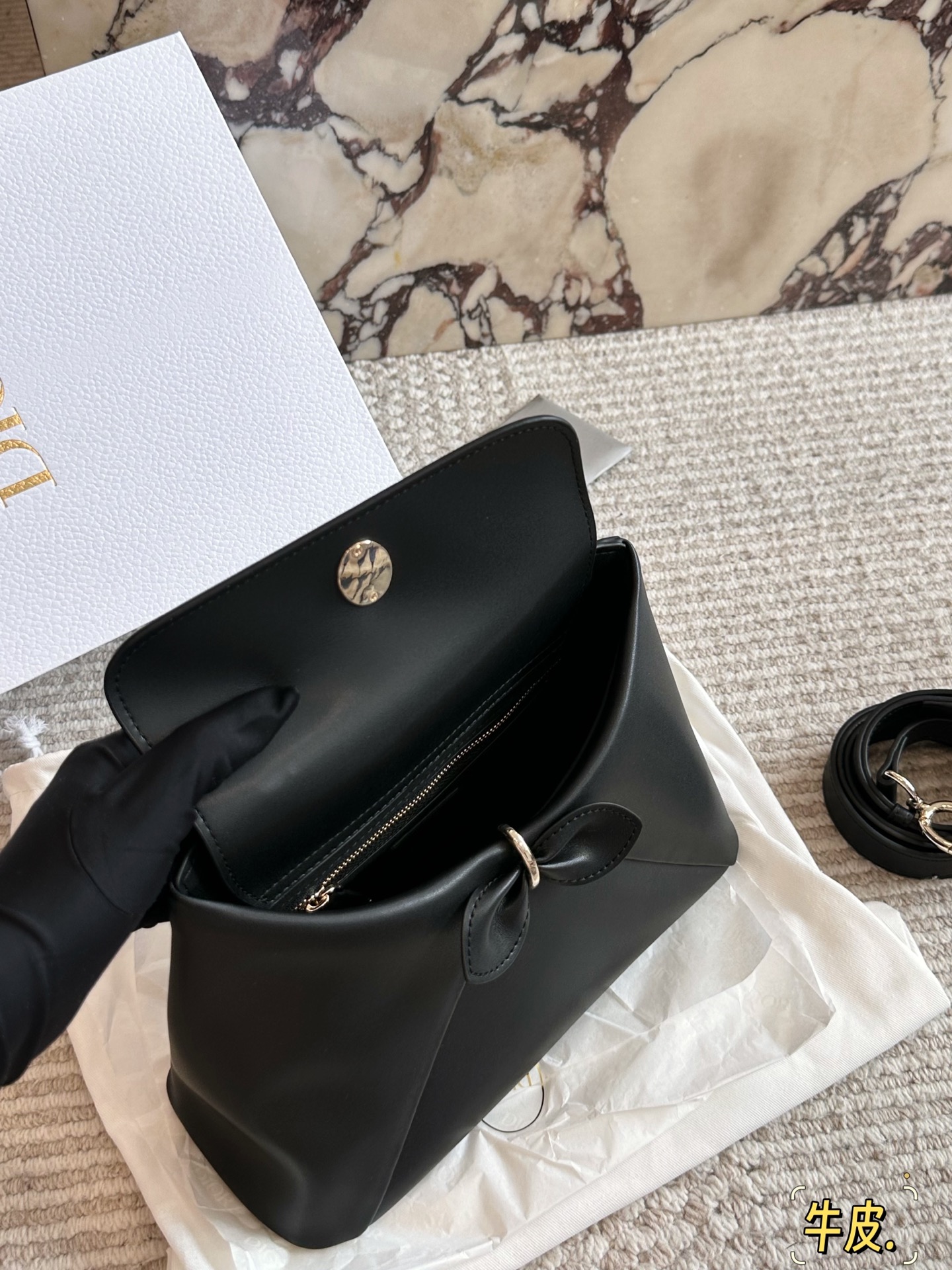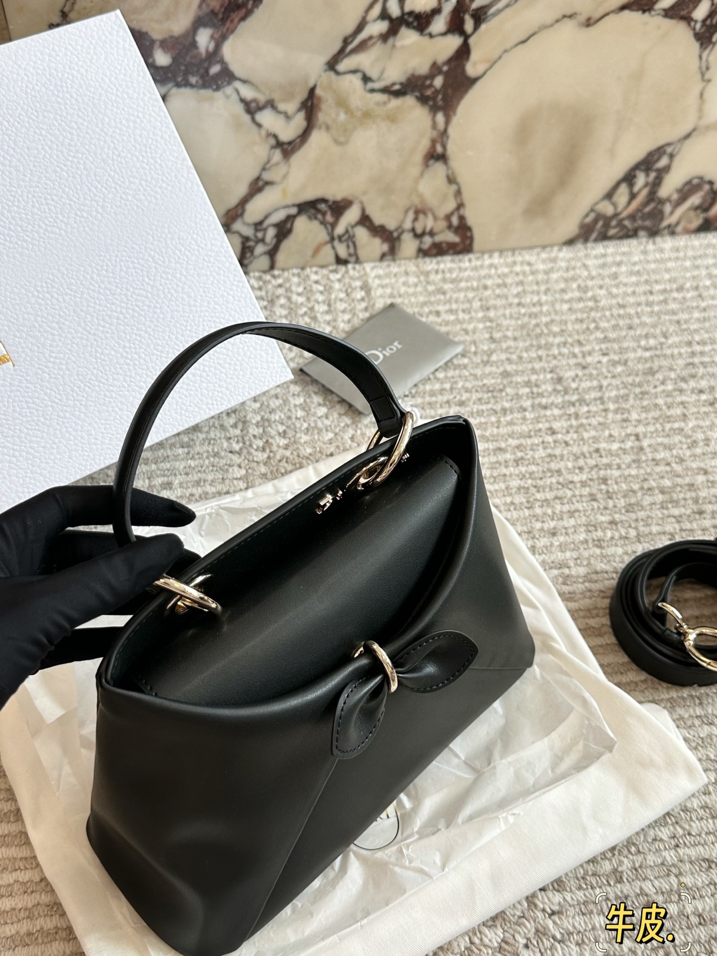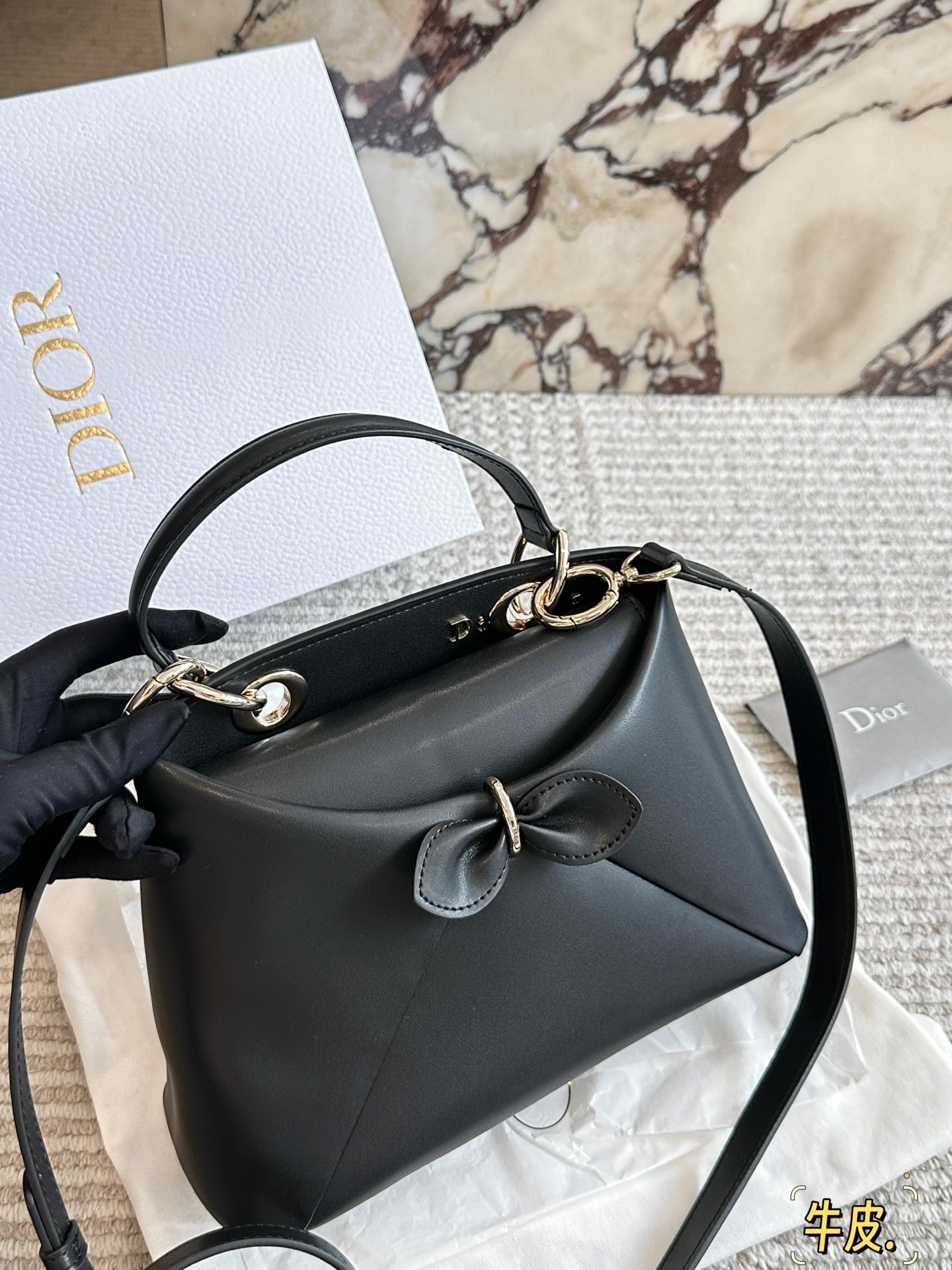 DetailThe Dior Spring/Summer 2026 bow tote bag, designed by Jonathan Anderson, draws inspiration from elements in the brand's archives. Crafted from black leather, it features a three-dimensional bow and metal clasp on the front, exuding elegance and distinctiveness. The handle incorporates the "Dior" monogram, showcasing impeccable detail. Its moderate size allows for hand-carrying or shoulder-carrying, making it suitable for both commuting and formal occasions. With its architectural silhouette and modern aesthetics, it combines style and practicality, making it a truly eye-catching piece this season!