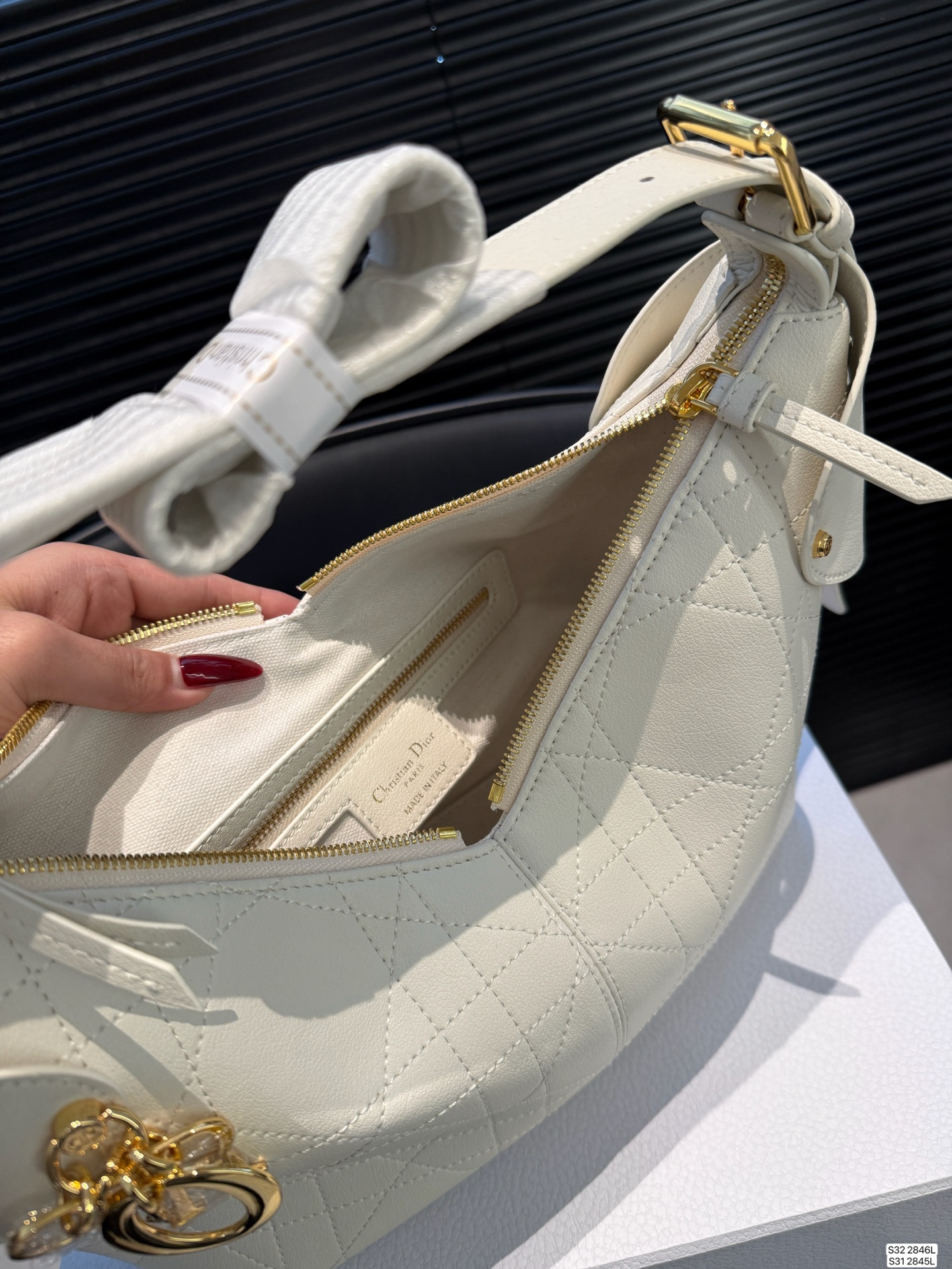 DetailThe Dior Voyage is so photogenic! The relaxed hobo shape is understated yet sophisticated!The V-shaped opening means it won't clog your posing time, even in colder weather with a thick coat. It's incredibly spacious, easily fitting a phone, camera, and lipstick—perfect for travel and shopping.