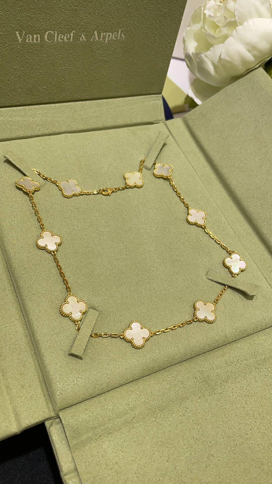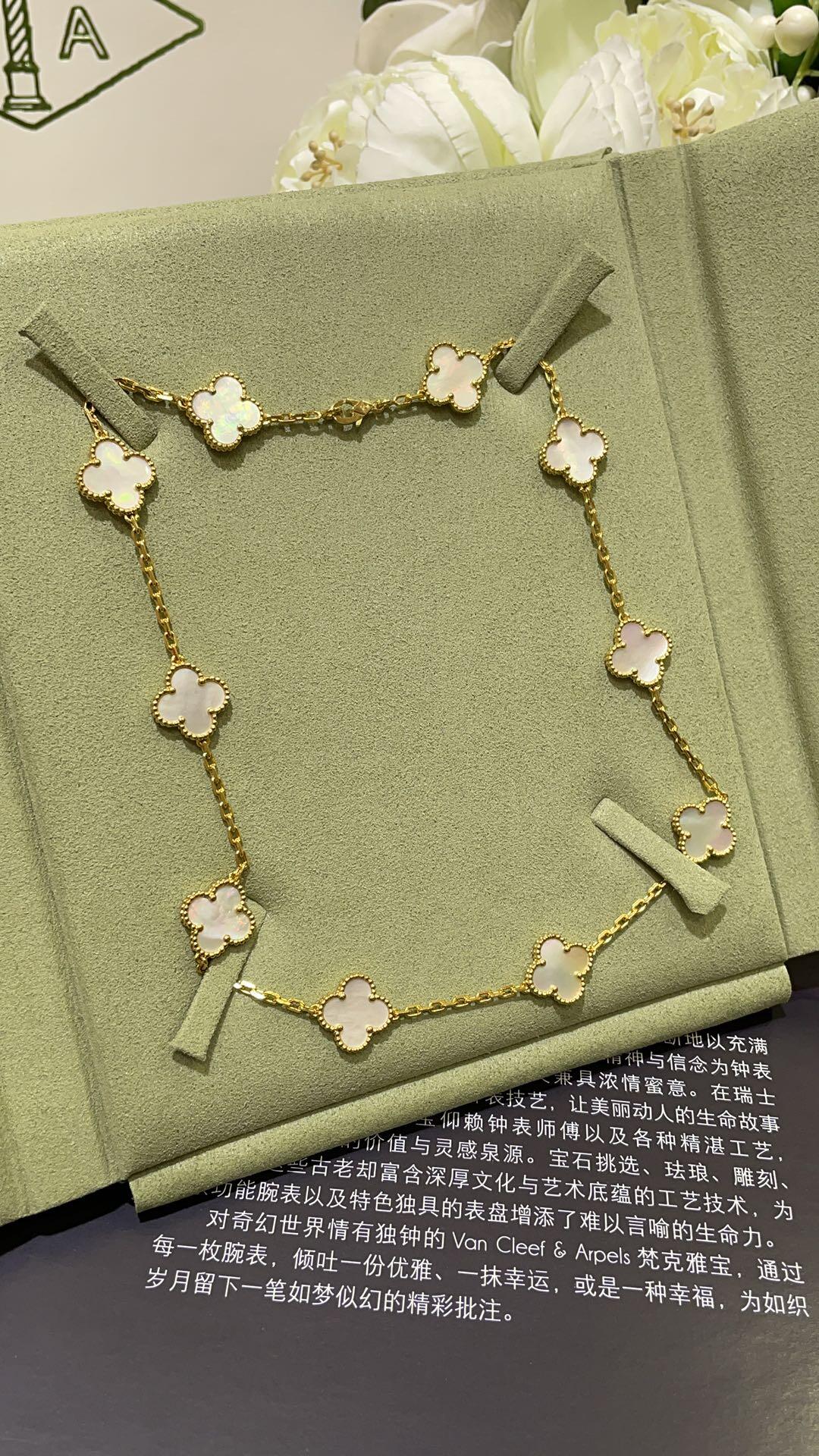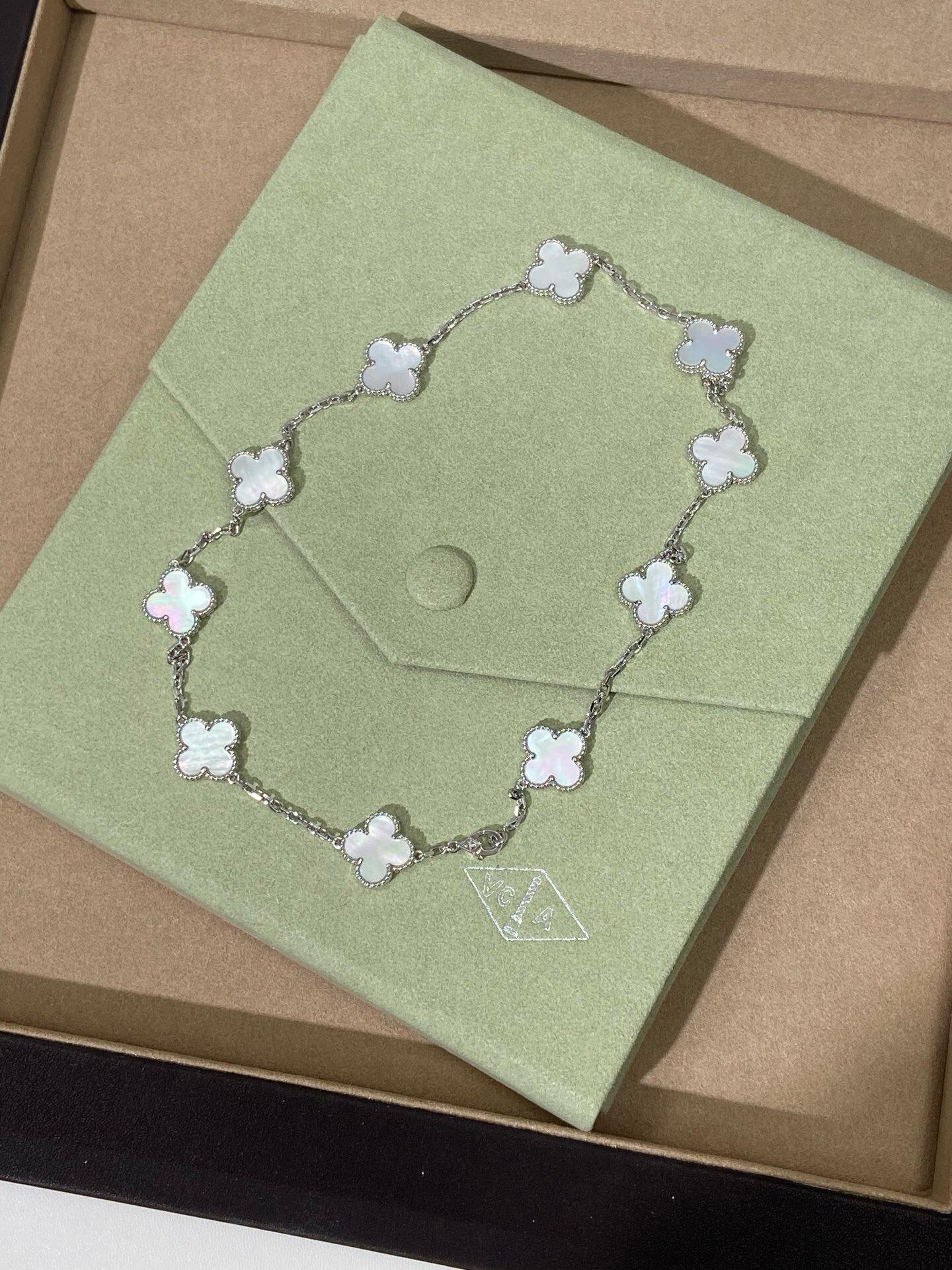 10 Flower White Mother-of-Pearl Four-Leaf Clover Necklace