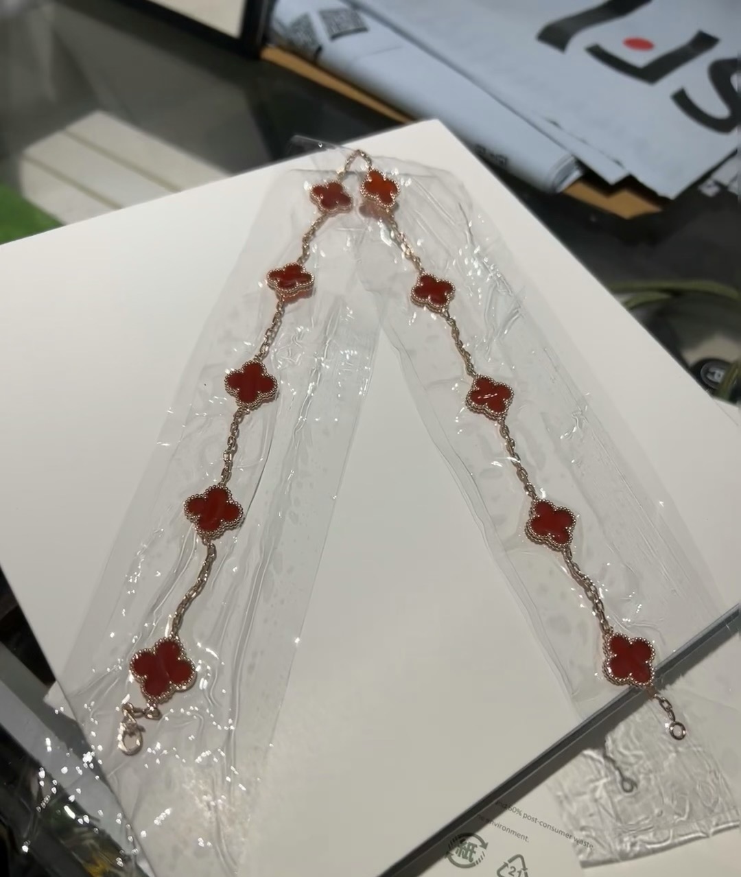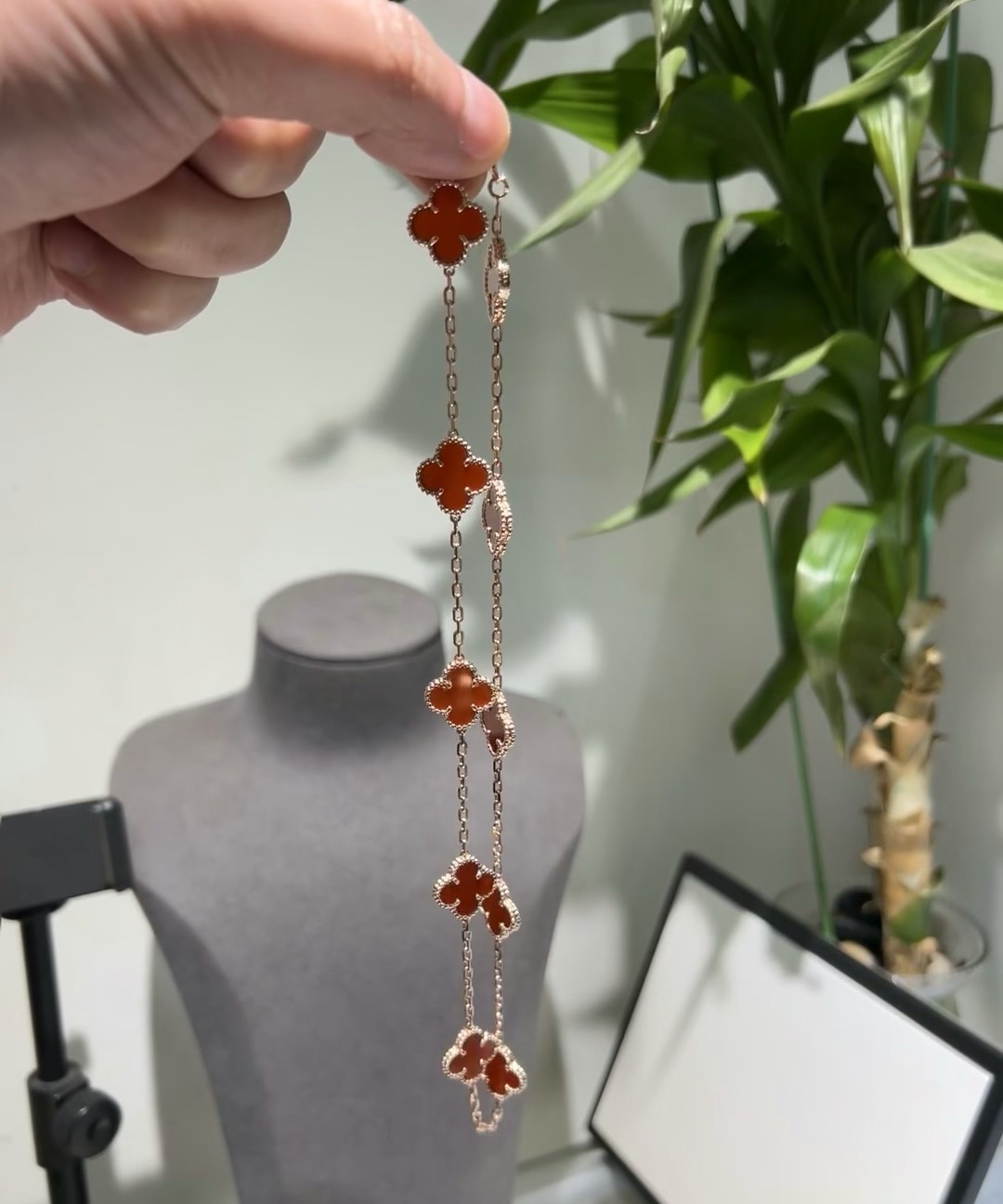 Vca Tiger Eye Stone 10 Flower Clover Necklace