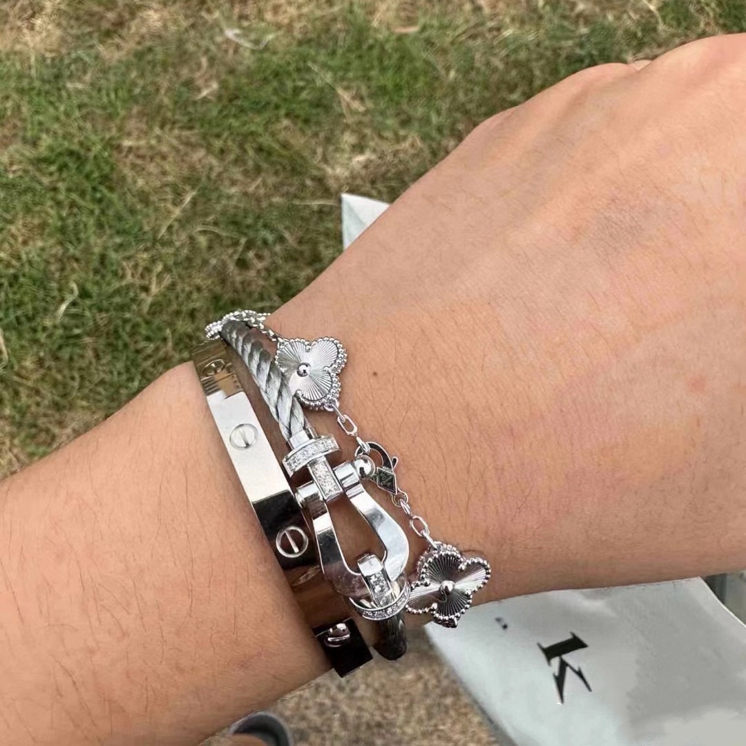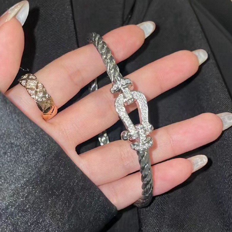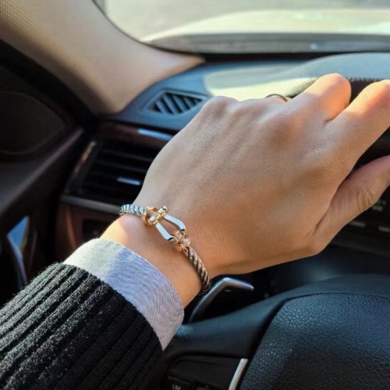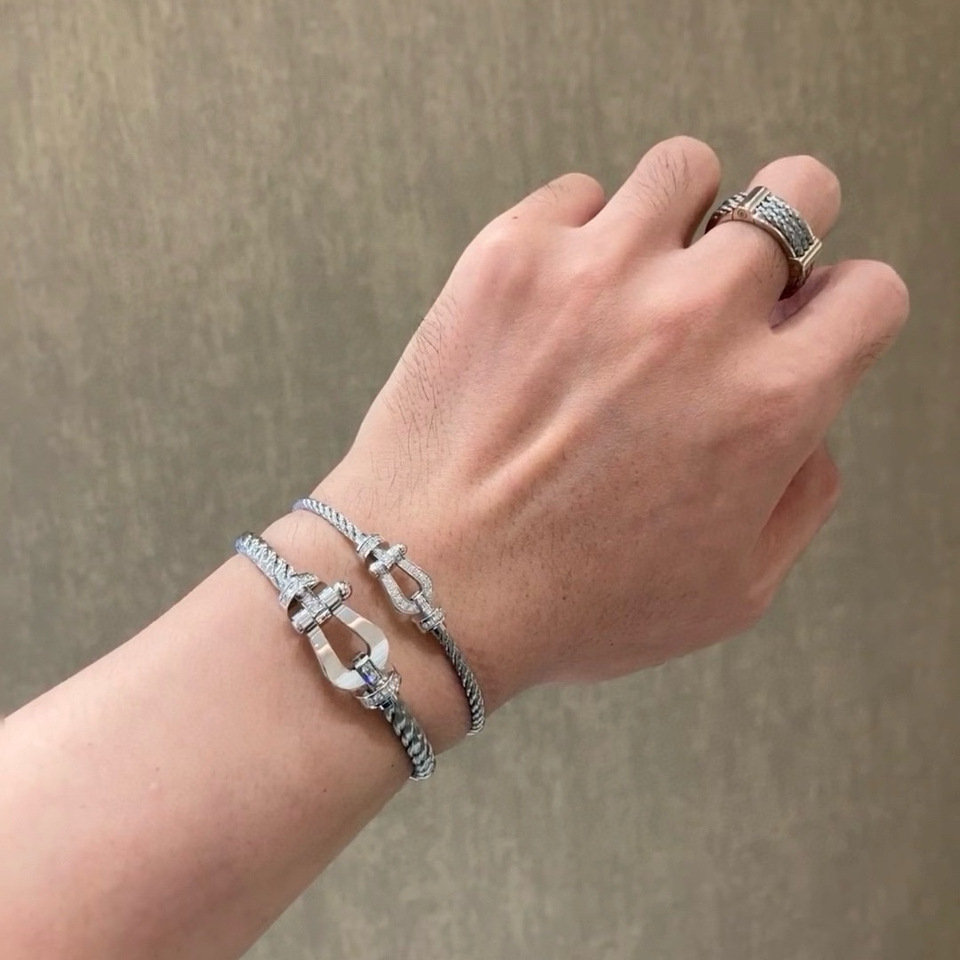 Fred's Horseshoe Clasp Unisex Soft Silver Cord Bracelet