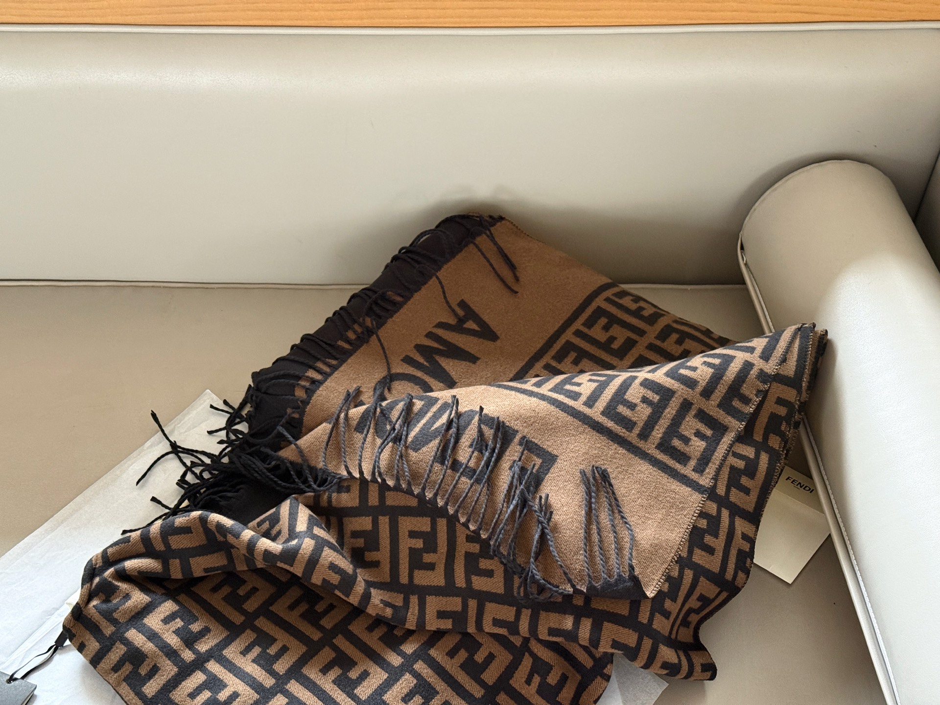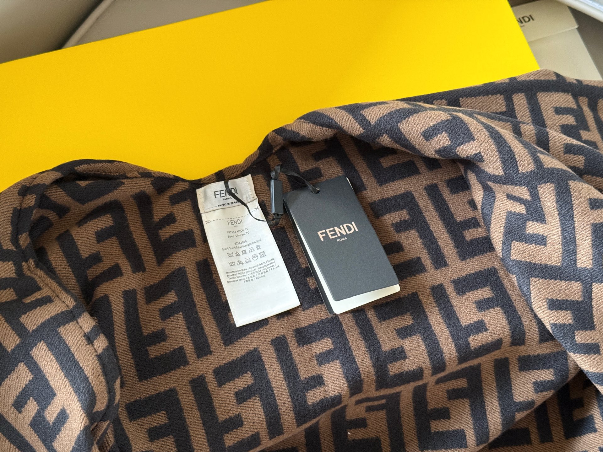 DetailFendi Double-Sided Jacquard Shawl/CapeThis shawl/cape creates an autumnal/winter feel. Warm, practical, and stylish, it adds a touch of fashion to everyday outfits!A super popular style to lock in winter warmth!