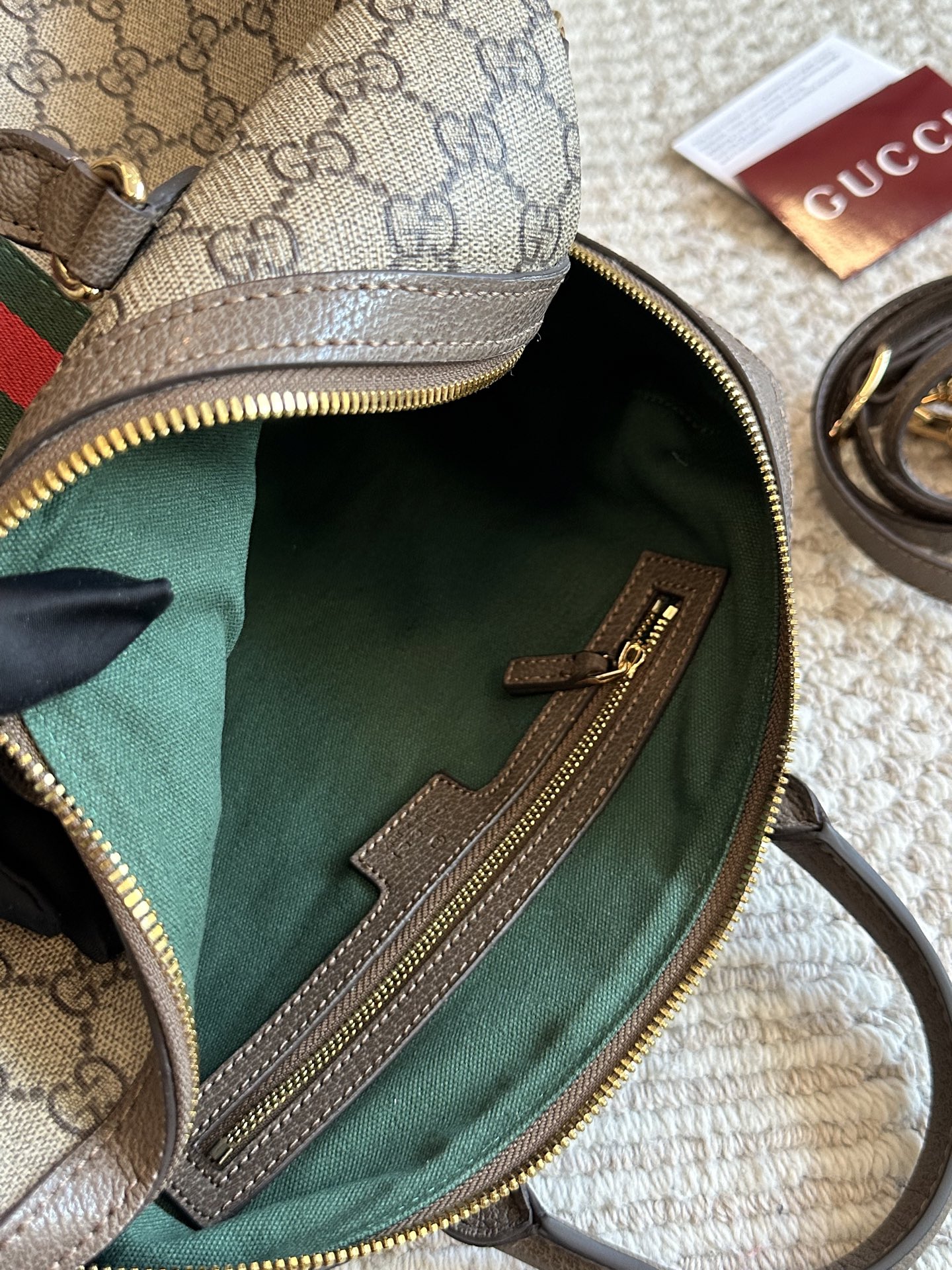DetailGucci Boston shines in its new collection. The collection reinterprets classic patterns with creative designs and innovative features, injecting a touch of timeless style into everyday looks. The iconic Super G logo is presented in a striking and meticulously crafted manner, complementing the zipper closure and wrist strap design.Crafted from black GG grain leather, black imported calfskin, a cotton-linen blend lining, and matching brass hardware, the collection boasts a refined texture and clear, high-quality grain.