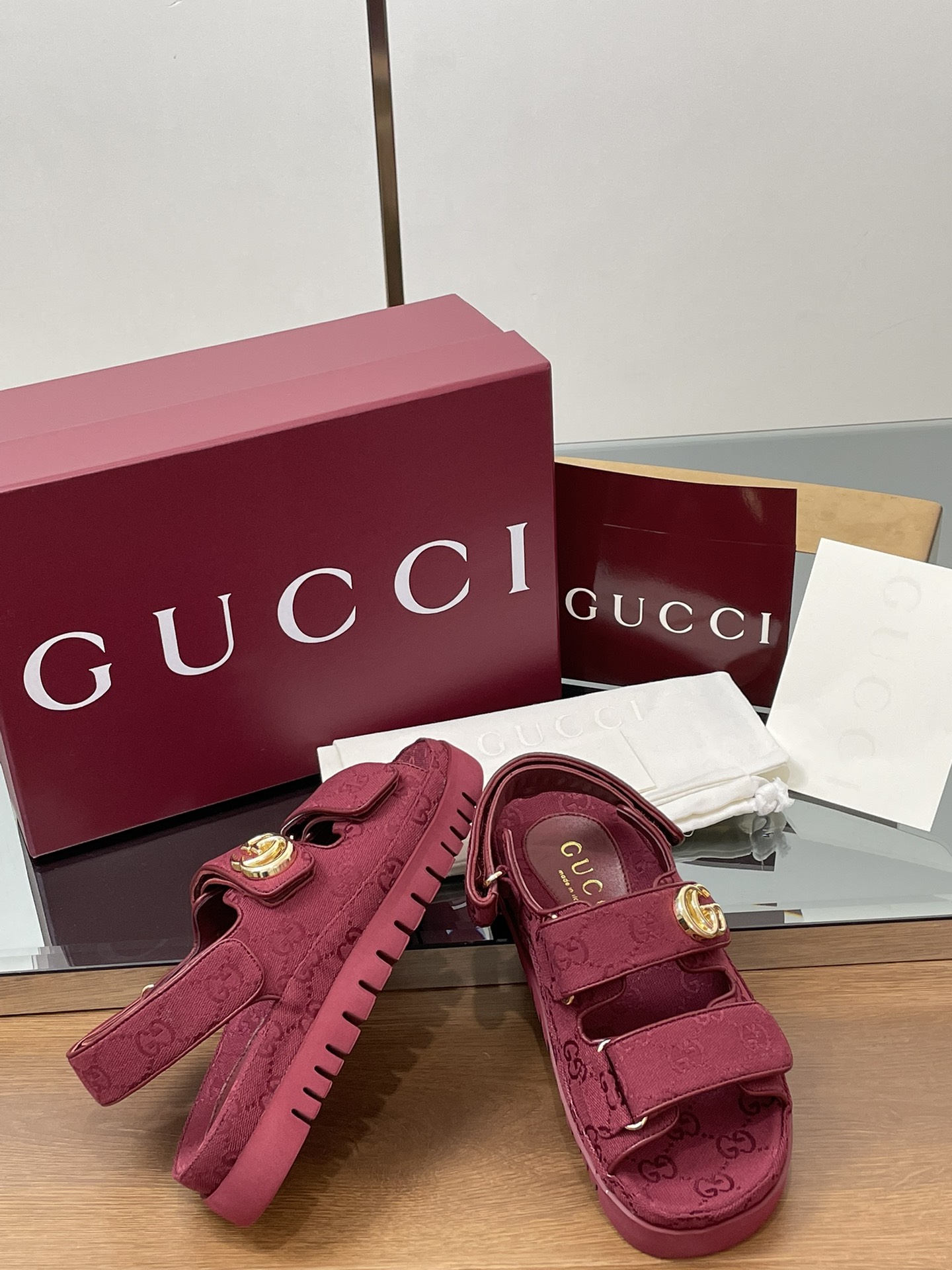 DetailGucci's modern design aesthetic explores a unique path of craftsmanship, skillfully blending classic brand elements with beloved logos. These sandals are adorned with the iconic double-G logo, adding a touch of understated brand charm that complements the versatile Velcro strap. 👏👏Material: Original custom-made imported GG monogram canvas + imported sheepskinLining/Insole: Imported sheepskin liningHeel: 2.0CM platform soleOutsole: Mold-molded imported rubber soleSize: Women's 35-42 (40-42 custom-made, no returns or exchanges)Packaging: Full set of original Anchor burgundy packaging
