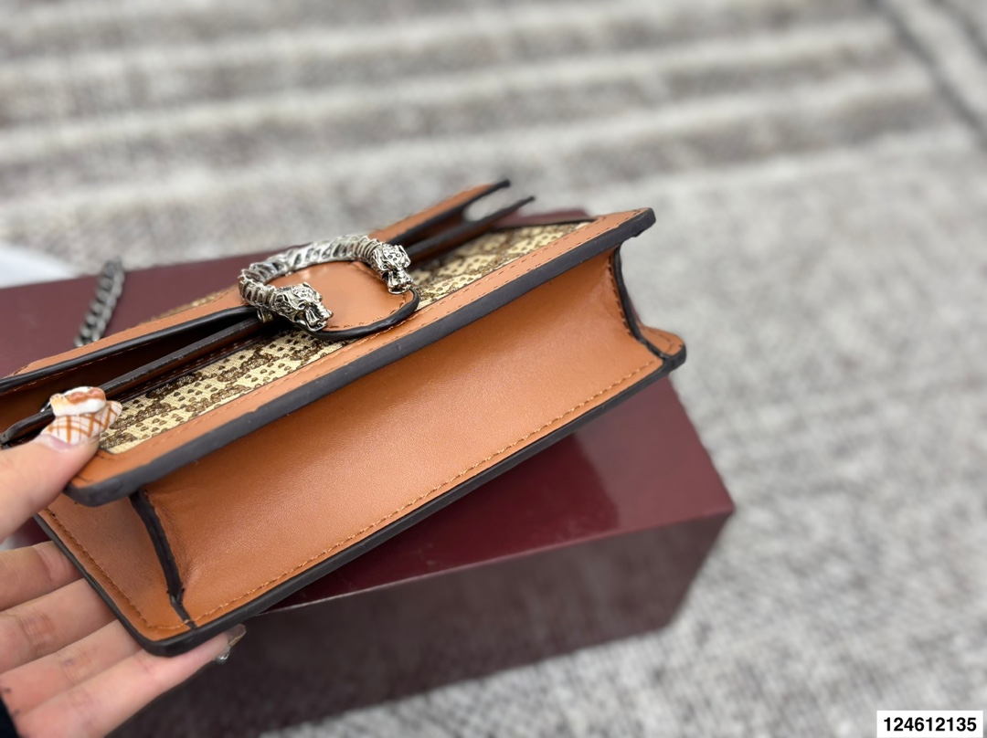 DetailThe Gucci Dionysus bag is a must-have for fashionistas.The Gucci patent leather design is truly versatile and suitable for all seasons.It can be worn in many ways: over the shoulder, crossbody, or carried by hand.It's sophisticated, versatile, and stylish with any outfit.It's small, exquisite, and adorable.