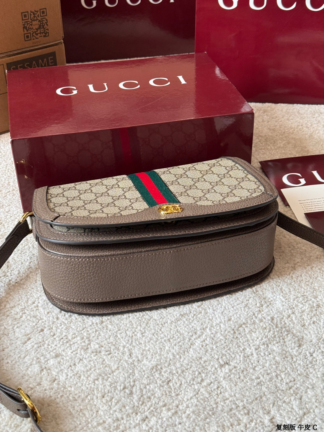 DetailThe Gucci Ophidia GG Saddle Bag. Made with classic GG Supreme canvas and brown leather trim, accented with green and red webbing, it exudes a vintage charm. Measuring 25x18x9cm, it offers a moderate capacity, suitable for everyday commuting or casual wear. The adjustable shoulder strap allows for both shoulder and crossbody wear, making it versatile. Inspired by a 1955 equestrian bag, it combines practicality and collectability, a popular piece from Gucci's classic collection, and a must-have for fashionistas!