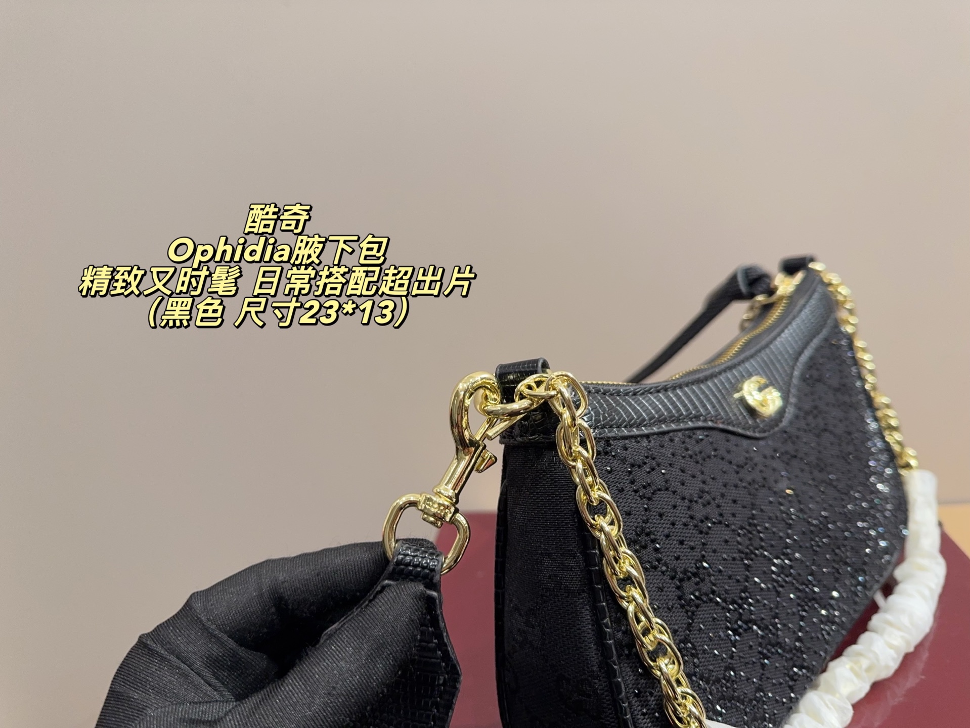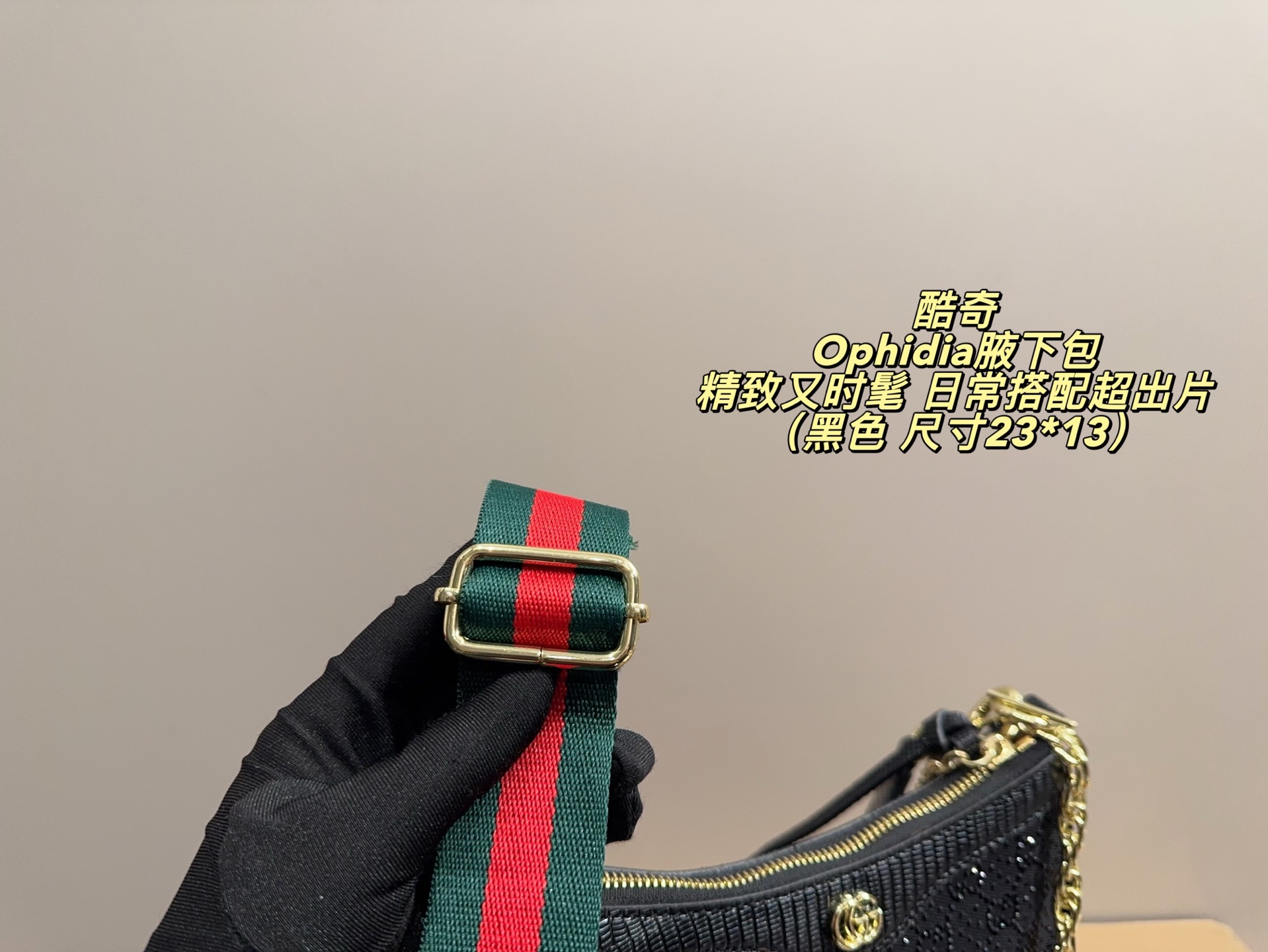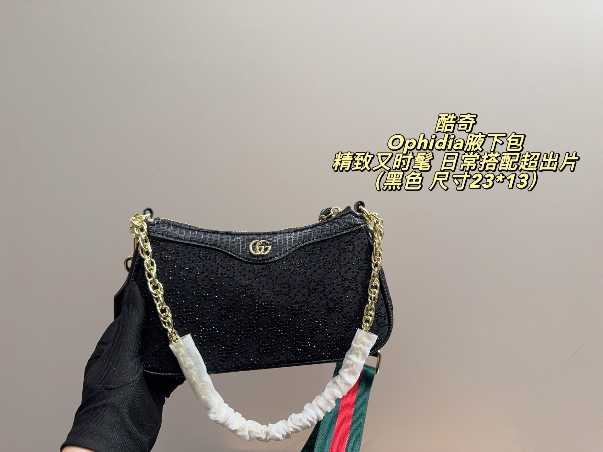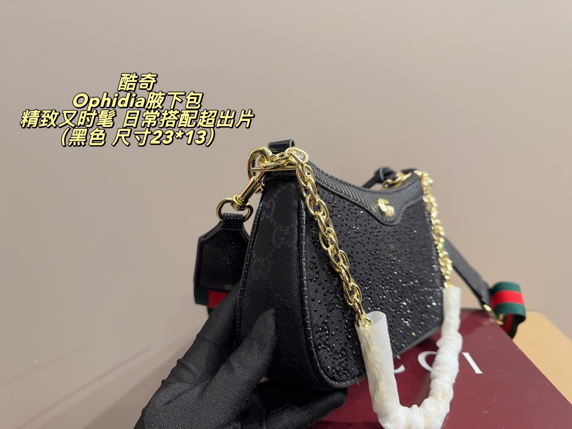 DetailClassic GG Supreme canvas with black leather trim and a highly recognizable gold double G logo! The perfect size, easily fitting a phone and lipstick. The adjustable shoulder strap allows for underarm or crossbody wear, making it suitable for both work and casual occasions. Adorned with colorful crystals, the bag is sophisticated and stylish, perfect for everyday wear.
