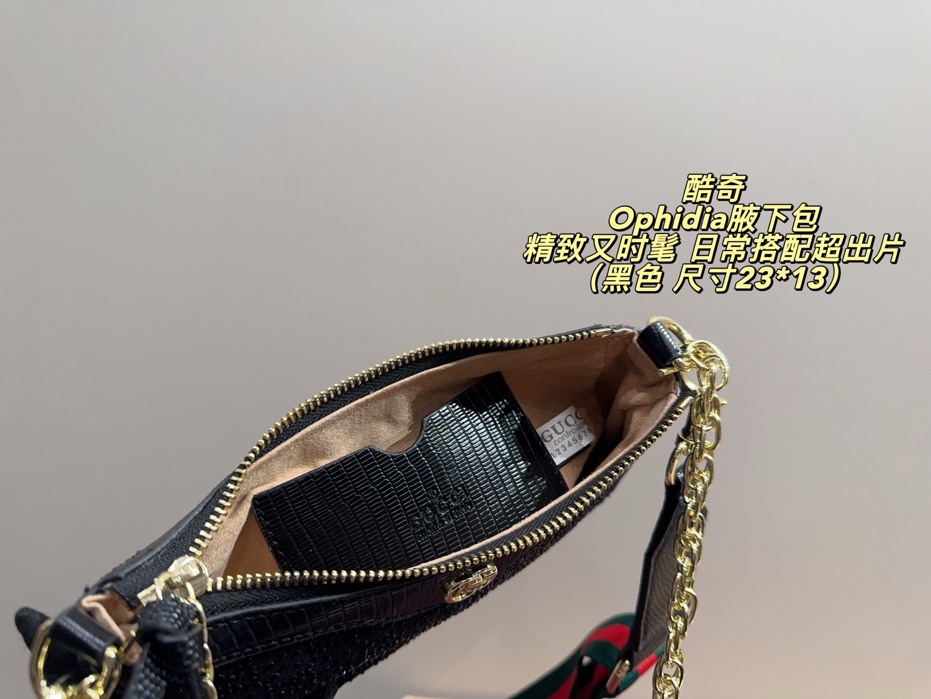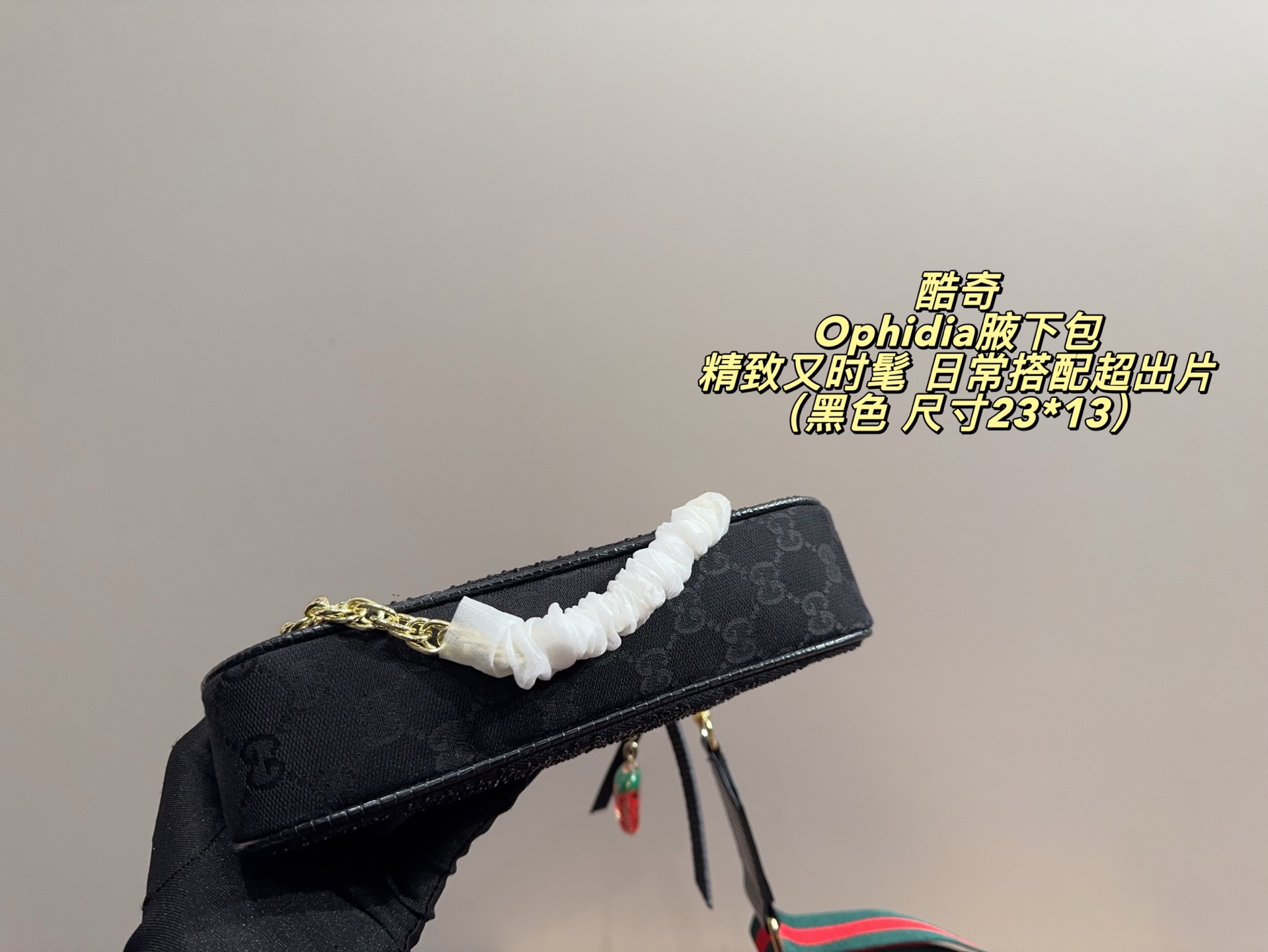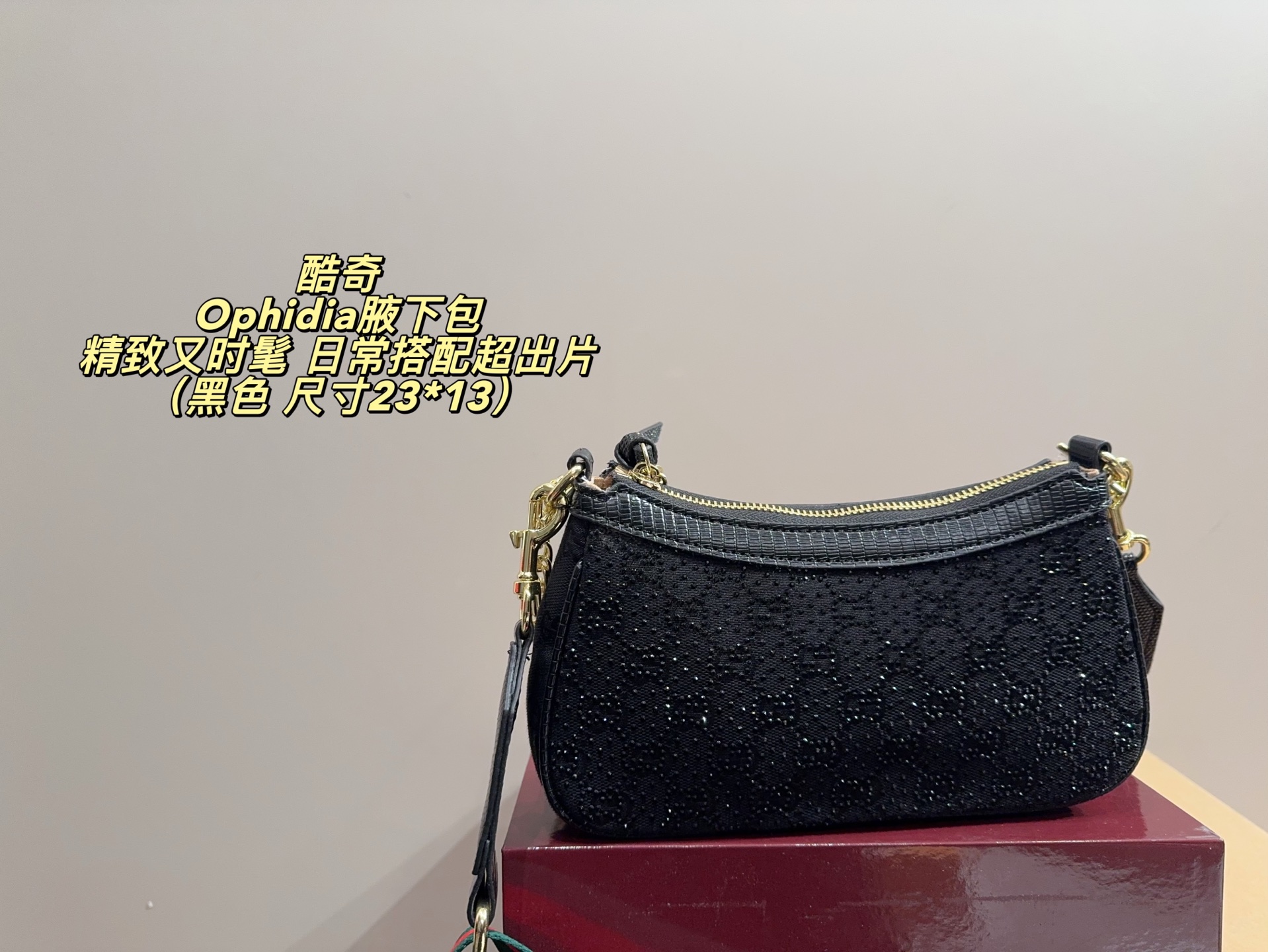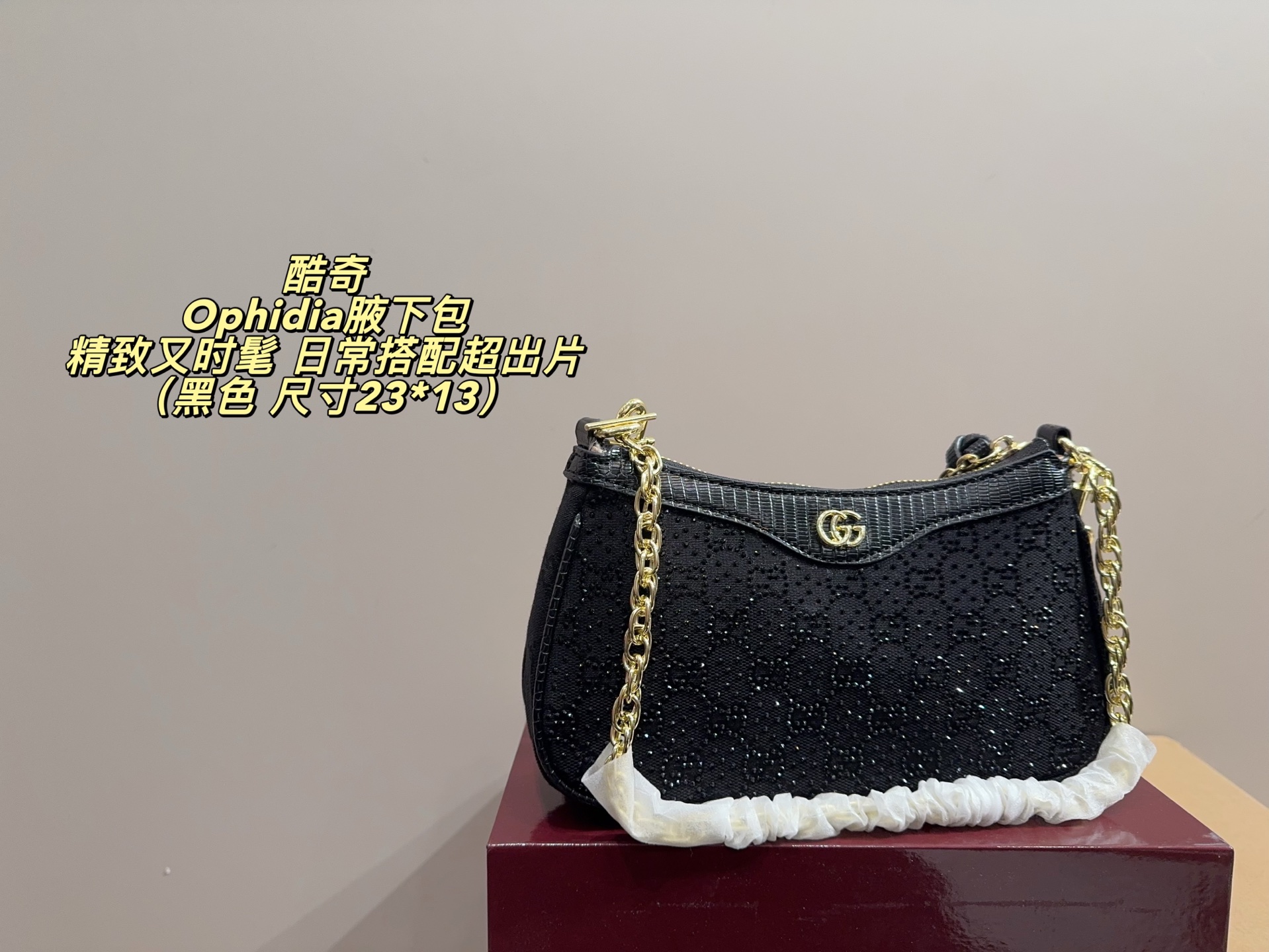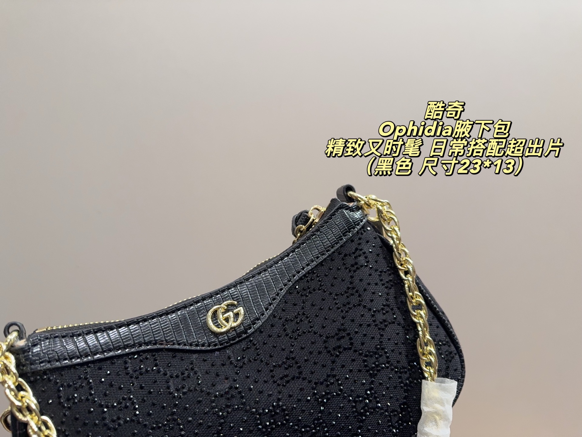DetailClassic GG Supreme canvas with black leather trim and a highly recognizable gold double G logo! The perfect size, easily fitting a phone and lipstick. The adjustable shoulder strap allows for underarm or crossbody wear, making it suitable for both work and casual occasions. Adorned with colorful crystals, the bag is sophisticated and stylish, perfect for everyday wear.