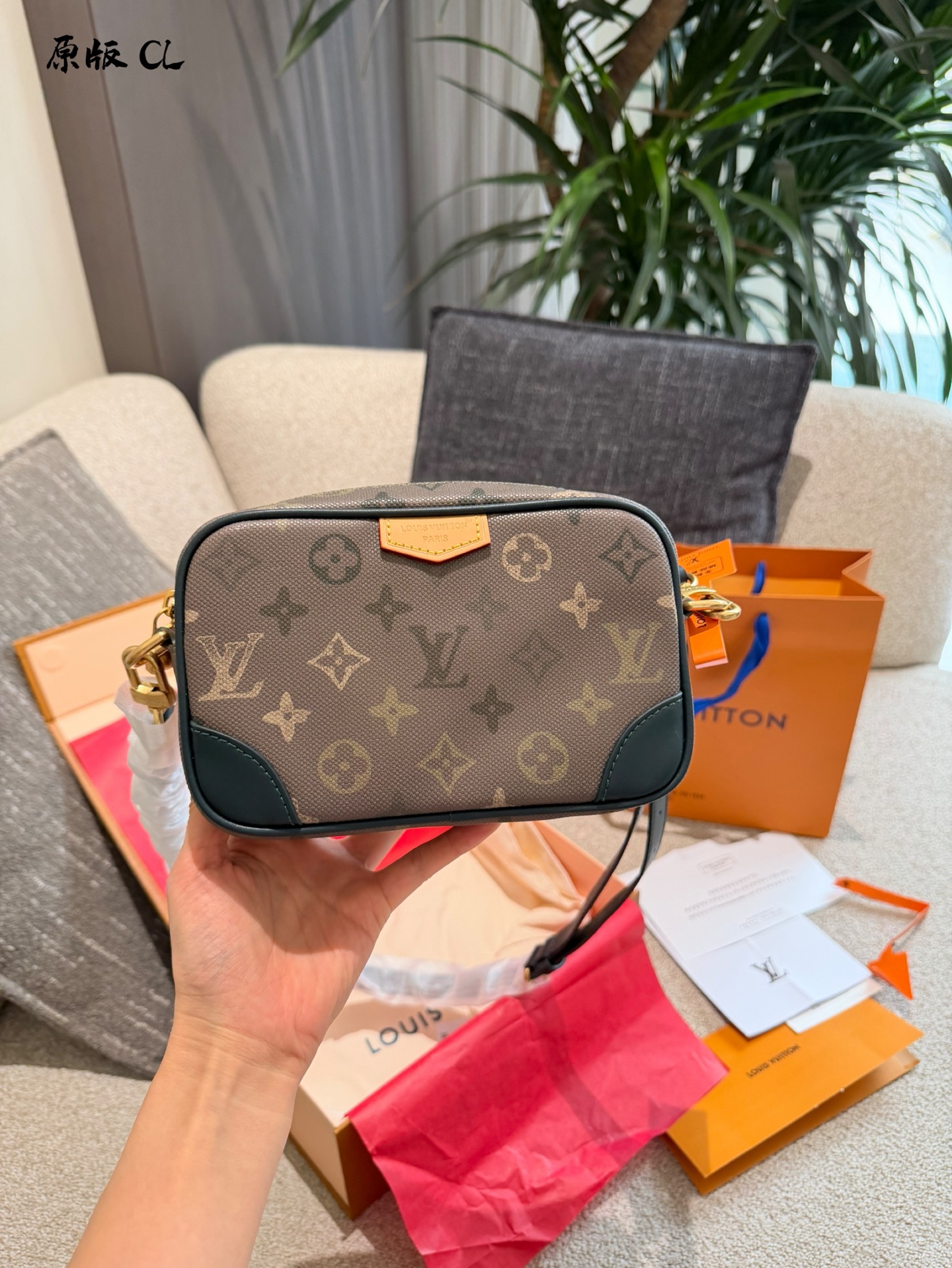 New LV camouflage camera bag. Black floral pattern, compact and stylish, perfect for everyday use. Dimensions: 20x6.5x13cm. Made of classic Monogram canvas with vintage calfskin trim.