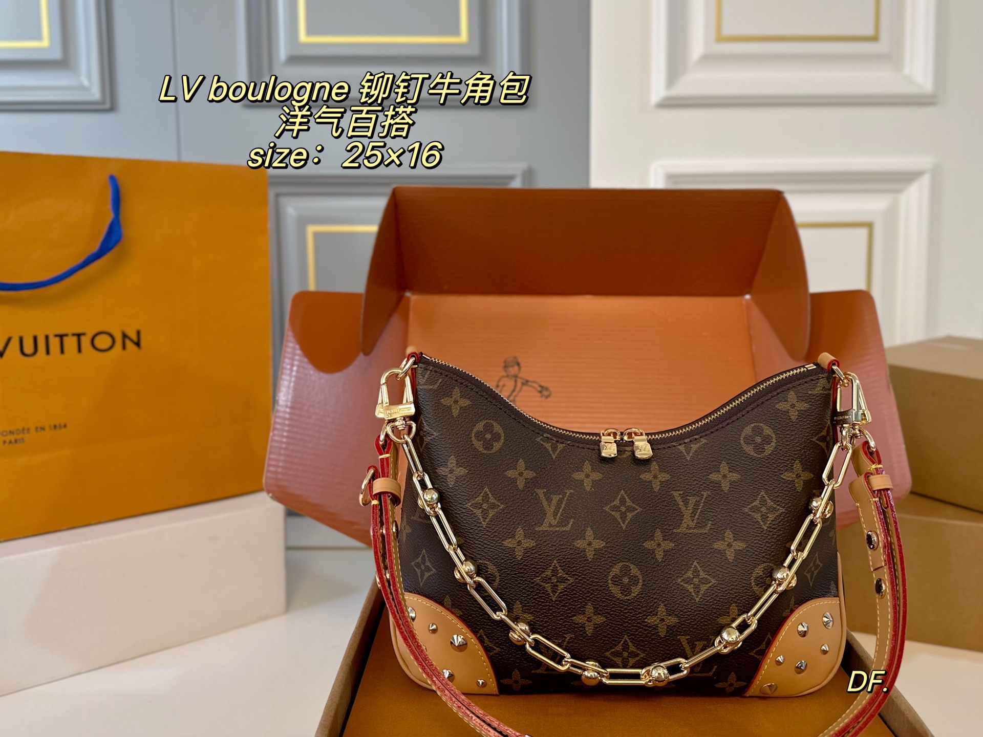 LV Boulogne Studded Vintage Croissant Bag