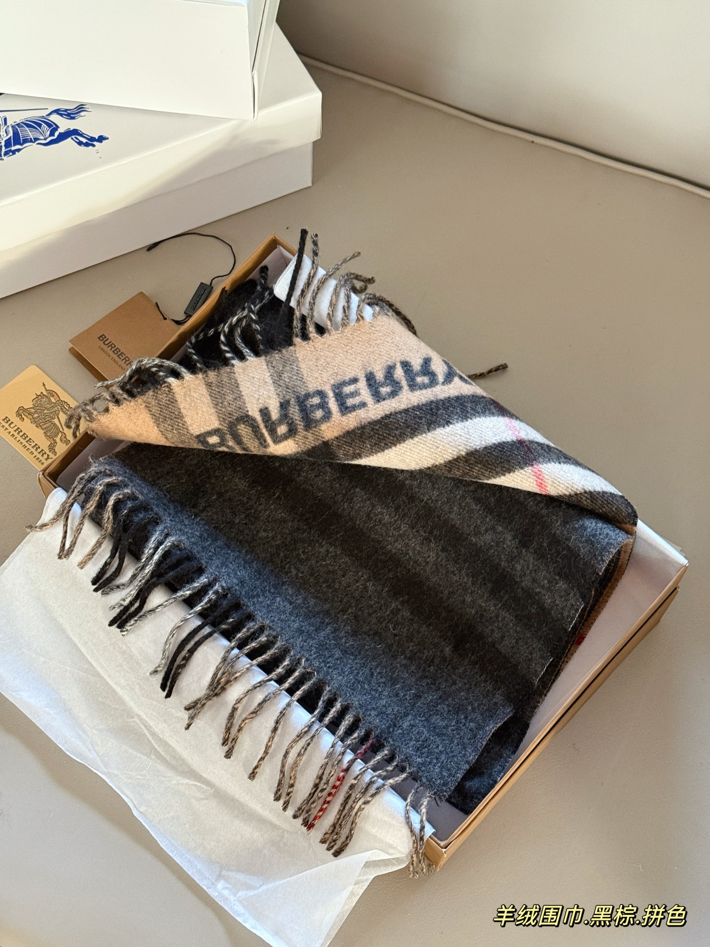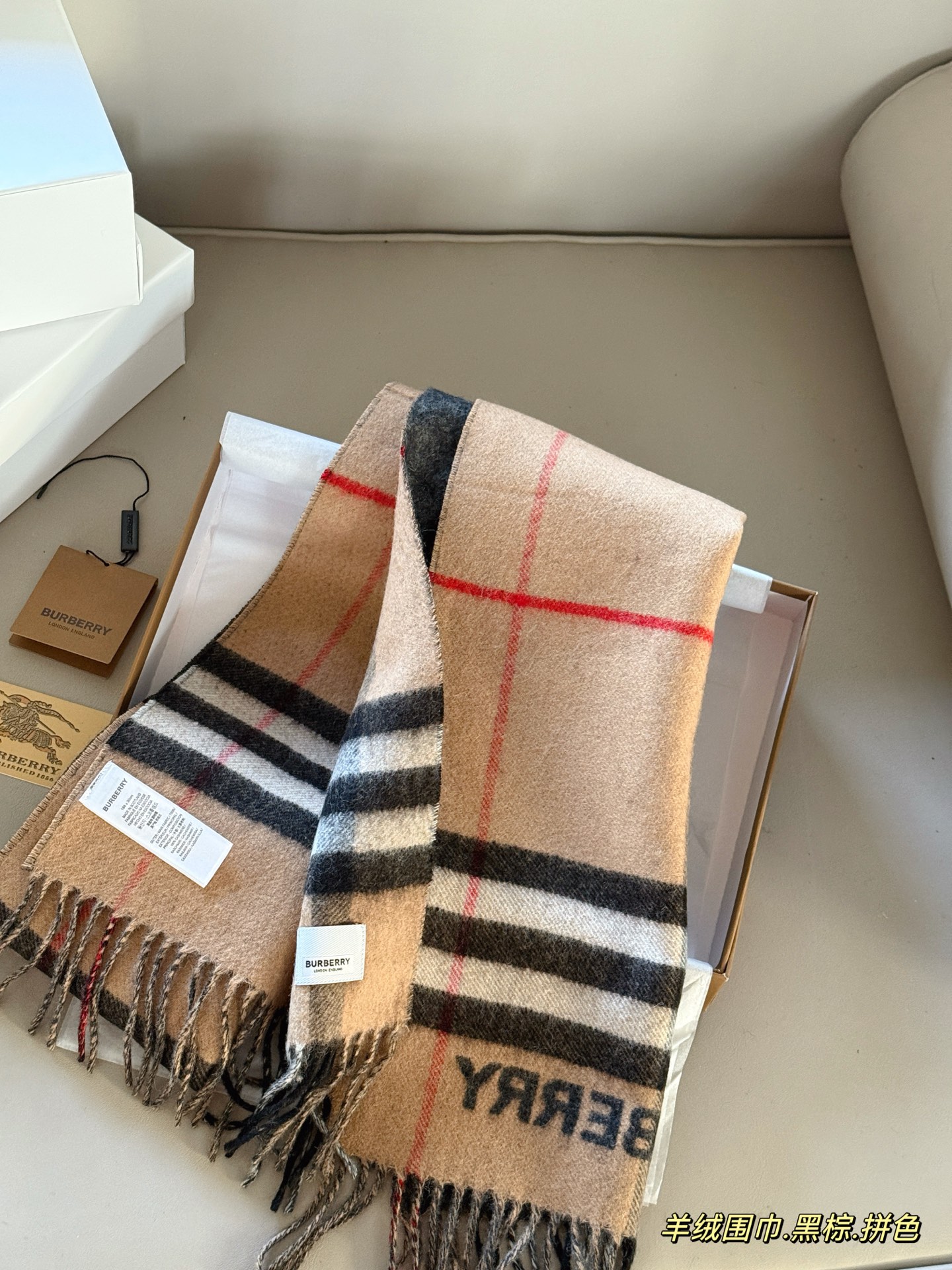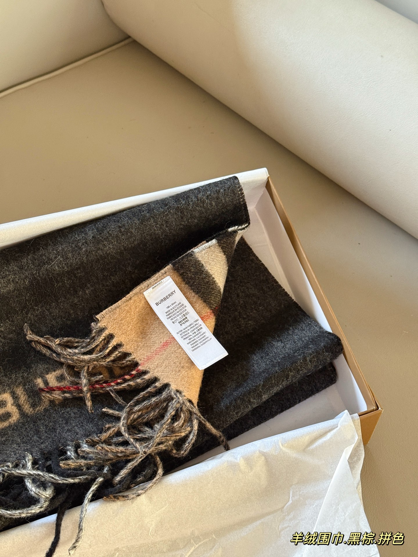 DetailBurberry double-faced cashmere scarf. Visible short wool. High-quality materials, naturally high quality! You'll know it the moment you get it. My first scarf of fall!! I want both the warmth and texture of Burberry!
