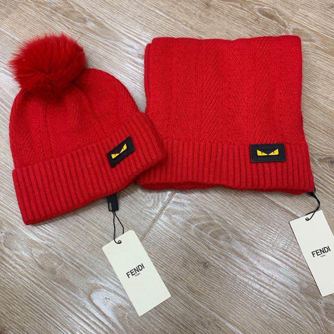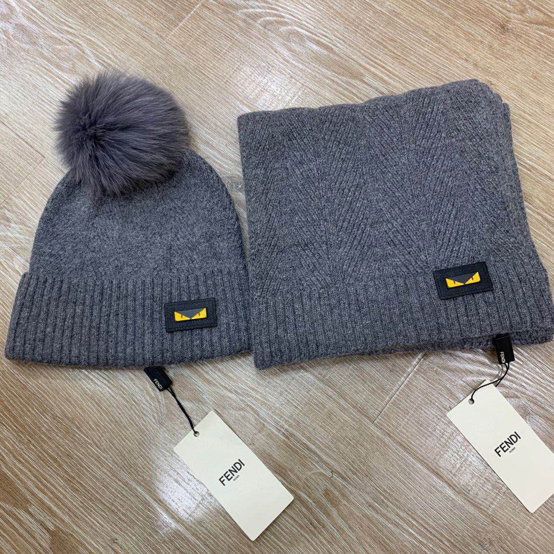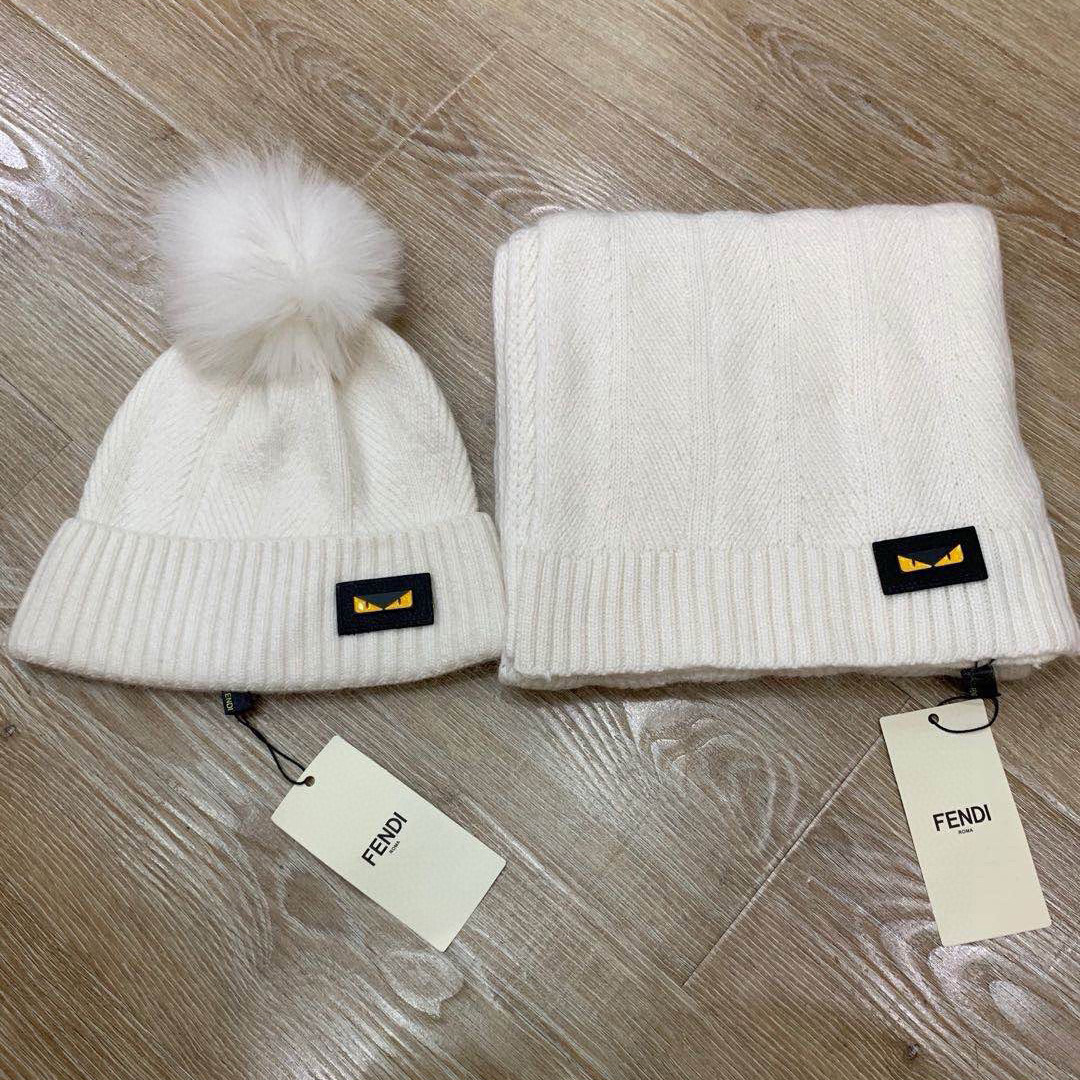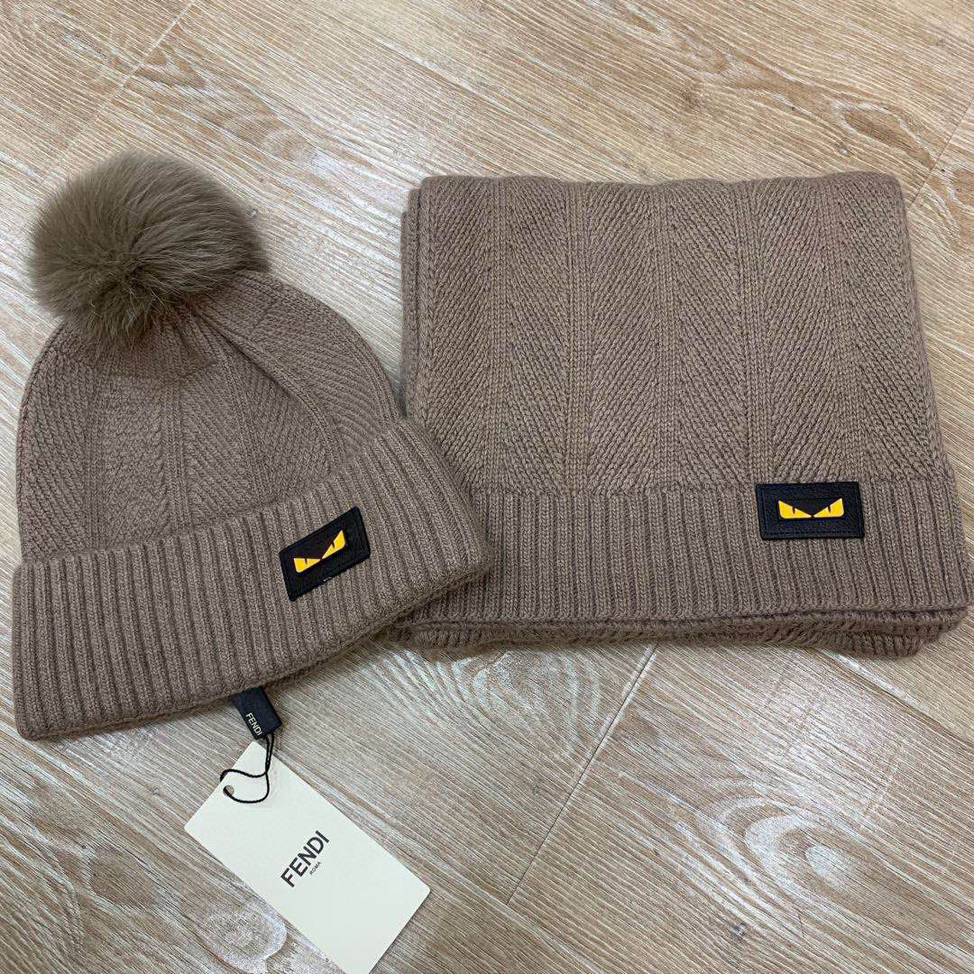 Fendi Hat+Scarf set Rabbit velvet fabric