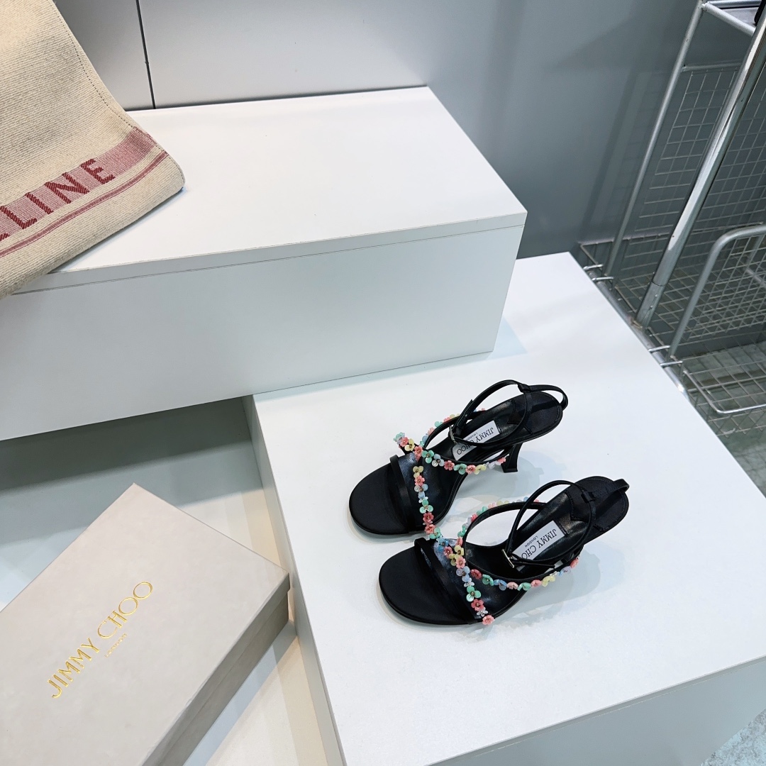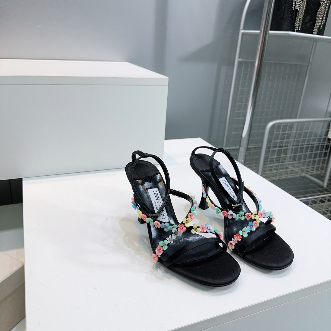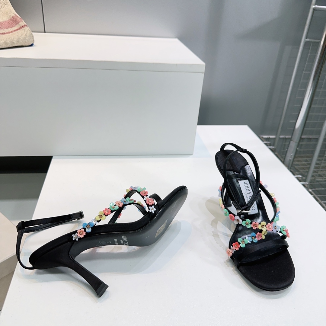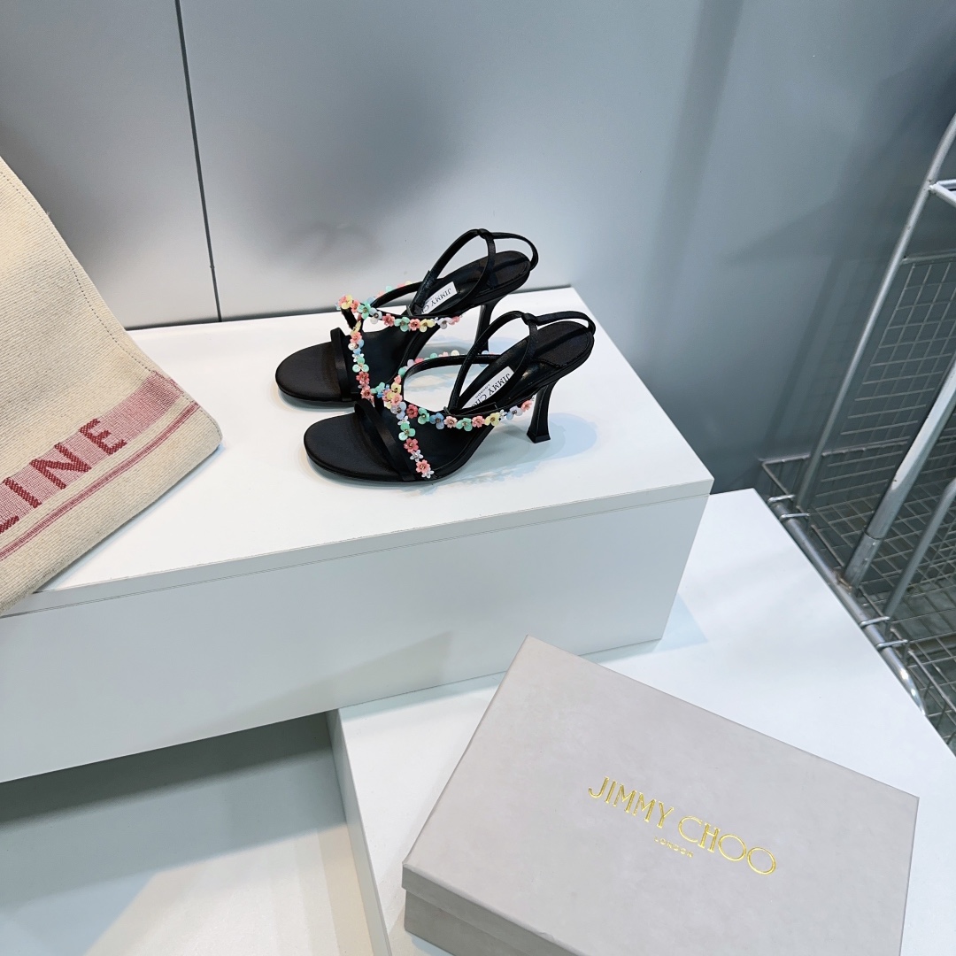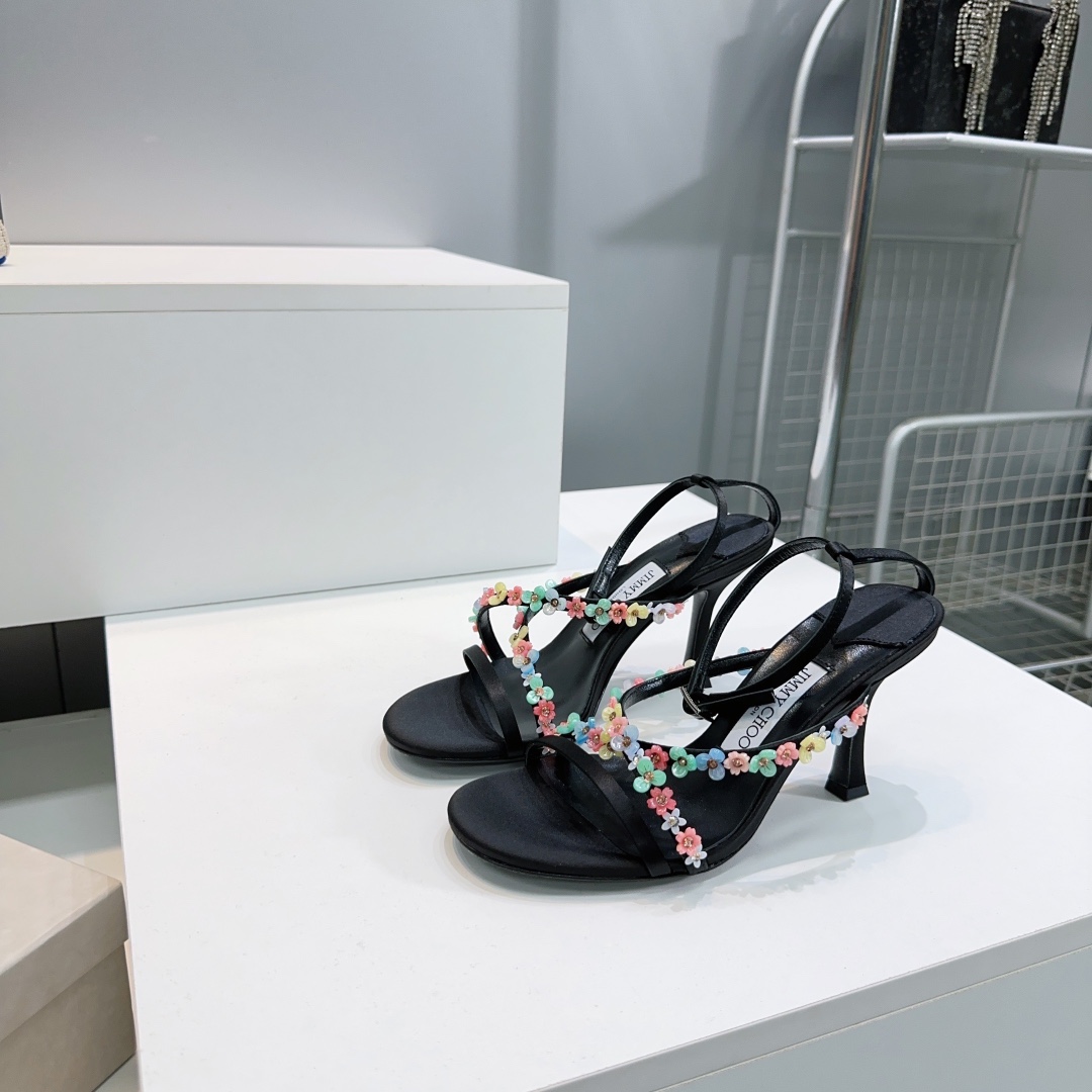 Jimmy Choo's colorful floral high-heeled sandals are top-notch quality