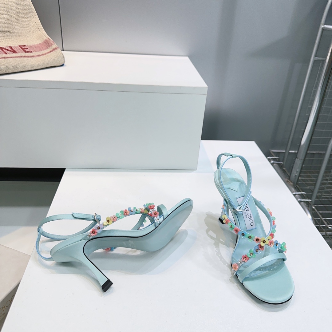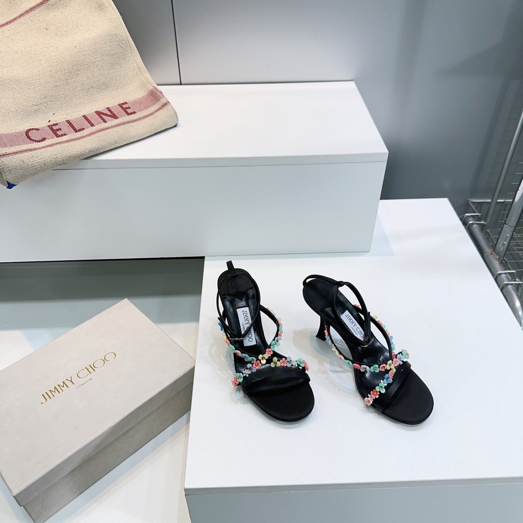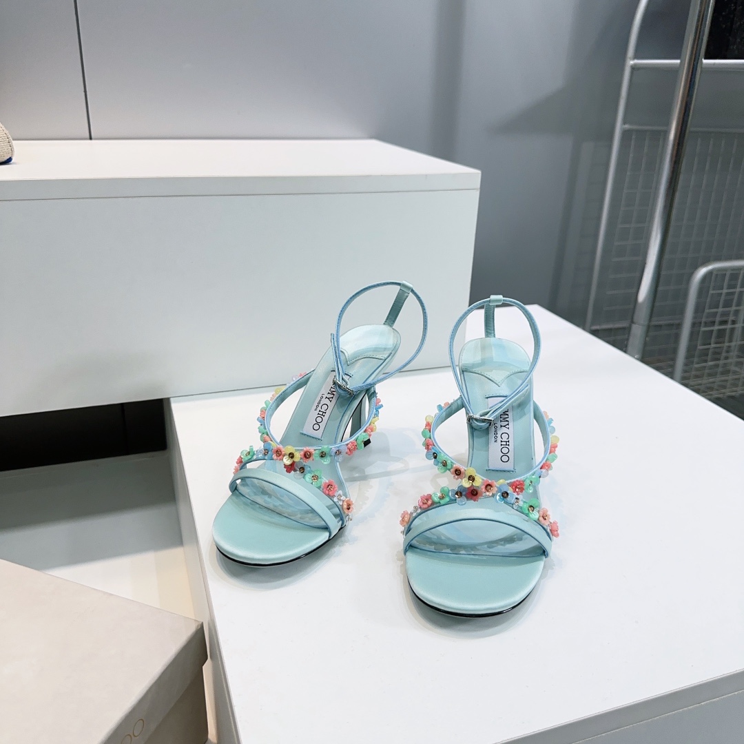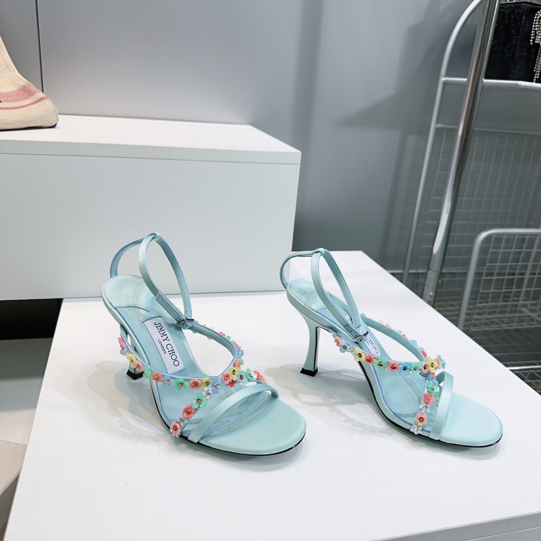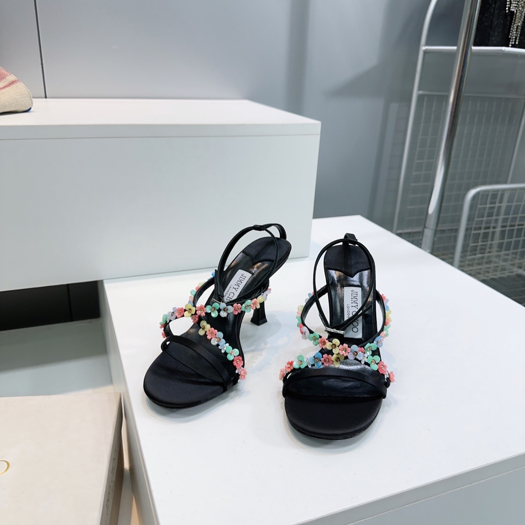 Jimmy Choo's colorful floral high-heeled sandals are top-notch quality