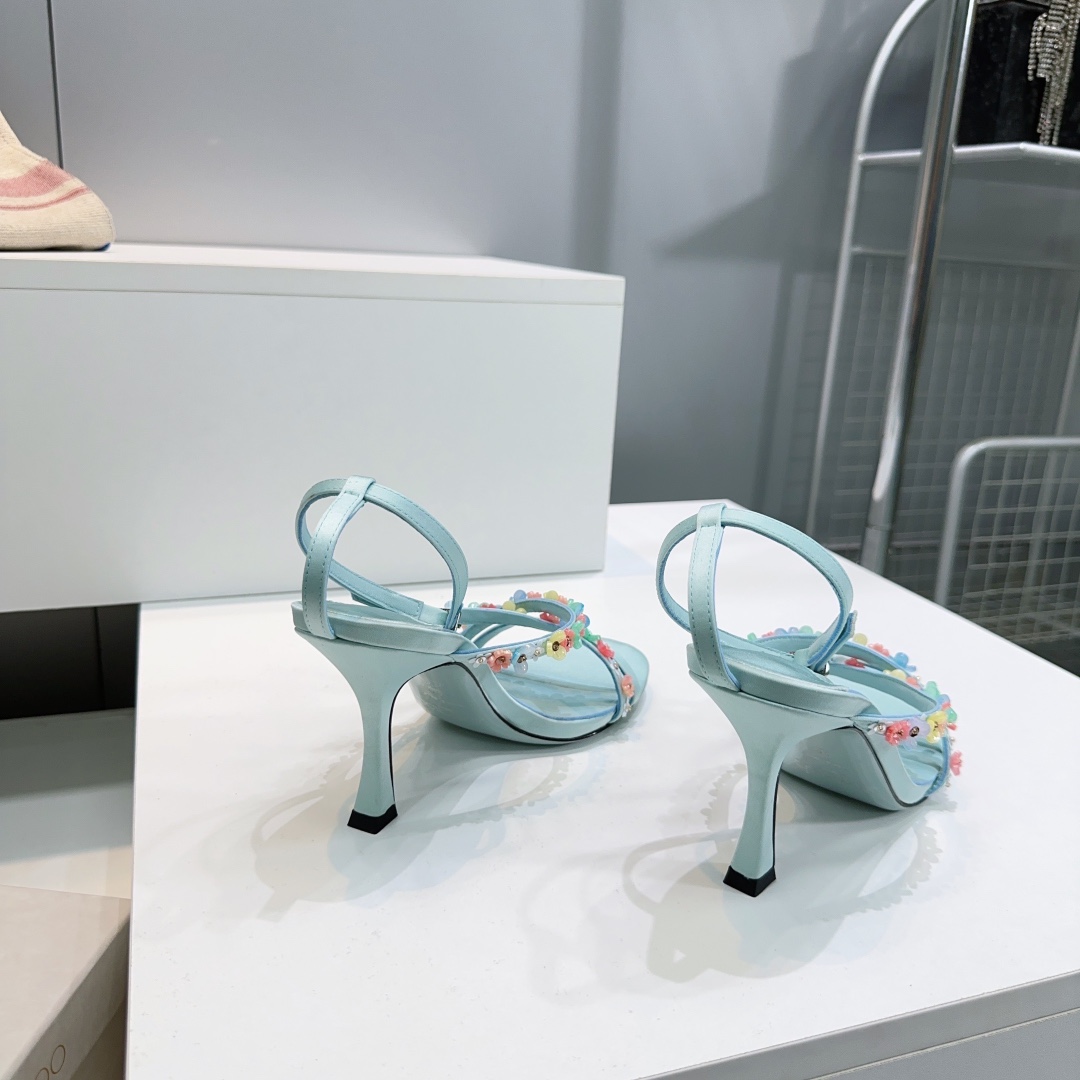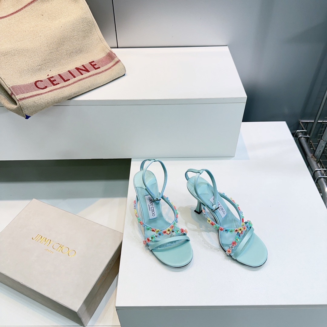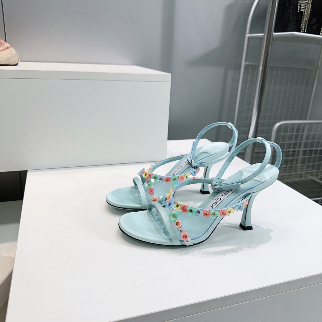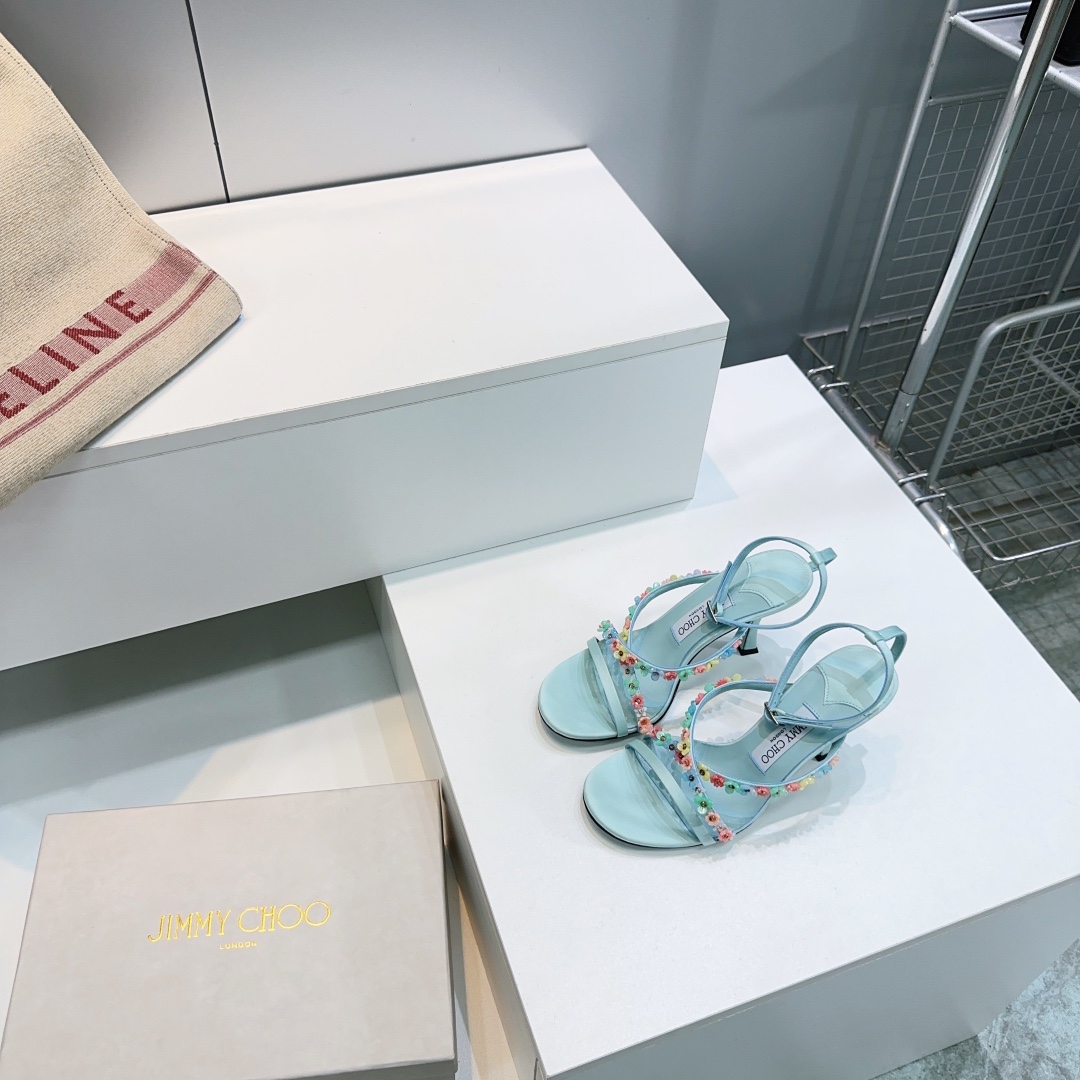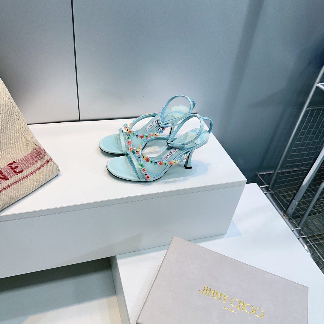 Jimmy Choo's colorful floral high-heeled sandals are top-notch quality