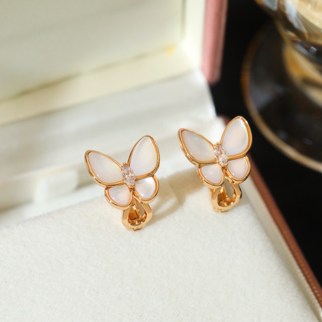 DetailThe Two Butterfly jewelry collection reinterprets a beloved theme of the Maison. These dazzling and captivating pieces combine color to reinterpret the beauty of butterflies in flight. This classic jewelry-grade design is stunning! ❗️ The shimmering mother-of-pearl 😍 This imported buoyant mother-of-pearl features staggered layers, creating a striking three-dimensional effect. ❗️ It's visually striking. ❗️ Even from a distance, it shines brightly and translucently. ❗️