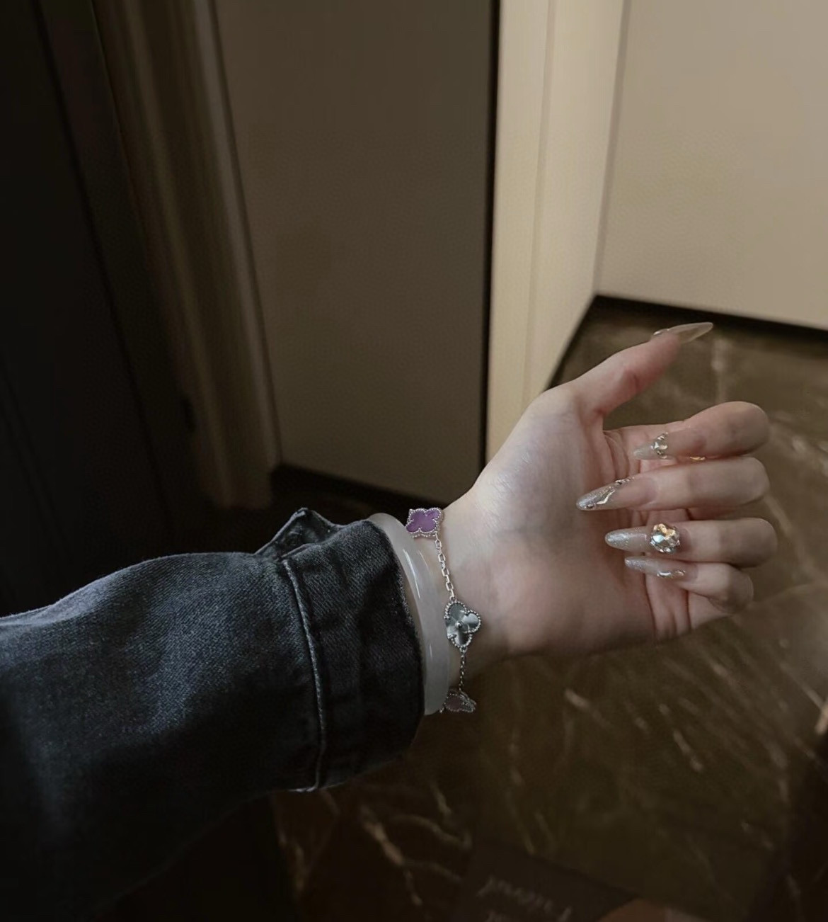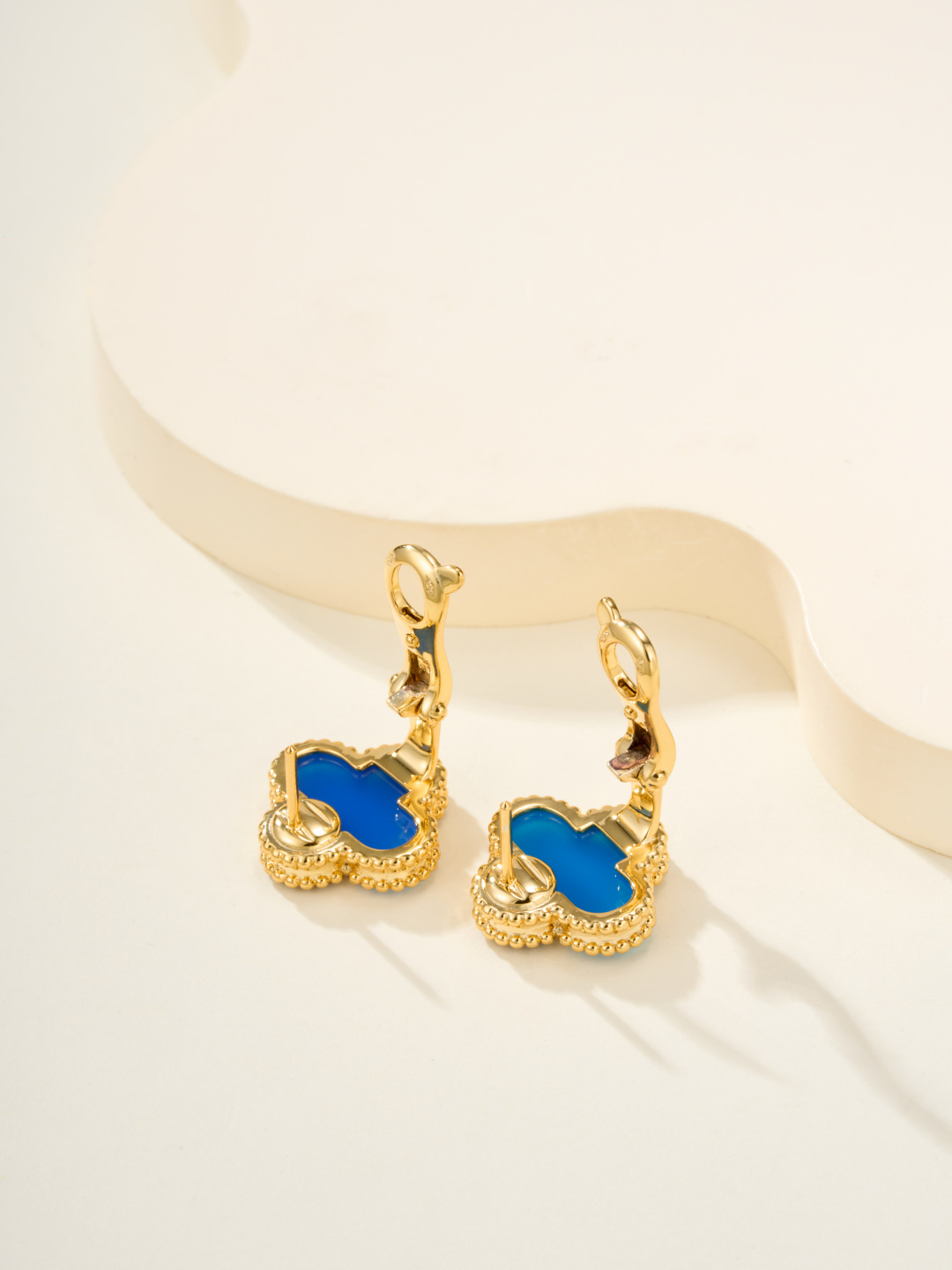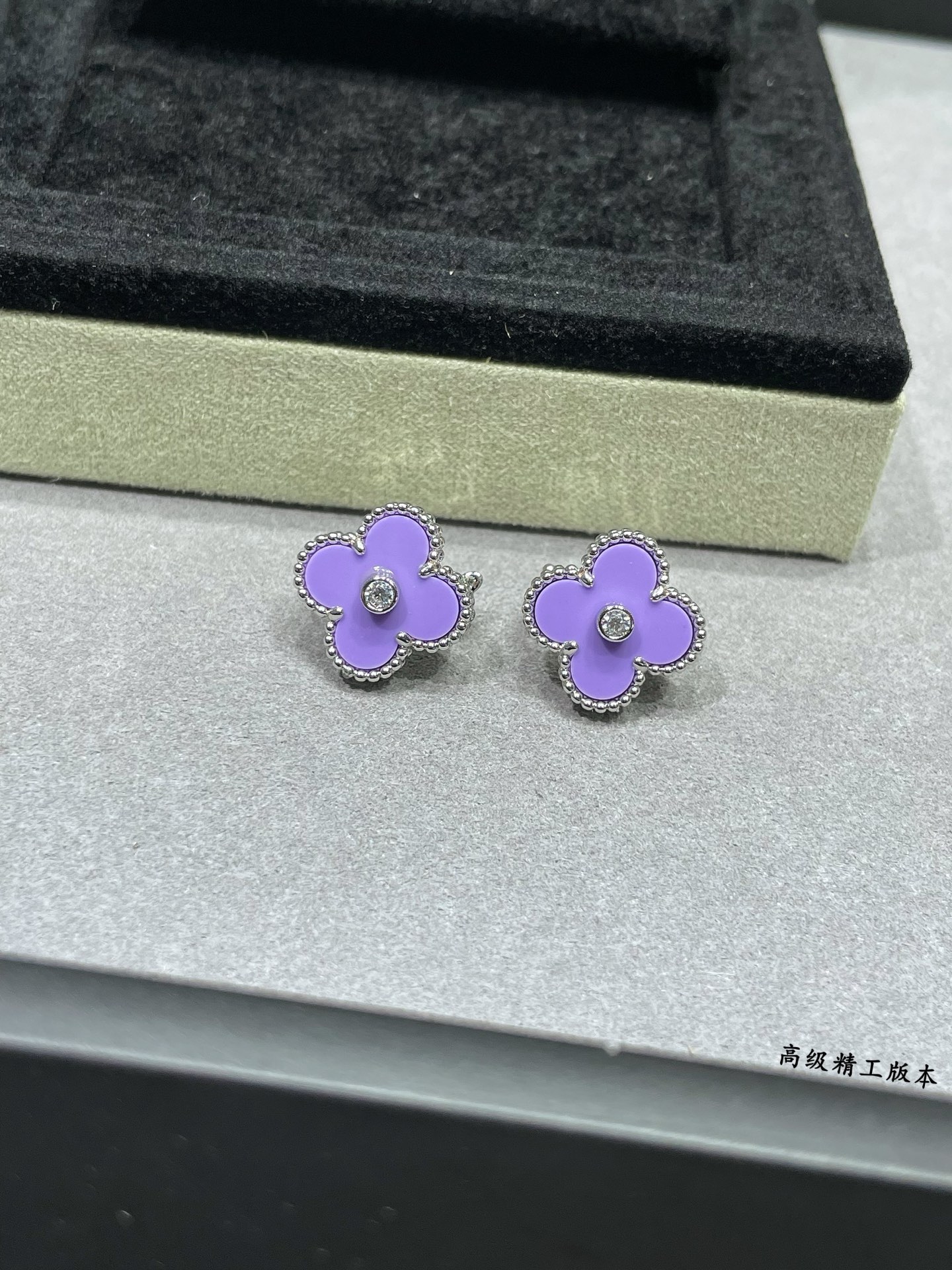 Van Cleef & Arpels Purple Chalcedony and Diamond Four-Leaf Clover Earrings