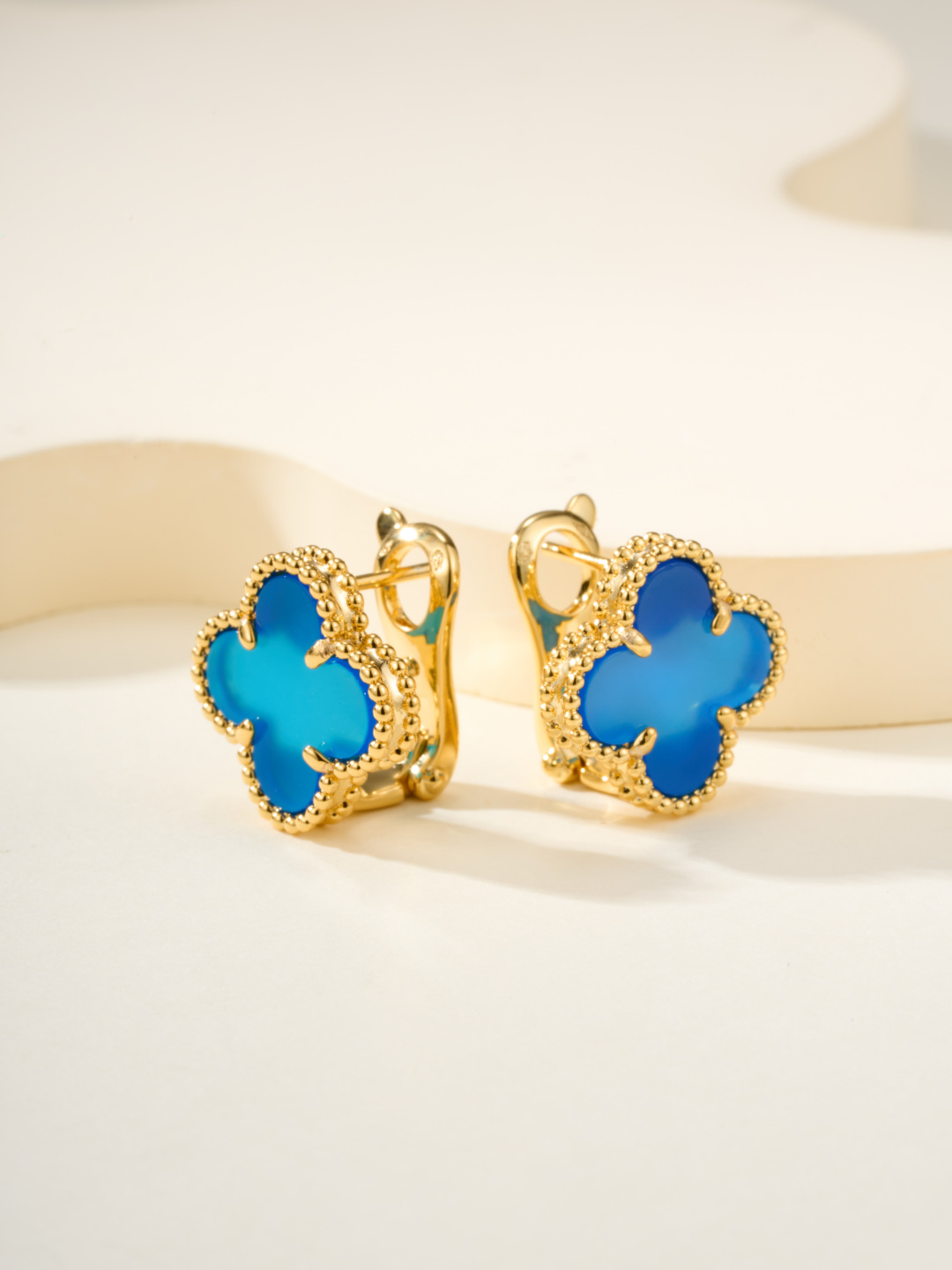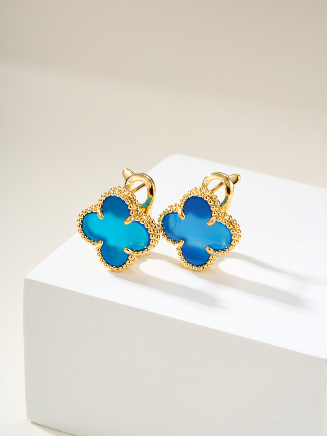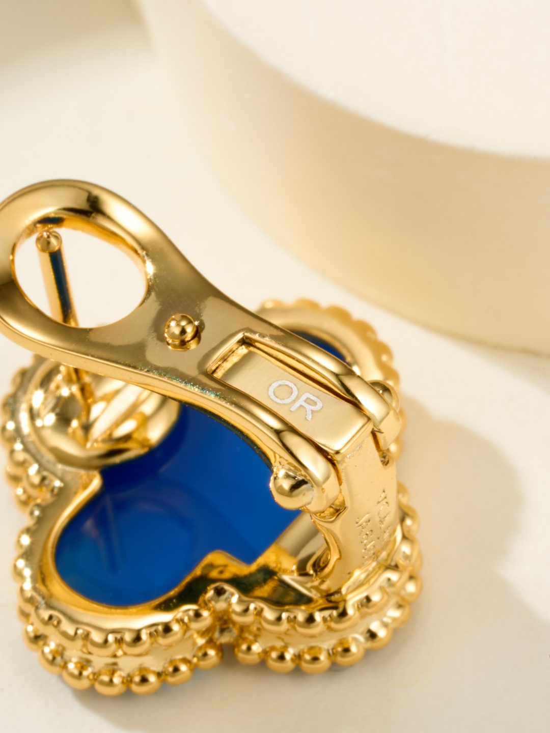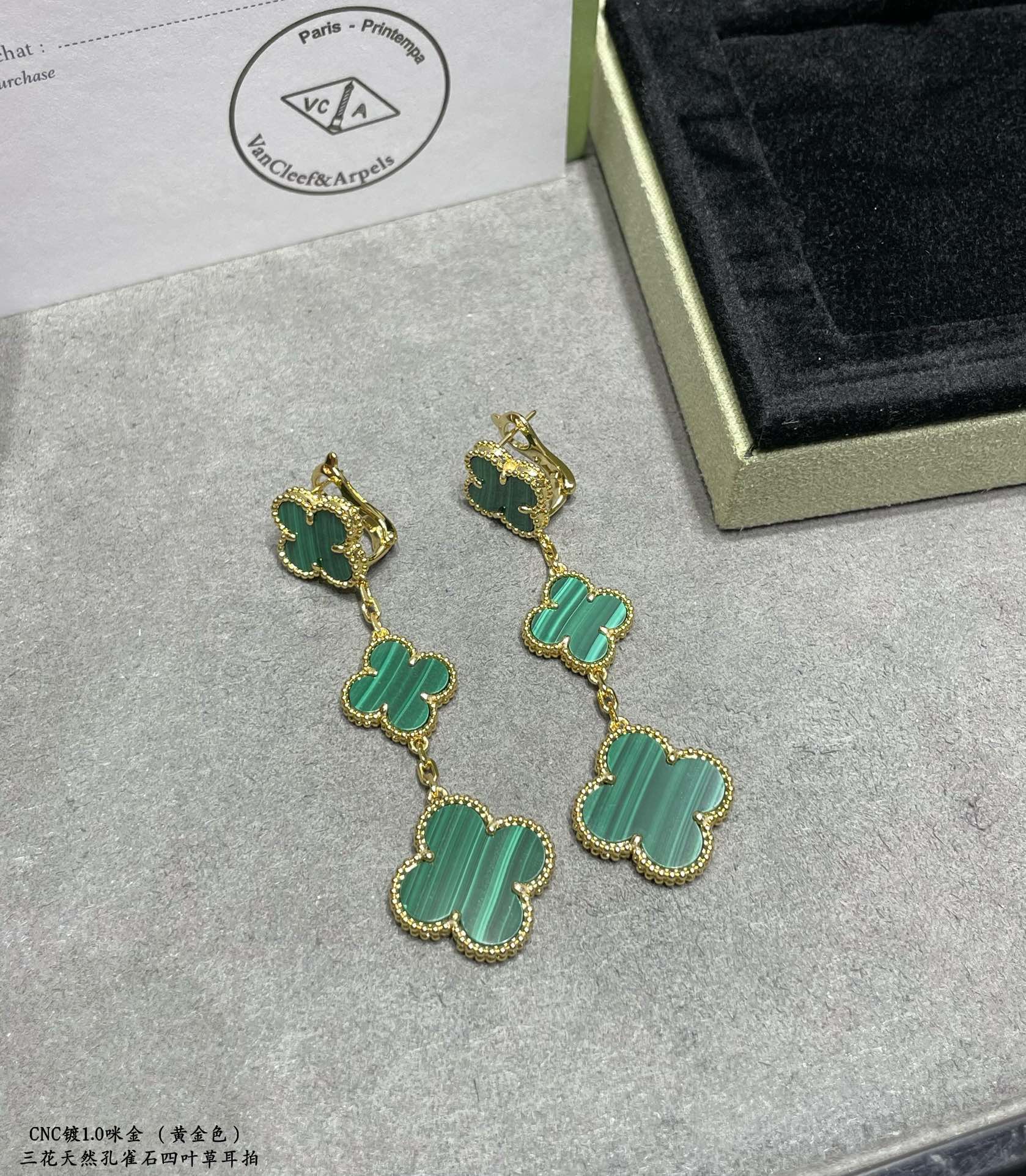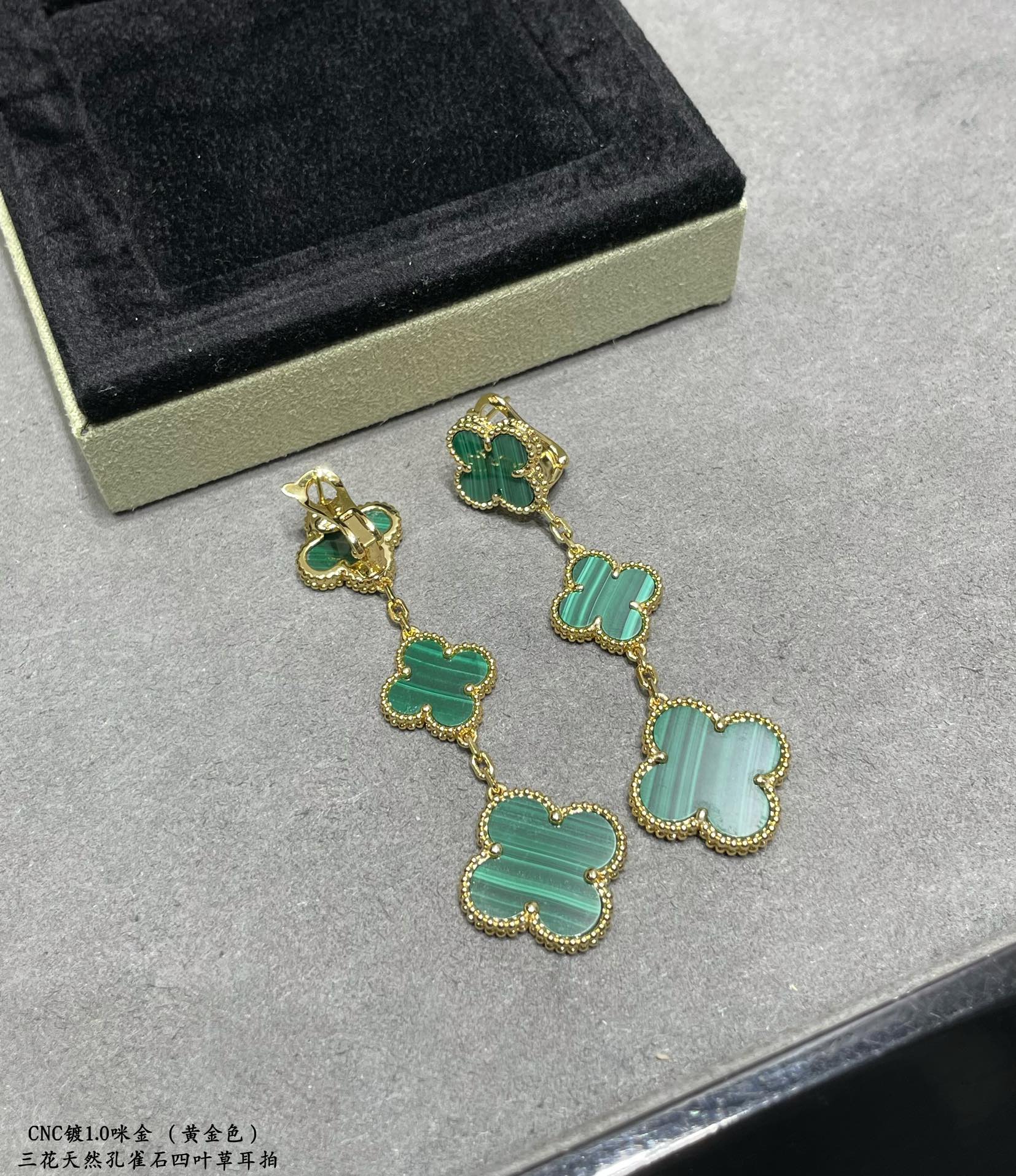 Van Cleef & Arpels four-leaf clover natural malachite three-flower earrings
