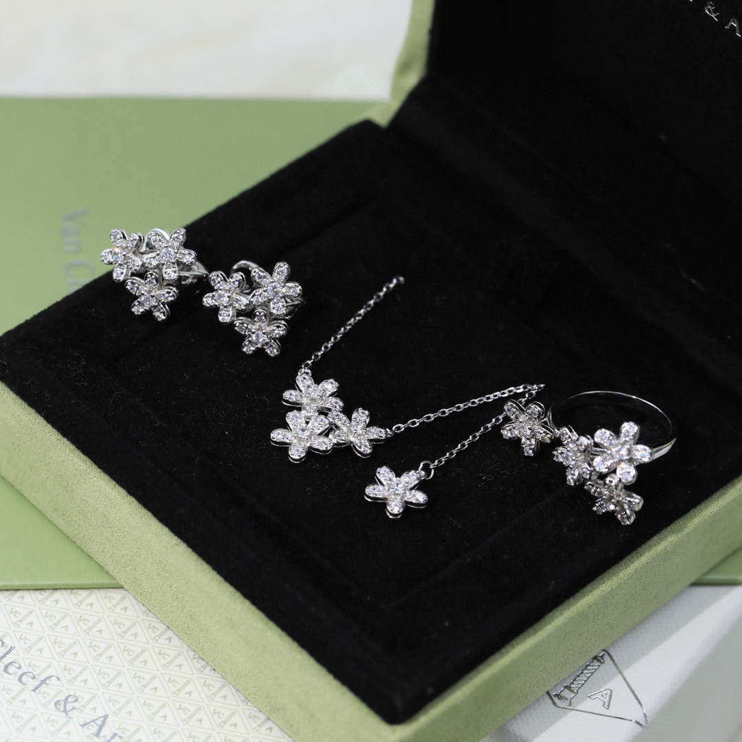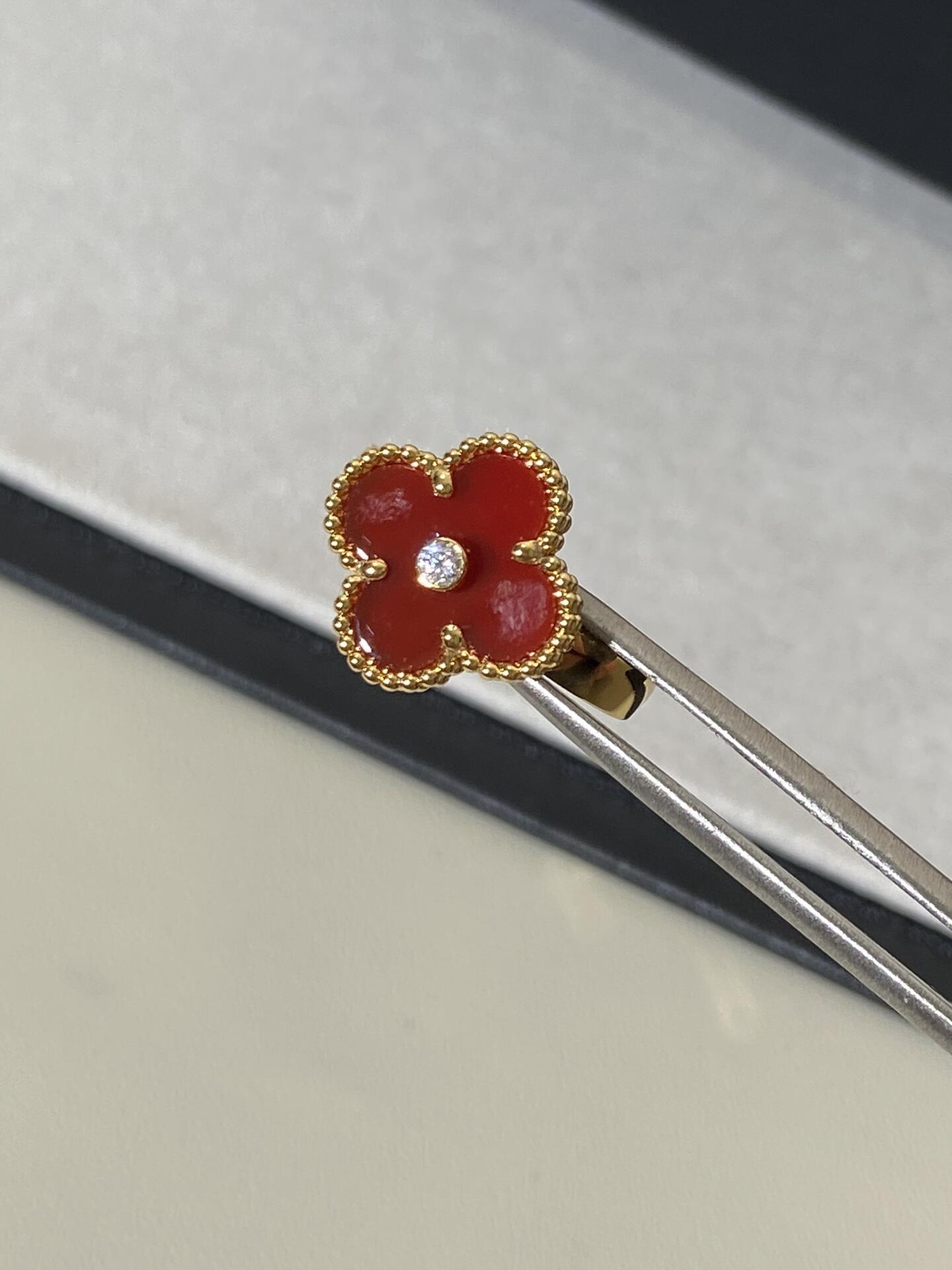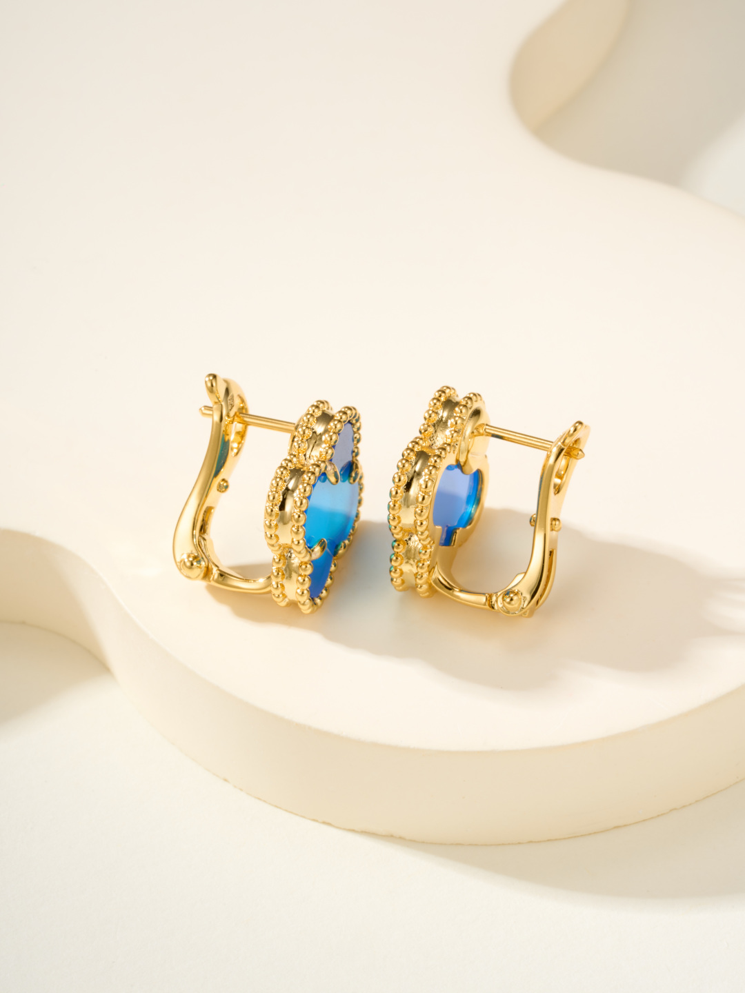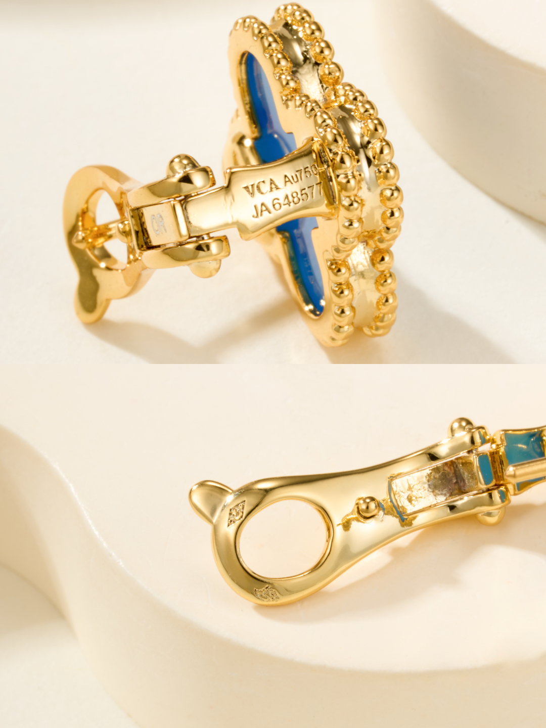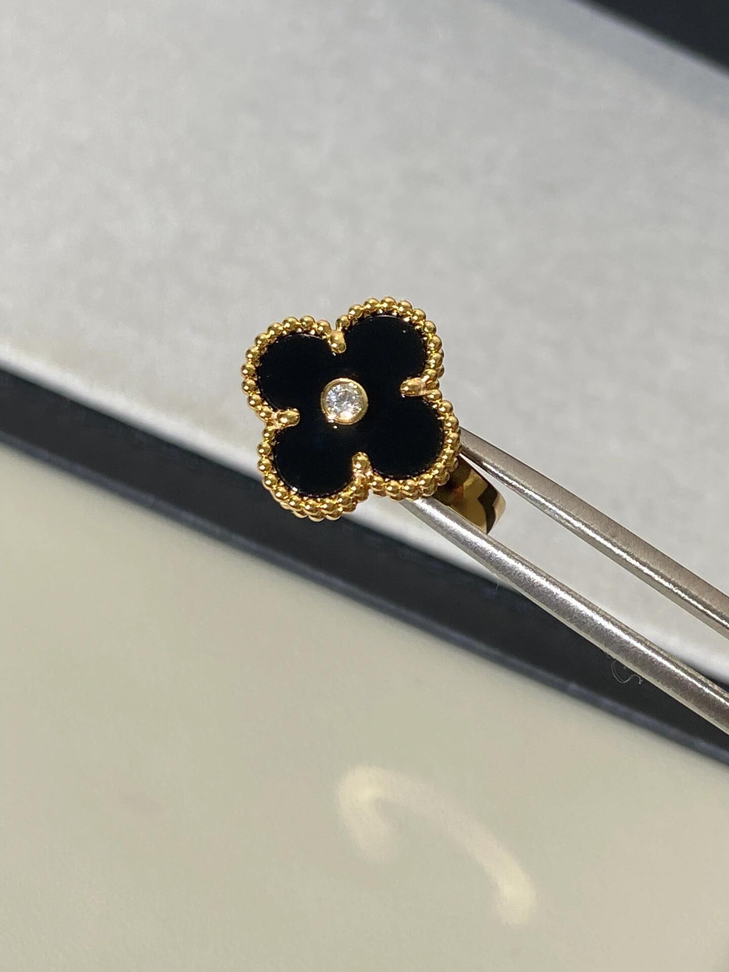 Van Cleef & Arpels four-leaf clover natural malachite three-flower earrings