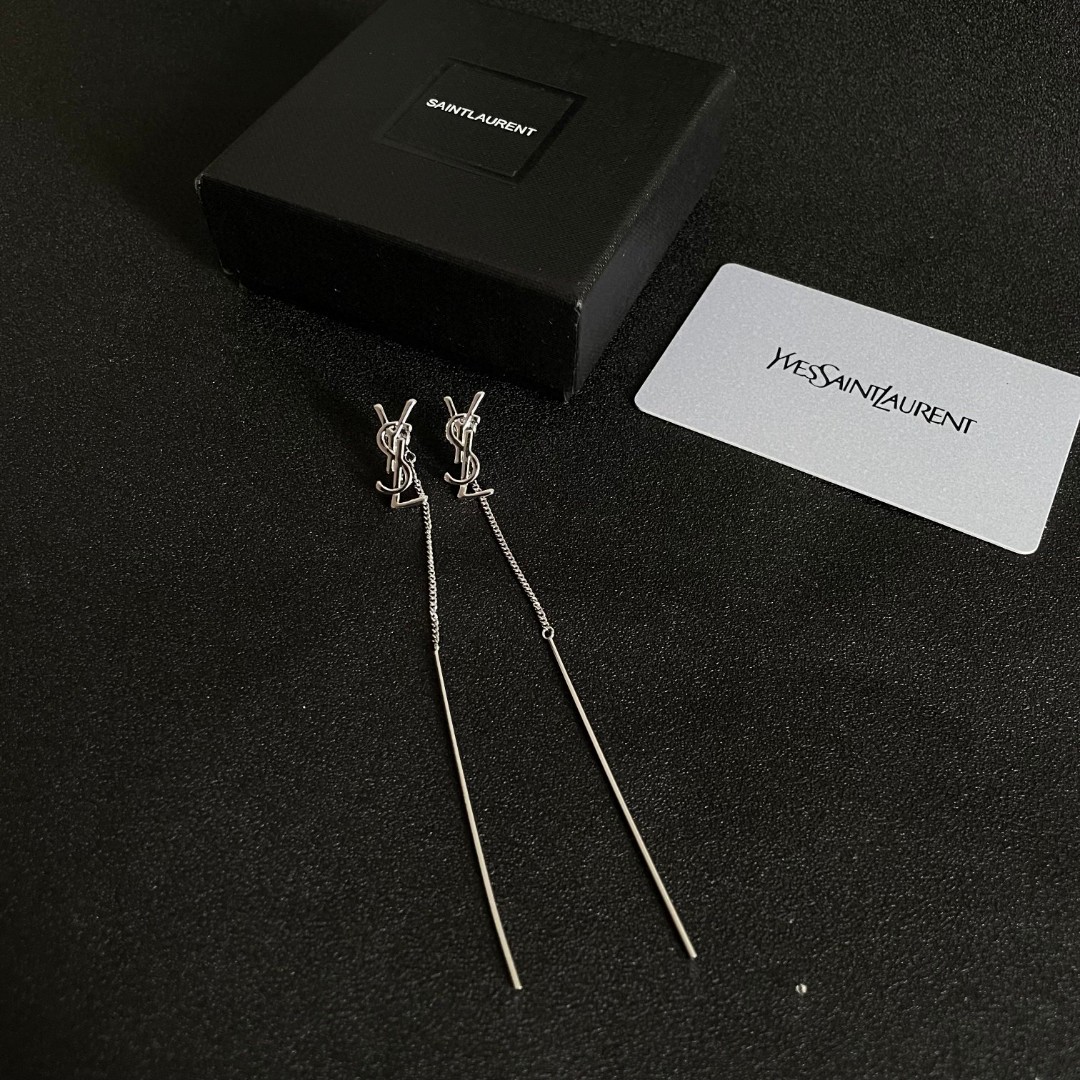 YSL Crystal Diamond Letter Pearl Stud Earrings