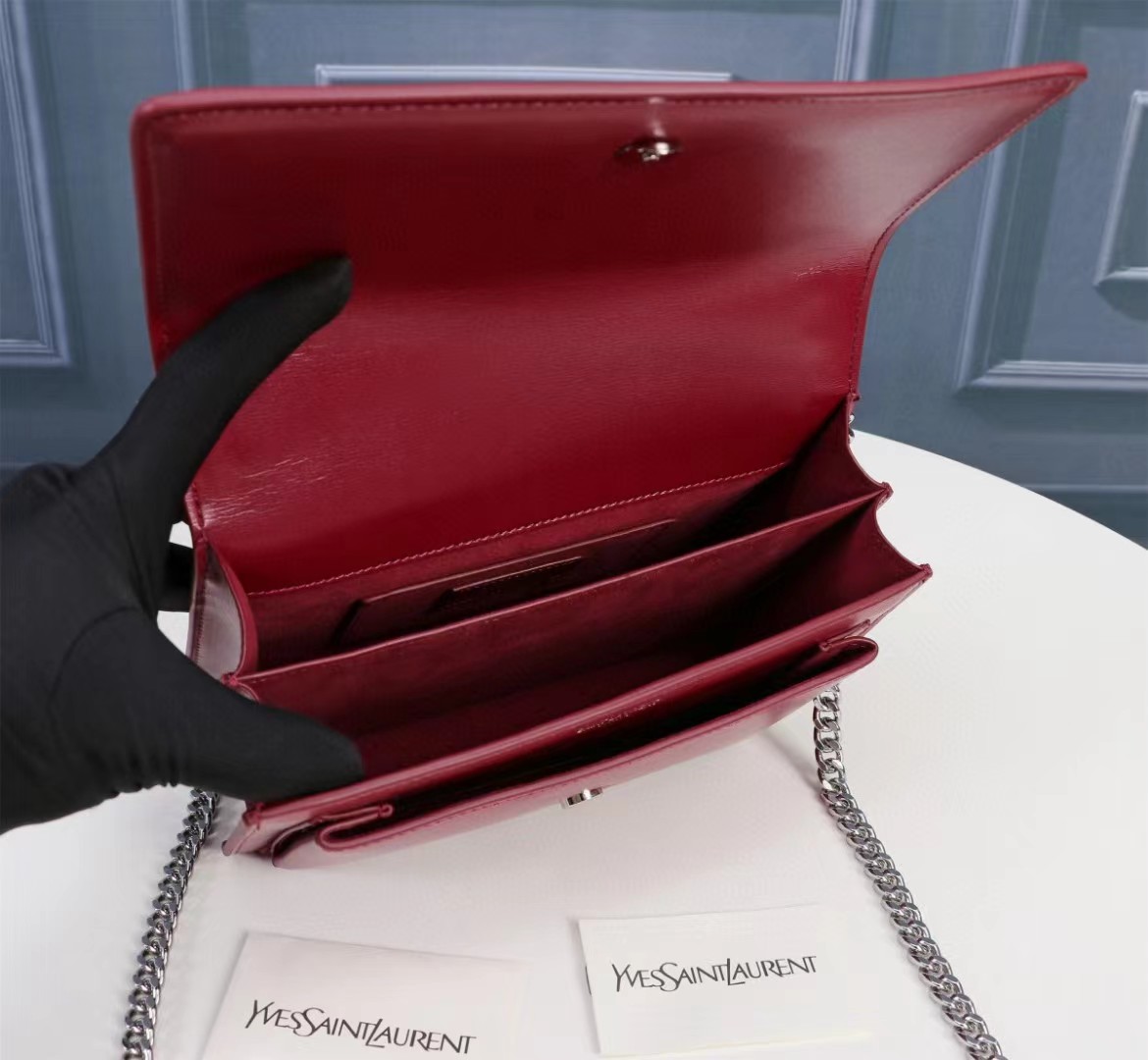 Top Quality YSL Saint Laurent Calfskin Y Quilted Monogram Small Loulou Chain Satchel Red