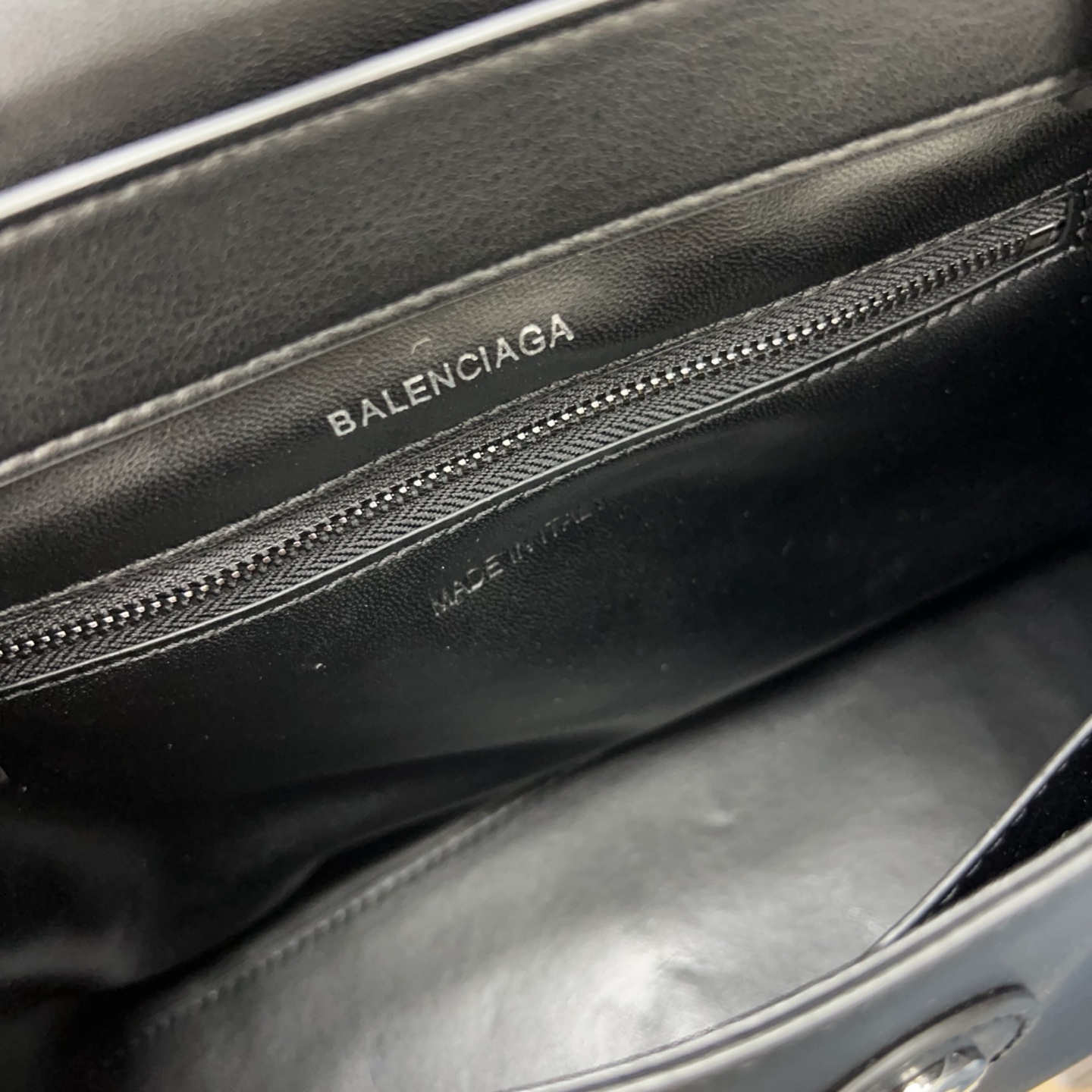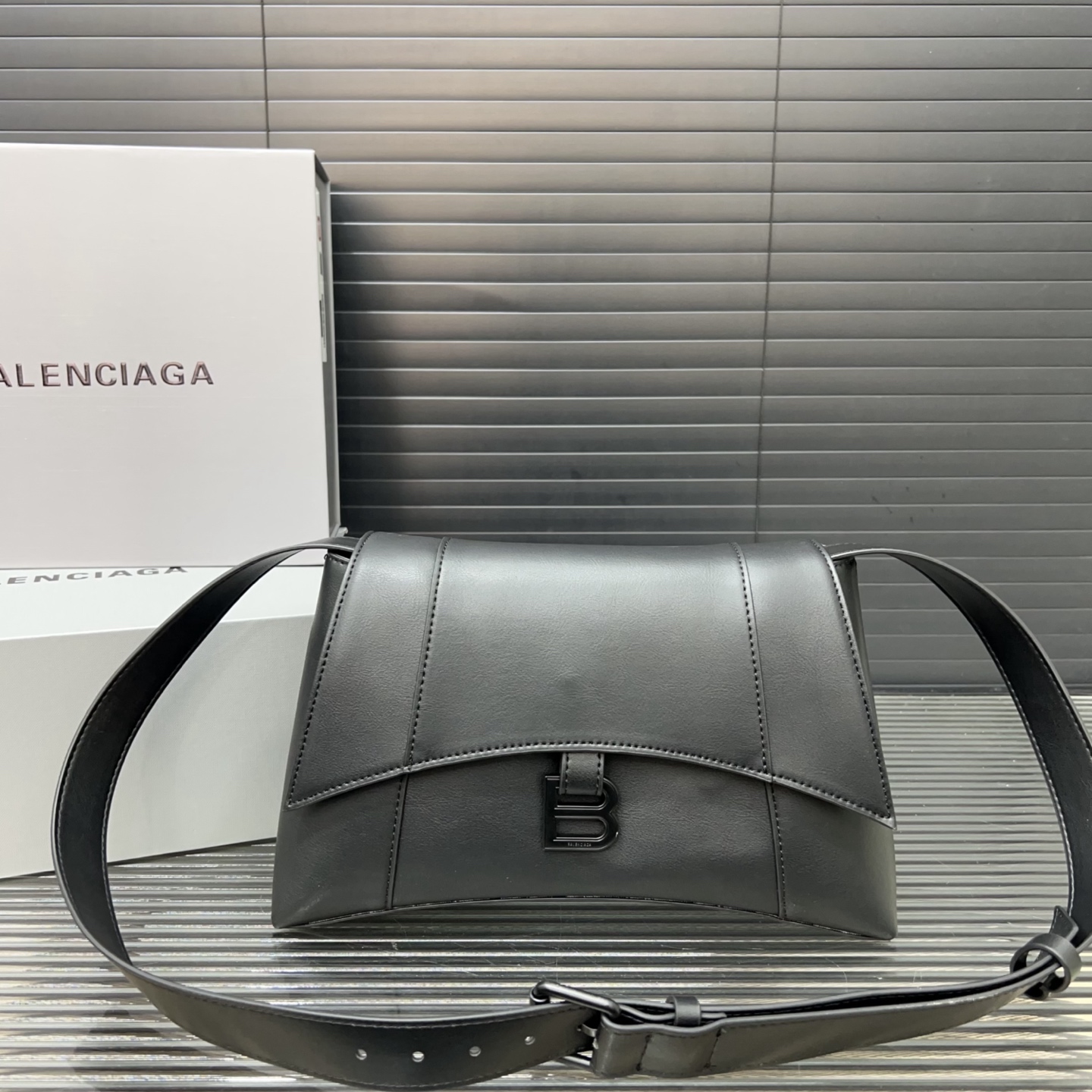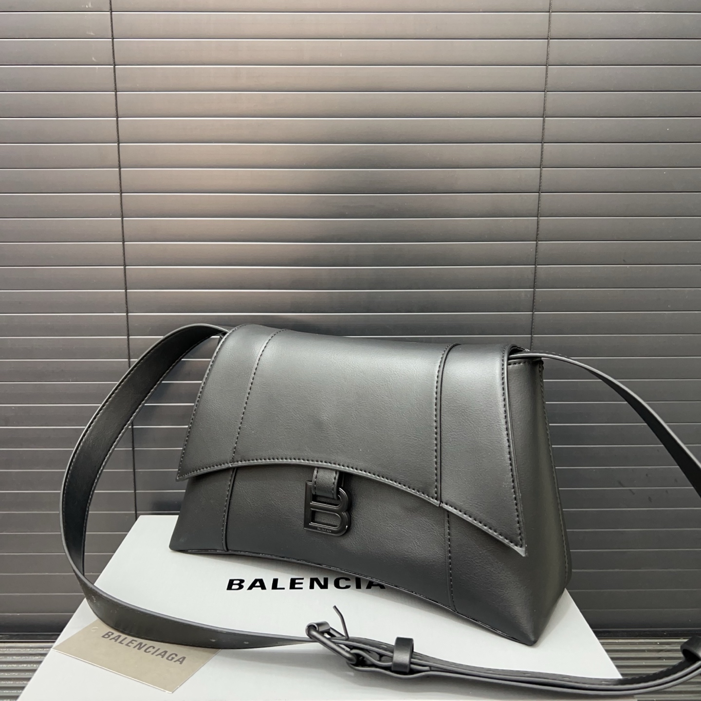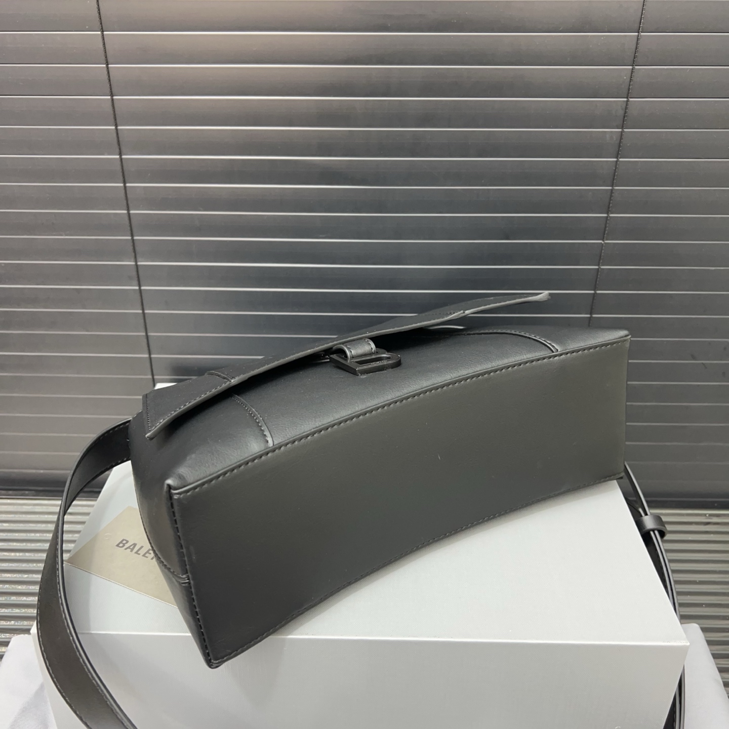Balenciaga Downtown matte flap closure AllBlack buckle HOURGLASS hourglass bag, shoulder and crossbody bag, same style for men and women, real product photo.