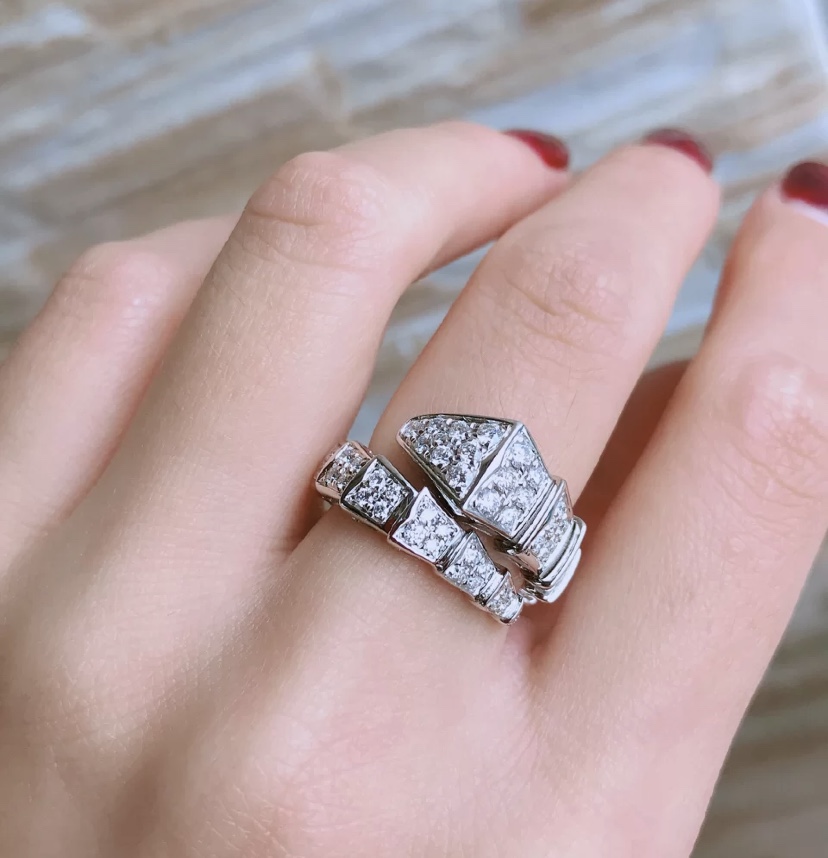Bulgari Wide Single-Hand Full Diamond Snake Ring