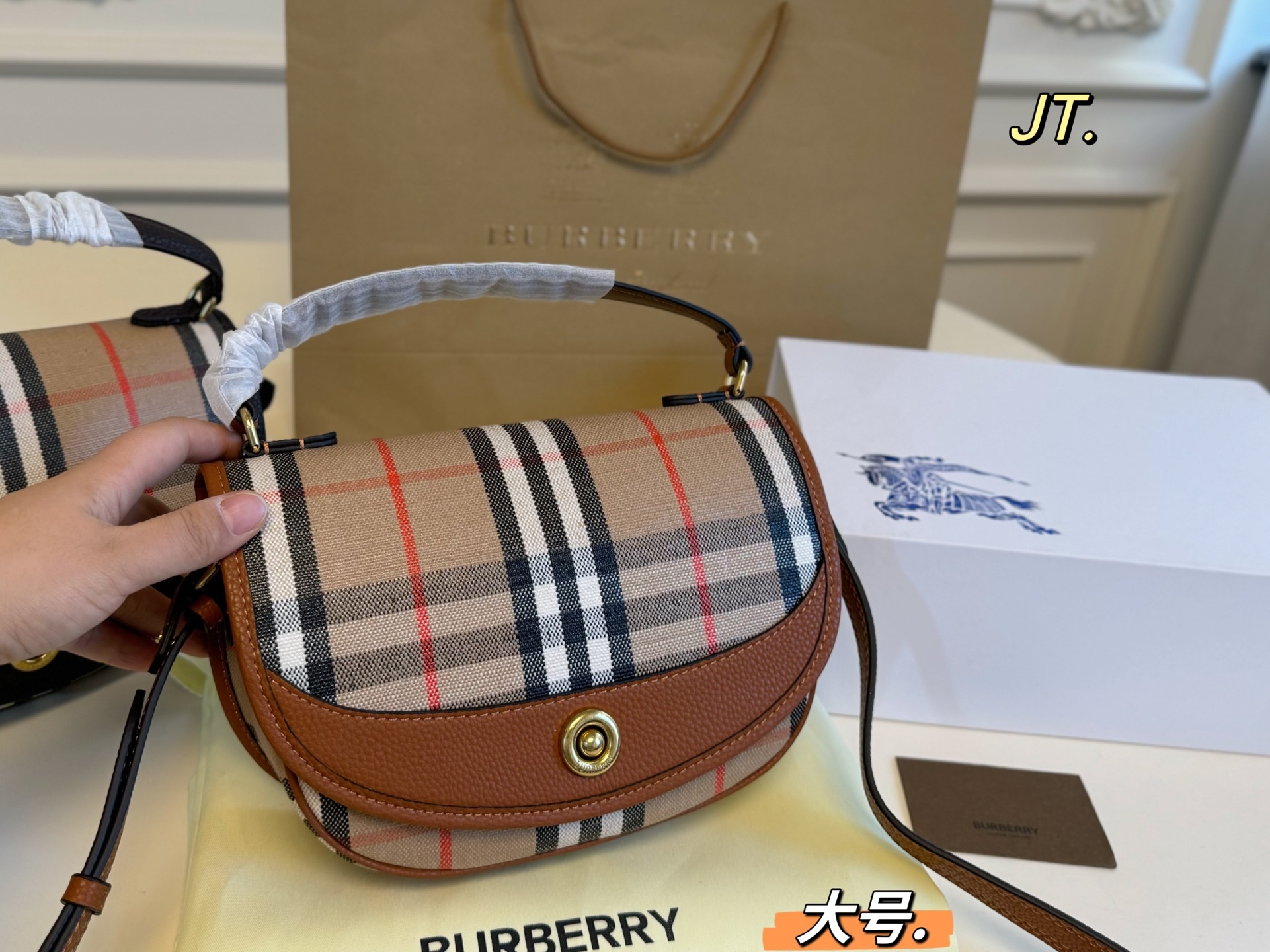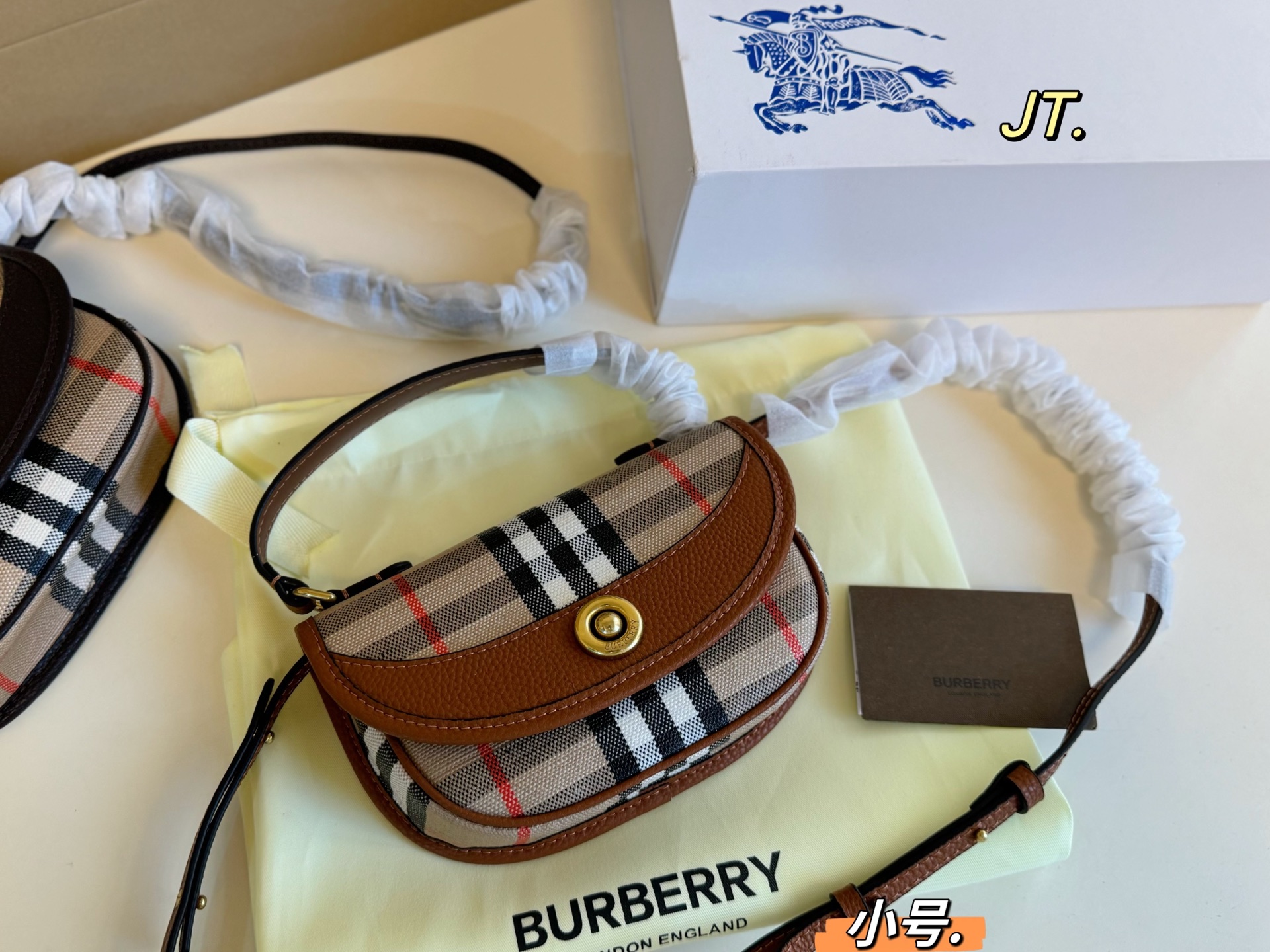 DetailBurberry's new Saddle Bag 💕 Classic check pattern paired with trench coat elements,features a long shoulder strap, can be worn crossbody or carried by handStylish and versatile, it looks absolutely stunning on!A collision of modern and classic, it's simply gorgeous!