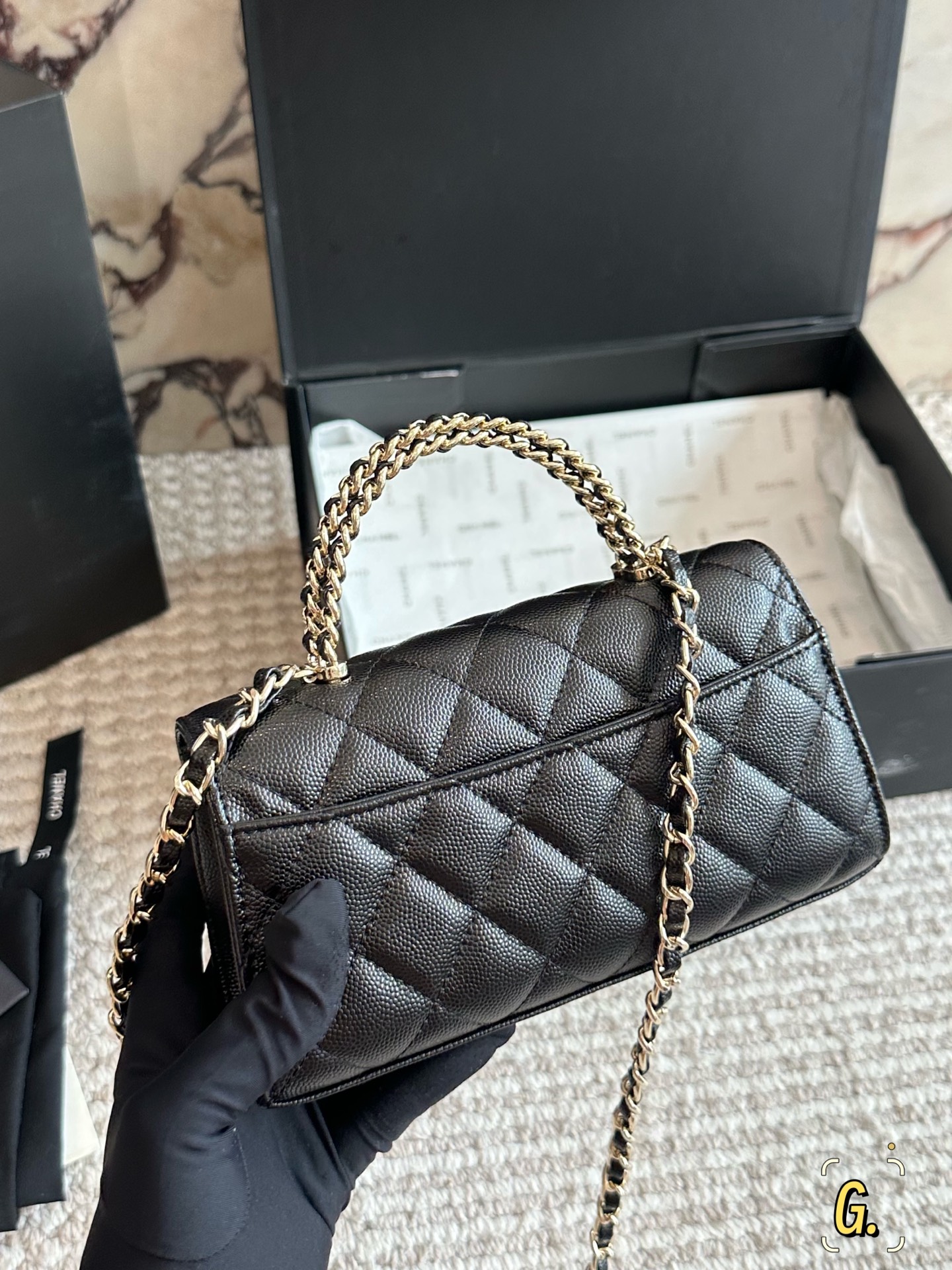 This bag is absolutely stunning! It can hold your phone, can be carried by hand, or worn crossbody. And the caviar leather is just perfect!