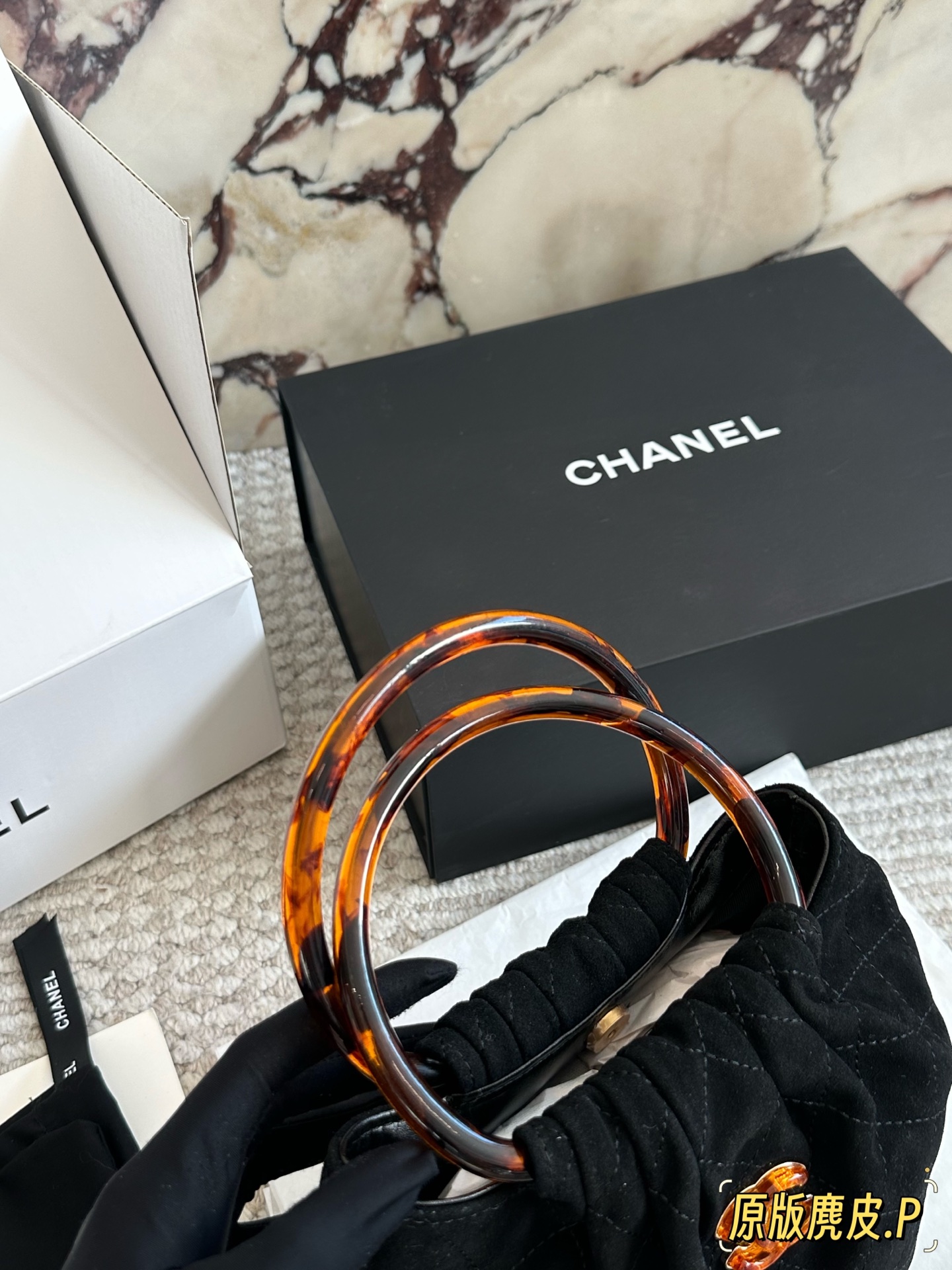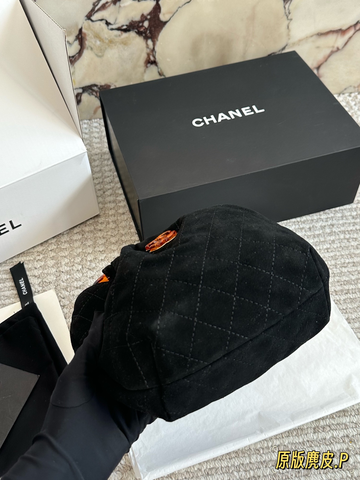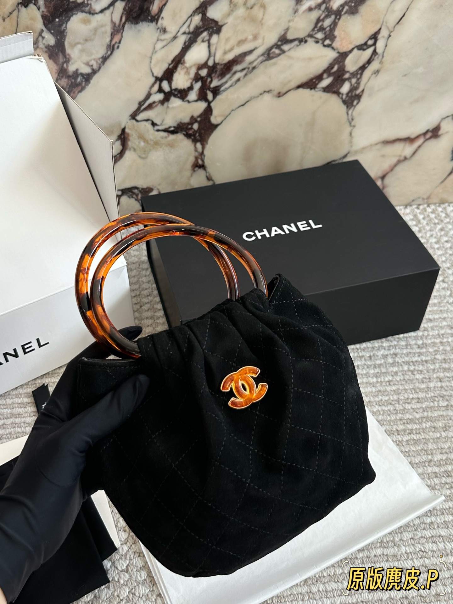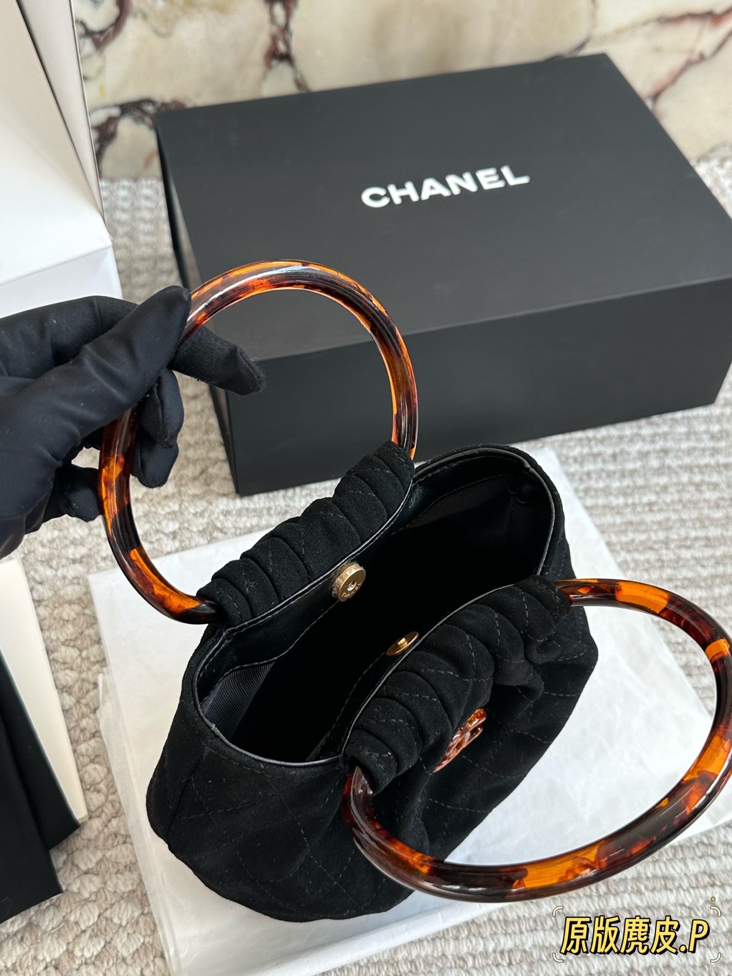 DetailChanel 26C suede tote bag. The vintage tortoiseshell handle has a subtle sheen. It's so elegant to carry by hand! The double-C tortoiseshell logo in the center adds a touch of dynamism. The capacity is also quite generous; it can easily fit a phone and everyday essentials. The suede material feels wonderful to the touch! Perfect for autumn and winter.