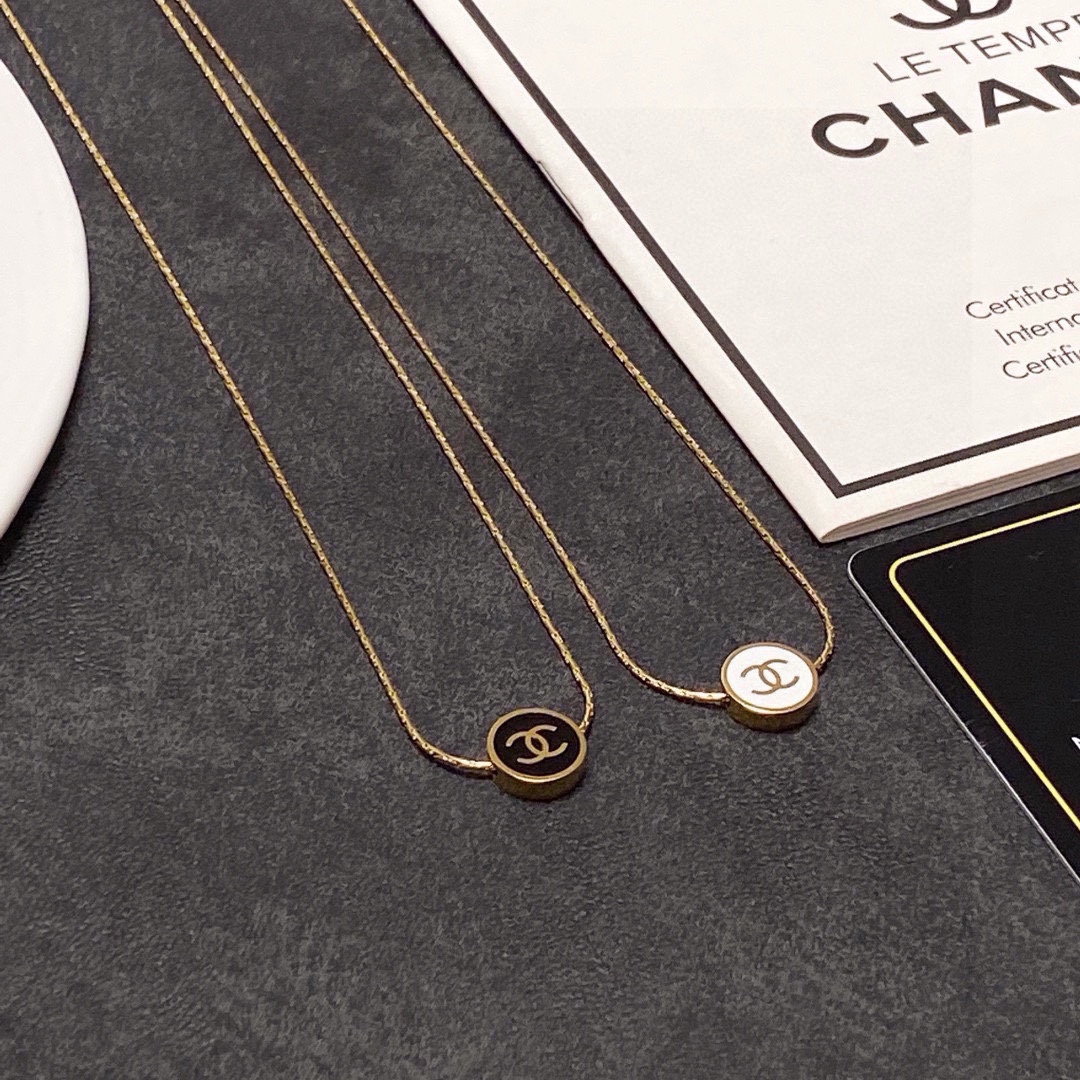 Home / Chanel Black and White Double-Sided Thin Necklace
