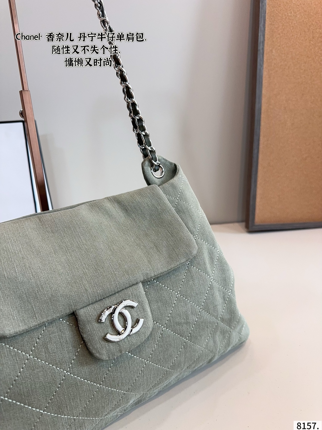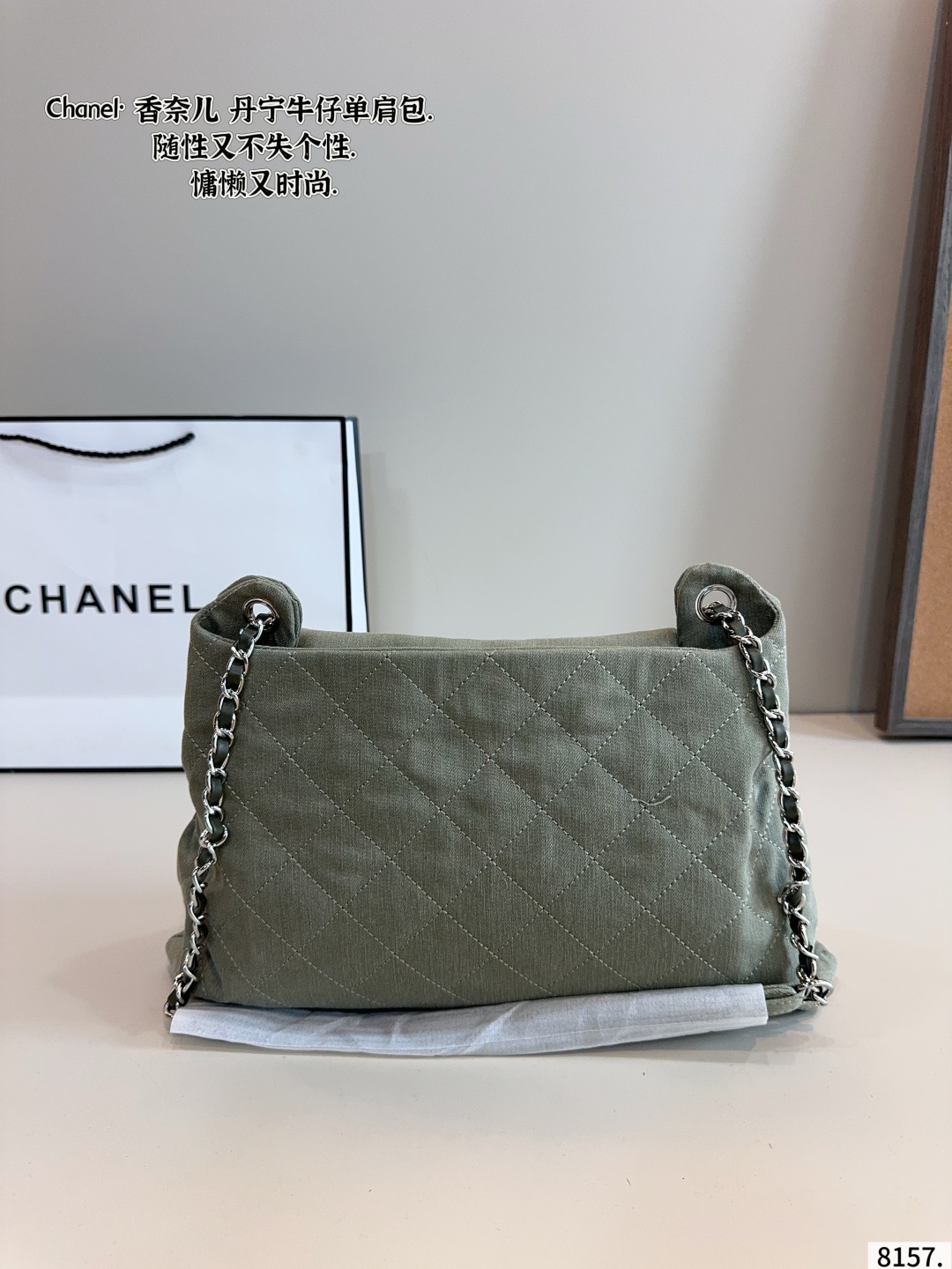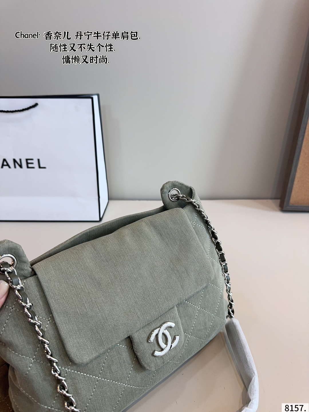 DetailChanel denim shoulder bag,very high-end texture,super large capacity and very durable,you will definitely get a lot of attention when you carry it on the street,it just gives you this casual and lazy feeling.