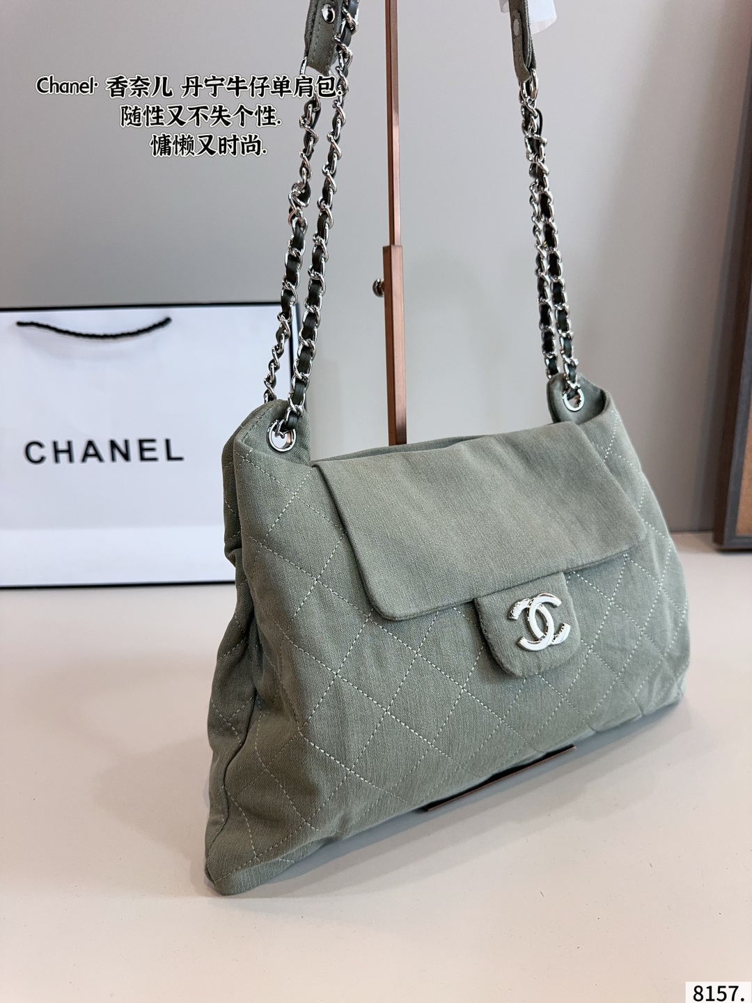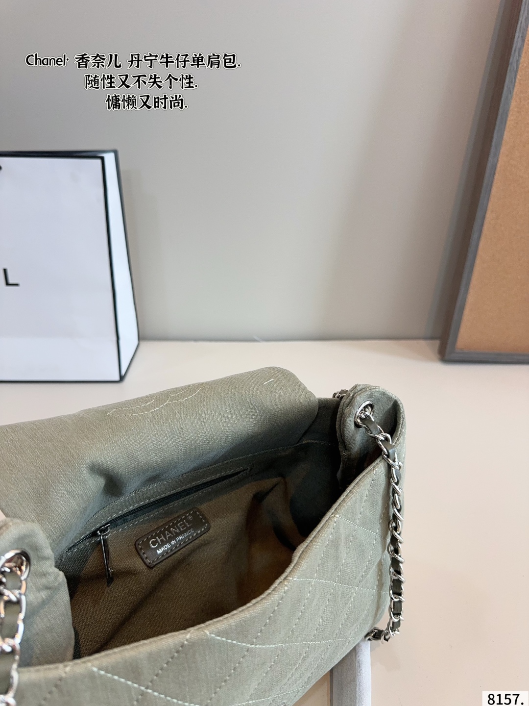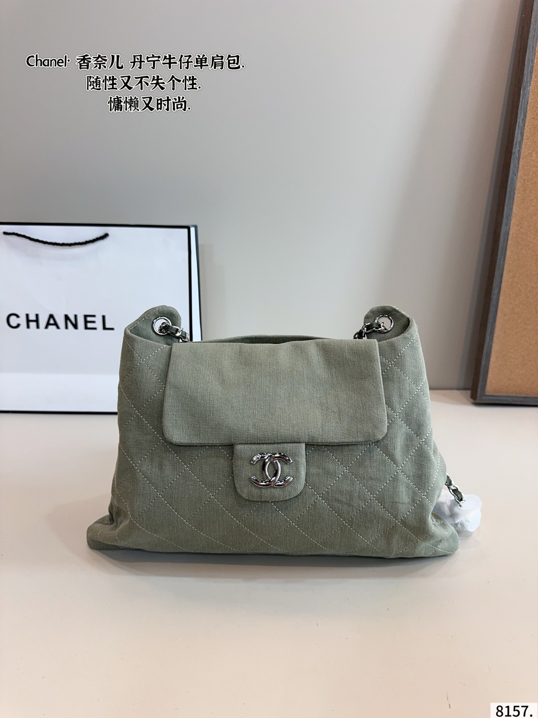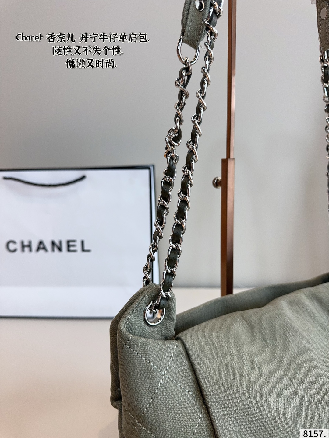 DetailChanel denim shoulder bag,very high-end texture,super large capacity and very durable,you will definitely get a lot of attention when you carry it on the street,it just gives you this casual and lazy feeling.