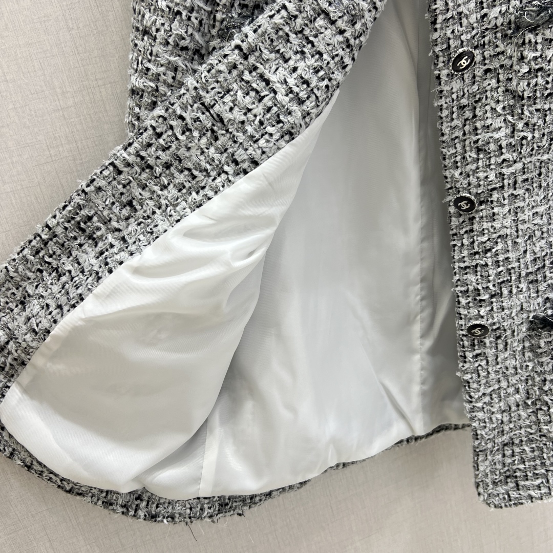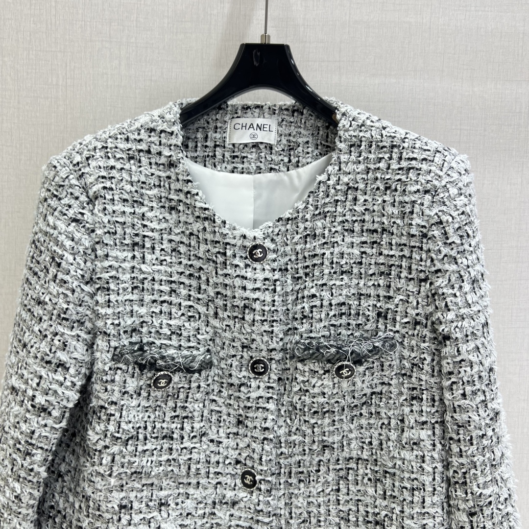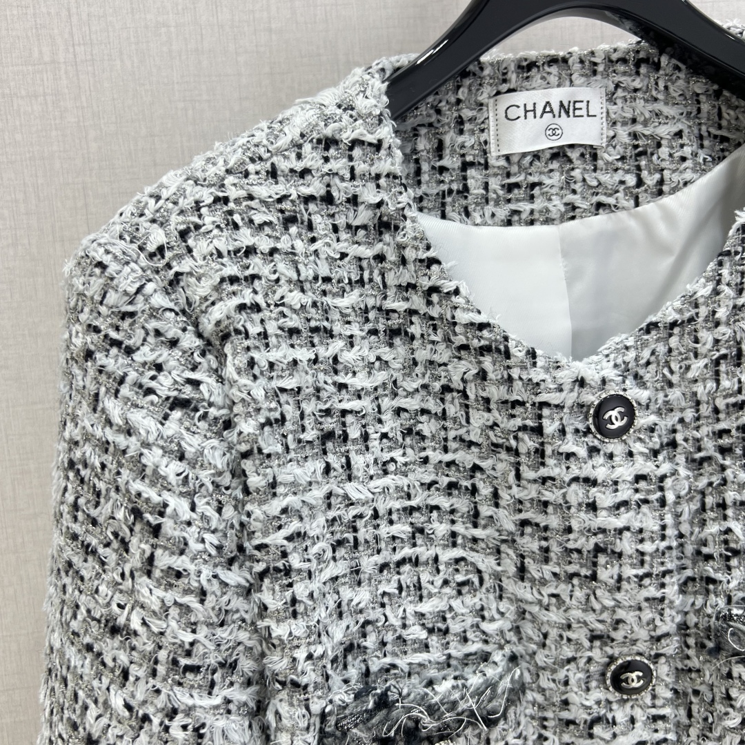 DetailChanel's new early fall collection features a round-neck, woven long-sleeved jacket. This classic jacket is instantly recognizable, featuring a flattering neckline and a custom-designed button-down design. The color is incredibly flattering and flattering.