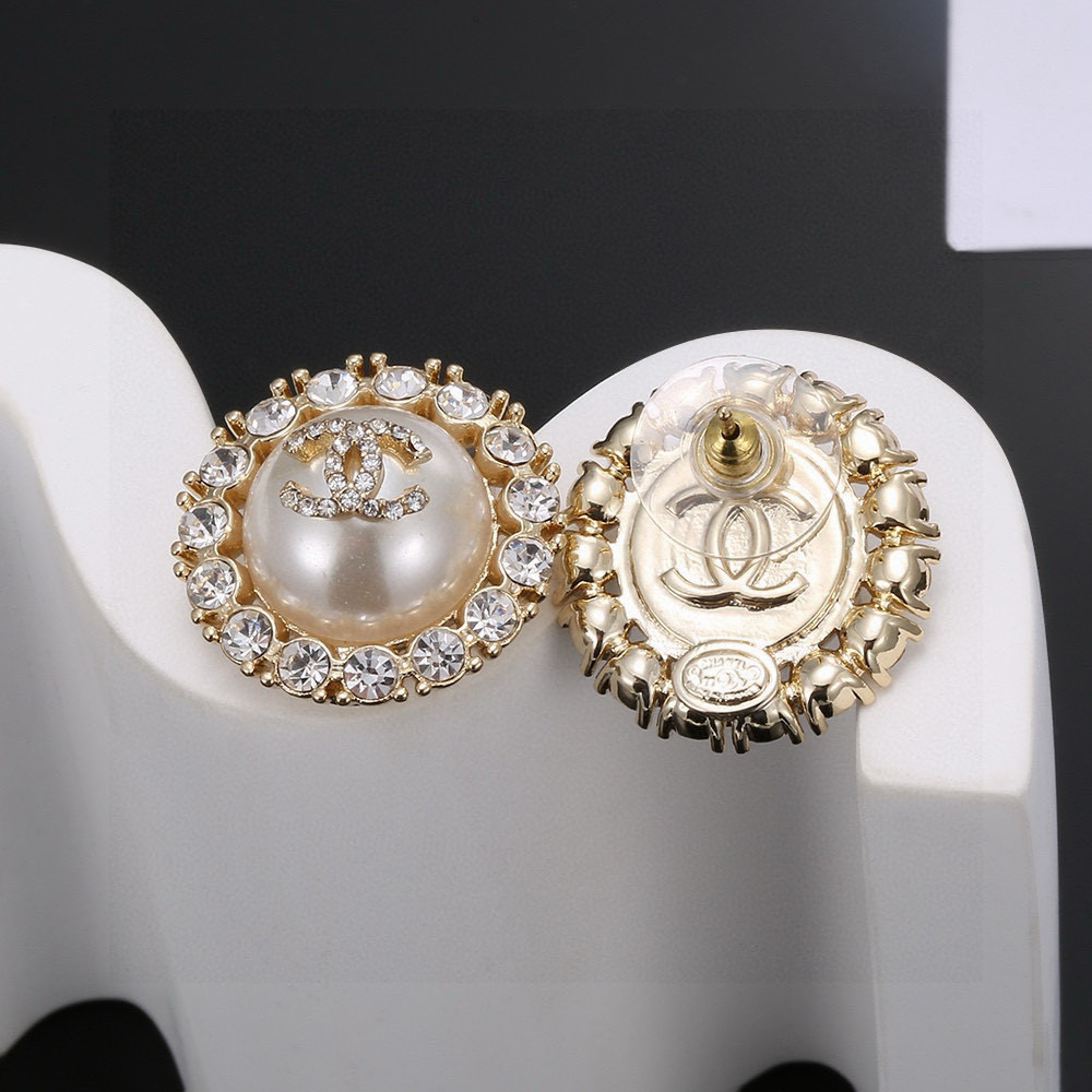 Chanel Pearl and Rhinestone Double C Stud Earrings